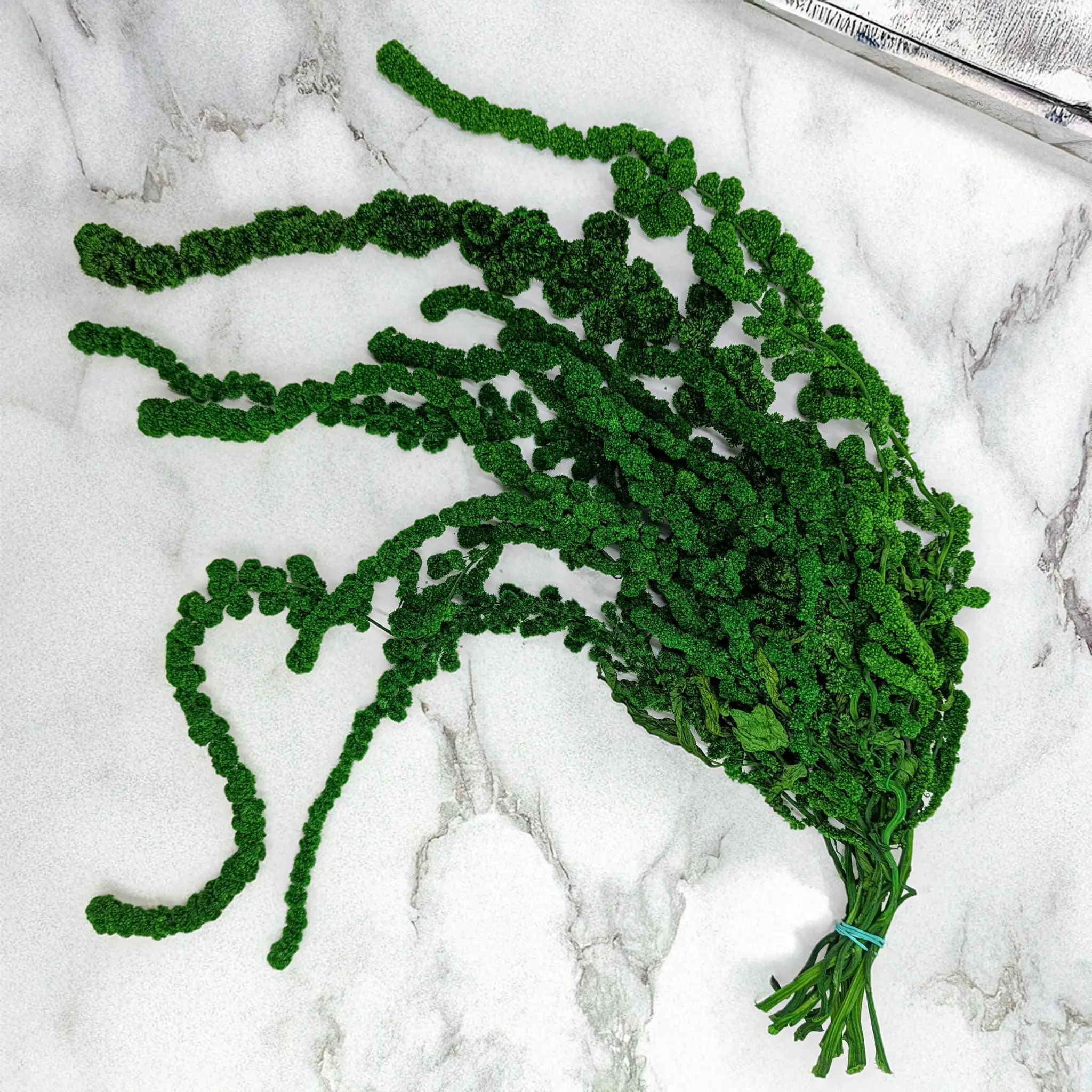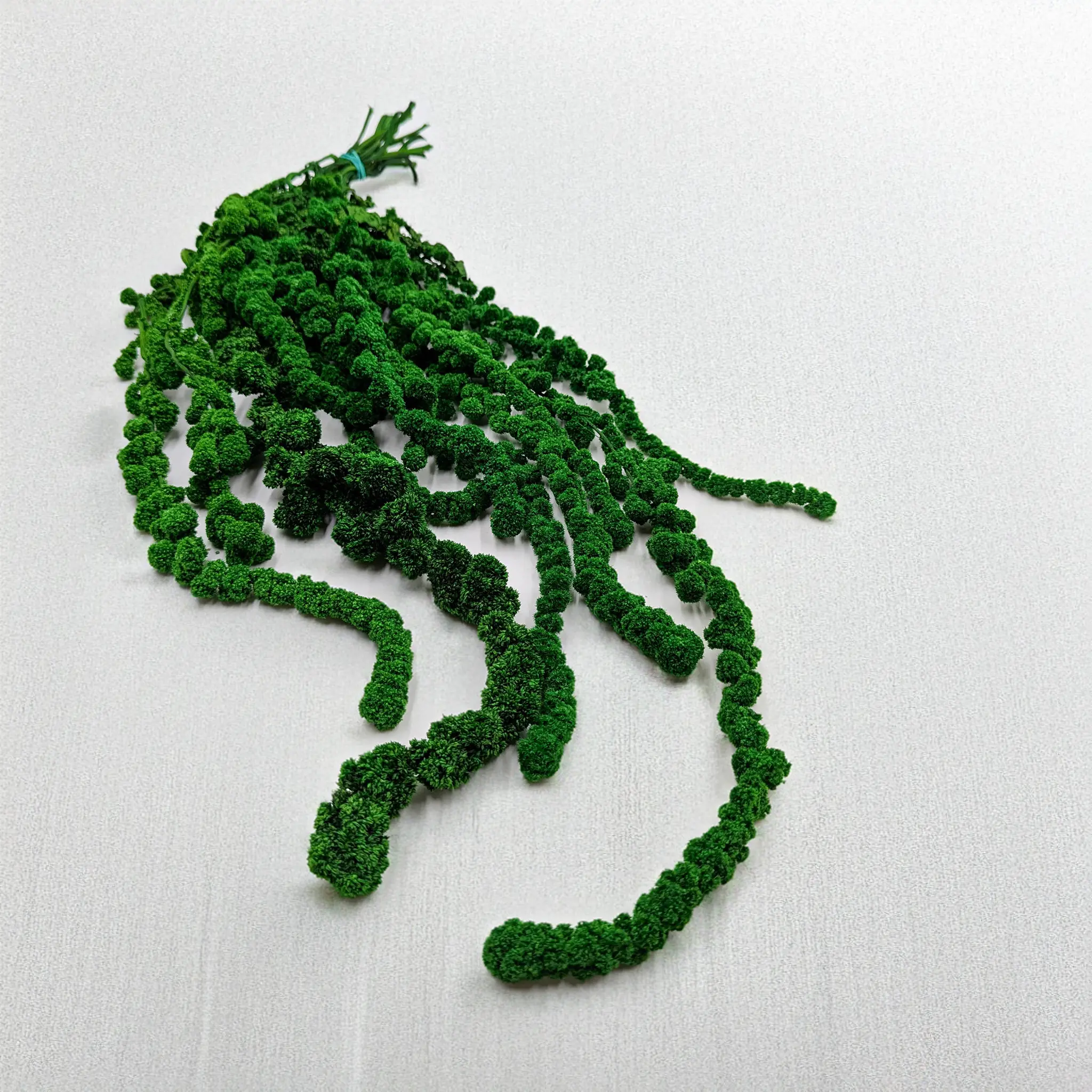 Stabilizowany amarantus kulisty w głębokim, naturalnym odcieniu zieleni to nietuzinkowa propozycja do eleganckich i nowoczesnych aranżacji. Dzięki procesowi stabilizacji roślina zachowuje swój pierwotny wygląd przez wiele miesięcy – bez konieczności pielęgnacji, podlewania czy przycinania.