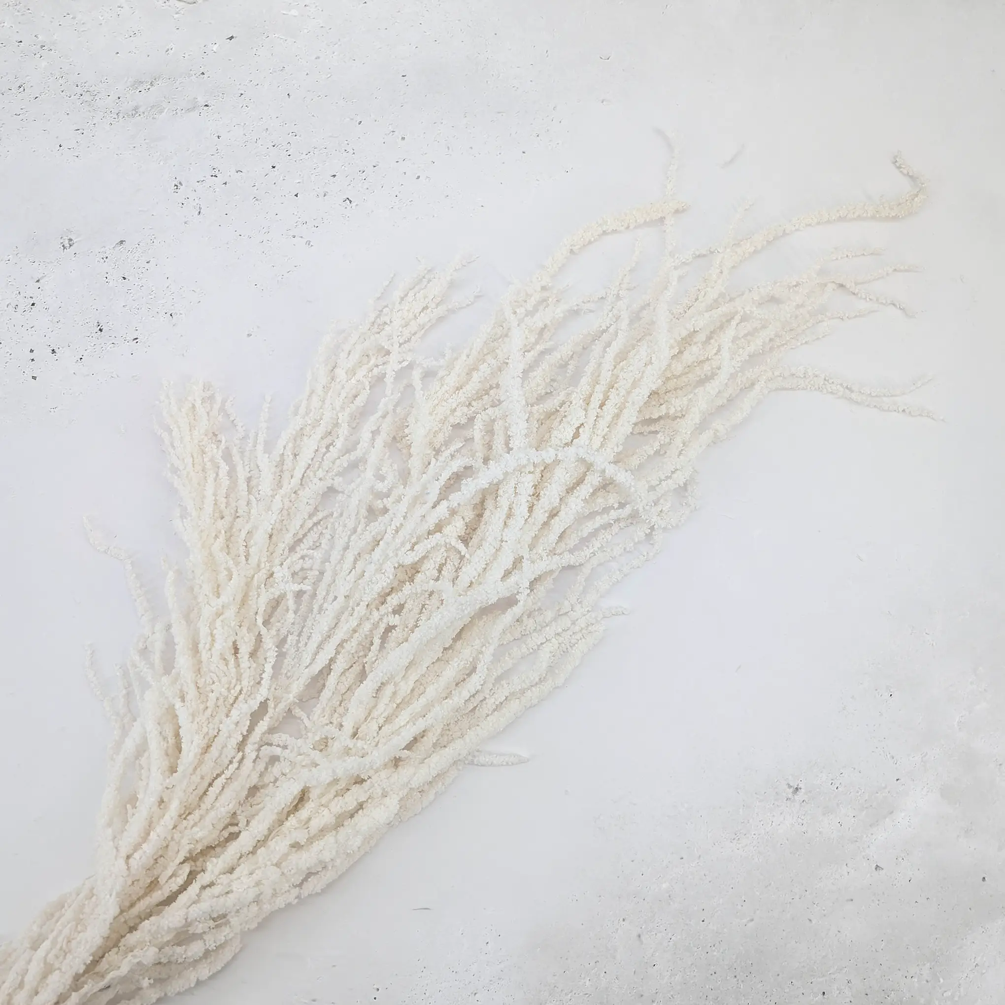 Ze względu na długość kwiatostanu produkt jest bardziej suchy, dlatego gałązki mogą być nieco mniej miękkie w dotyku niż w przypadku krótszych odmian. Jest to naturalna cecha długiego amarantusa stabilizowanego.