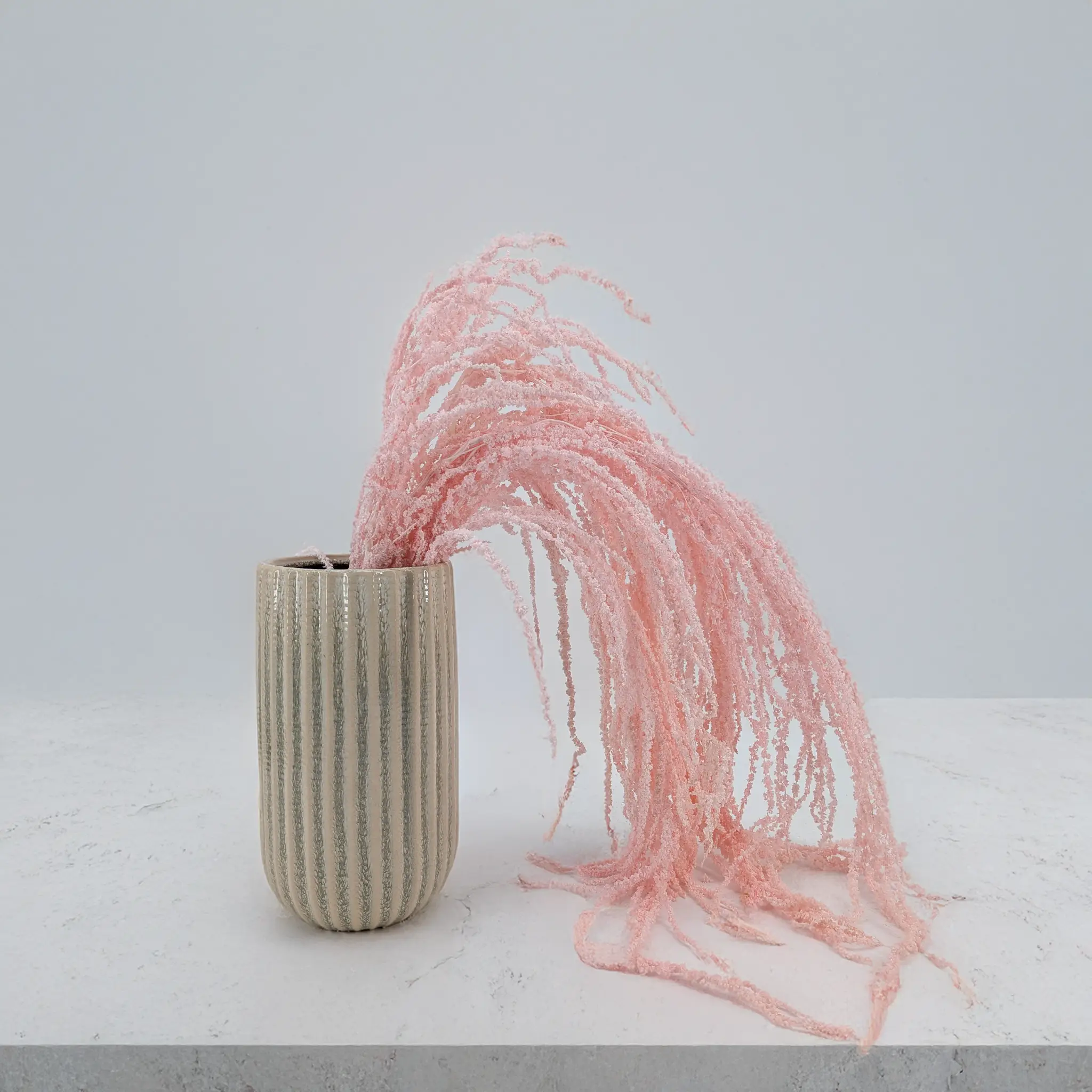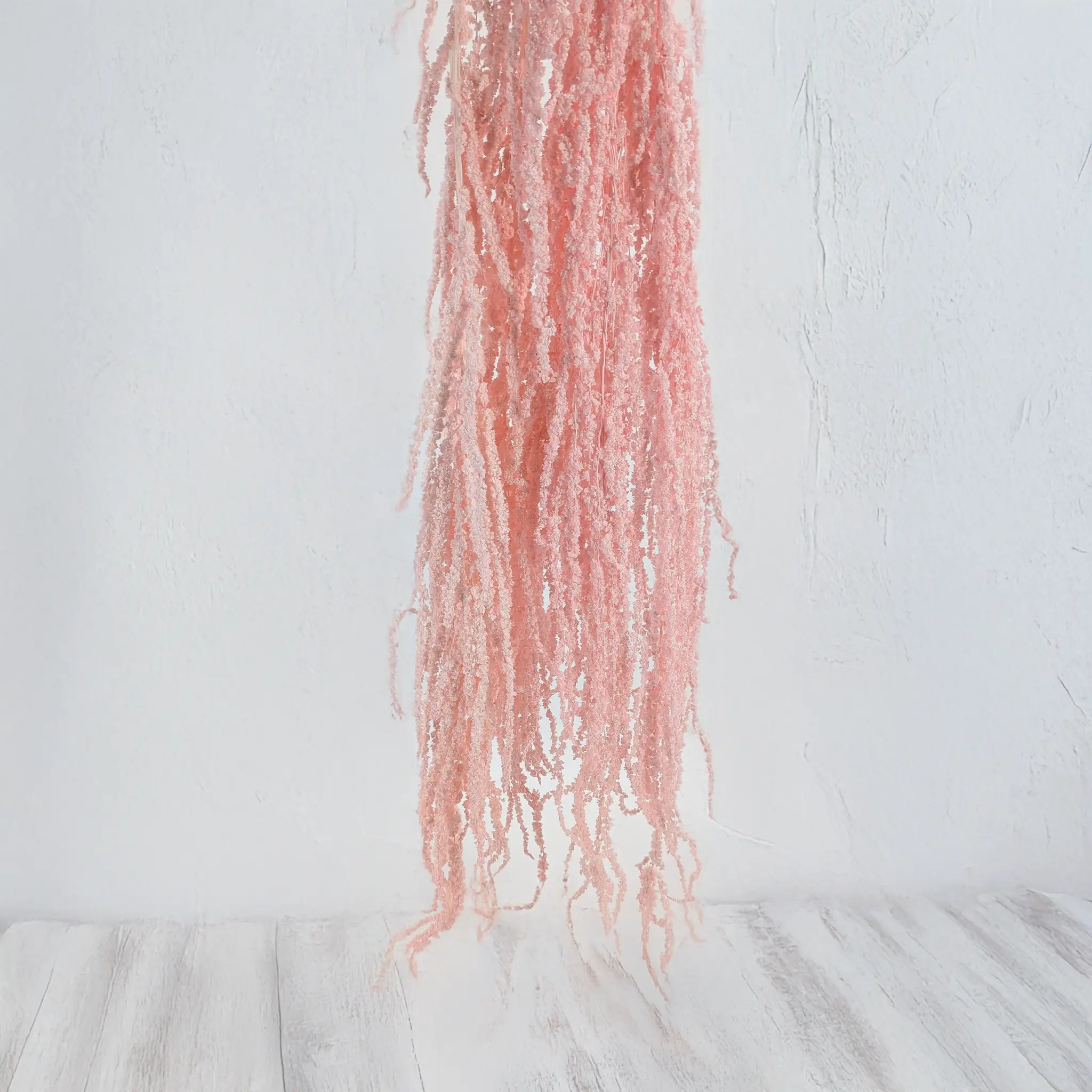 Amarantus stabilizowany Royal – Szarłat łososiowy różowy to wyjątkowo dekoracyjna roślina o długich, kaskadowo zwisających kwiatostanach. Delikatny odcień łososiowego różu łączy w sobie ciepło pastelowego różu i naturalną elegancję subtelnych tonów koralowych, dzięki czemu roślina doskonale pasuje do nowoczesnych oraz romantycznych aranżacji florystycznych.