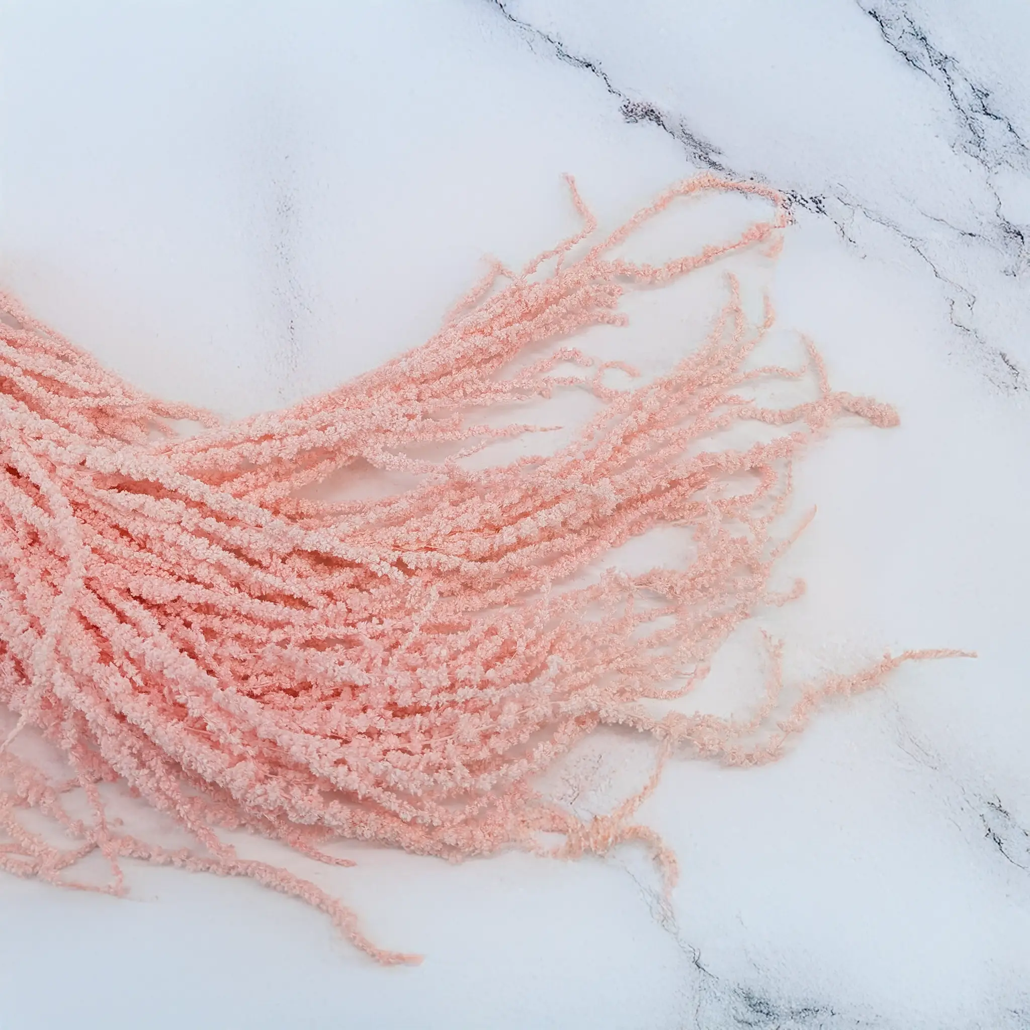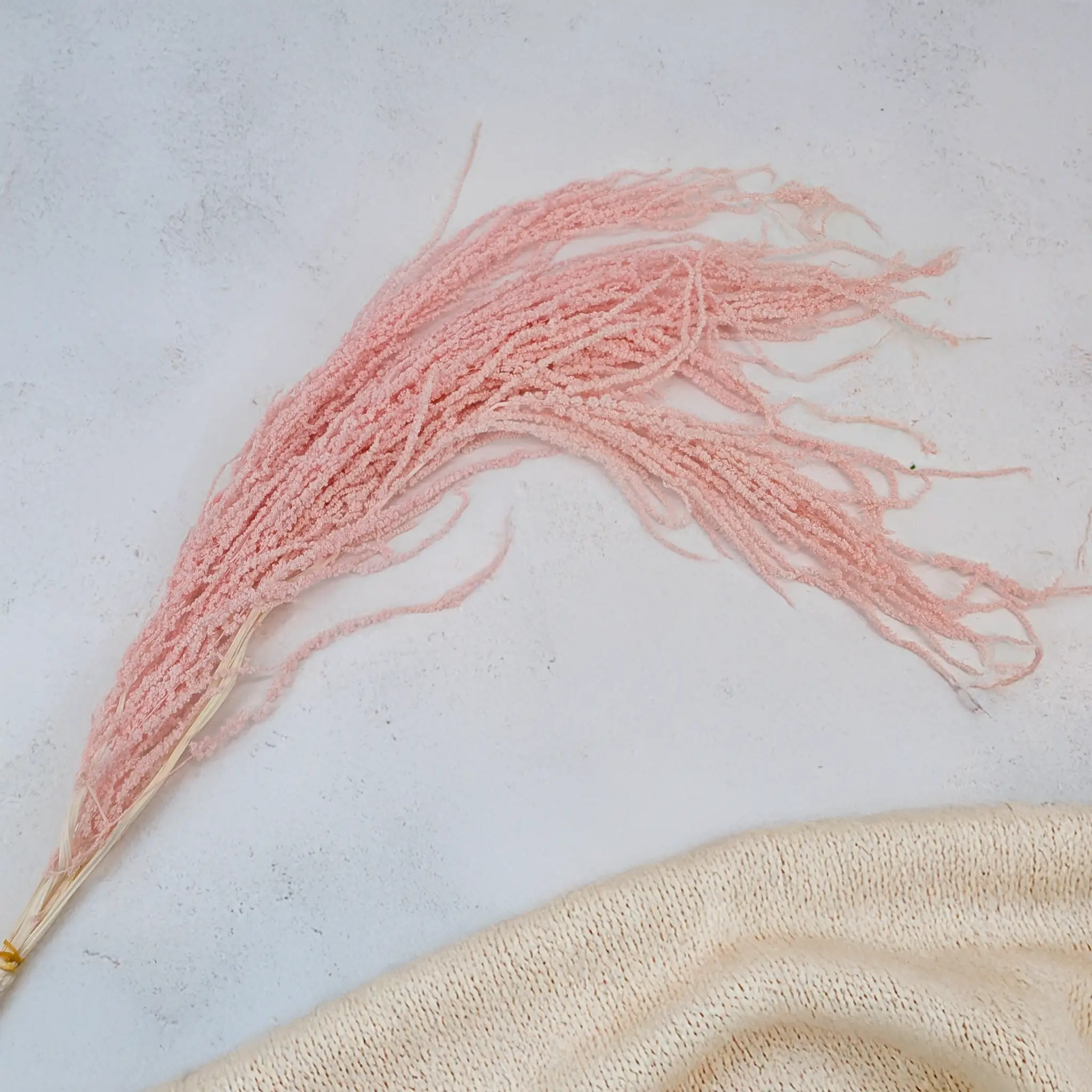 Ze względu na długość kwiatostanu produkt jest bardziej suchy, dlatego gałązki mogą być nieco mniej miękkie w dotyku niż w przypadku krótszych odmian. Jest to naturalna cecha długiego amarantusa stabilizowanego.