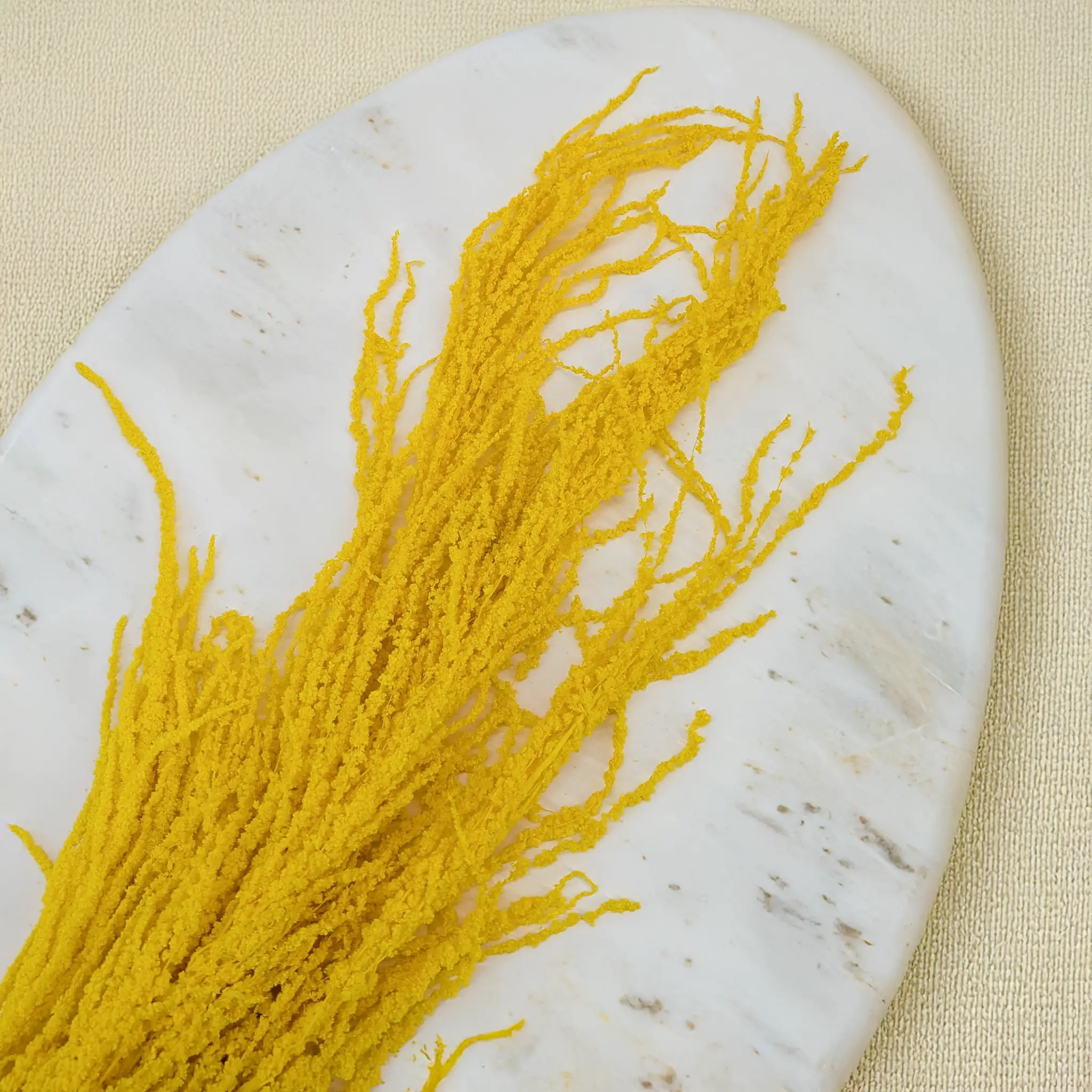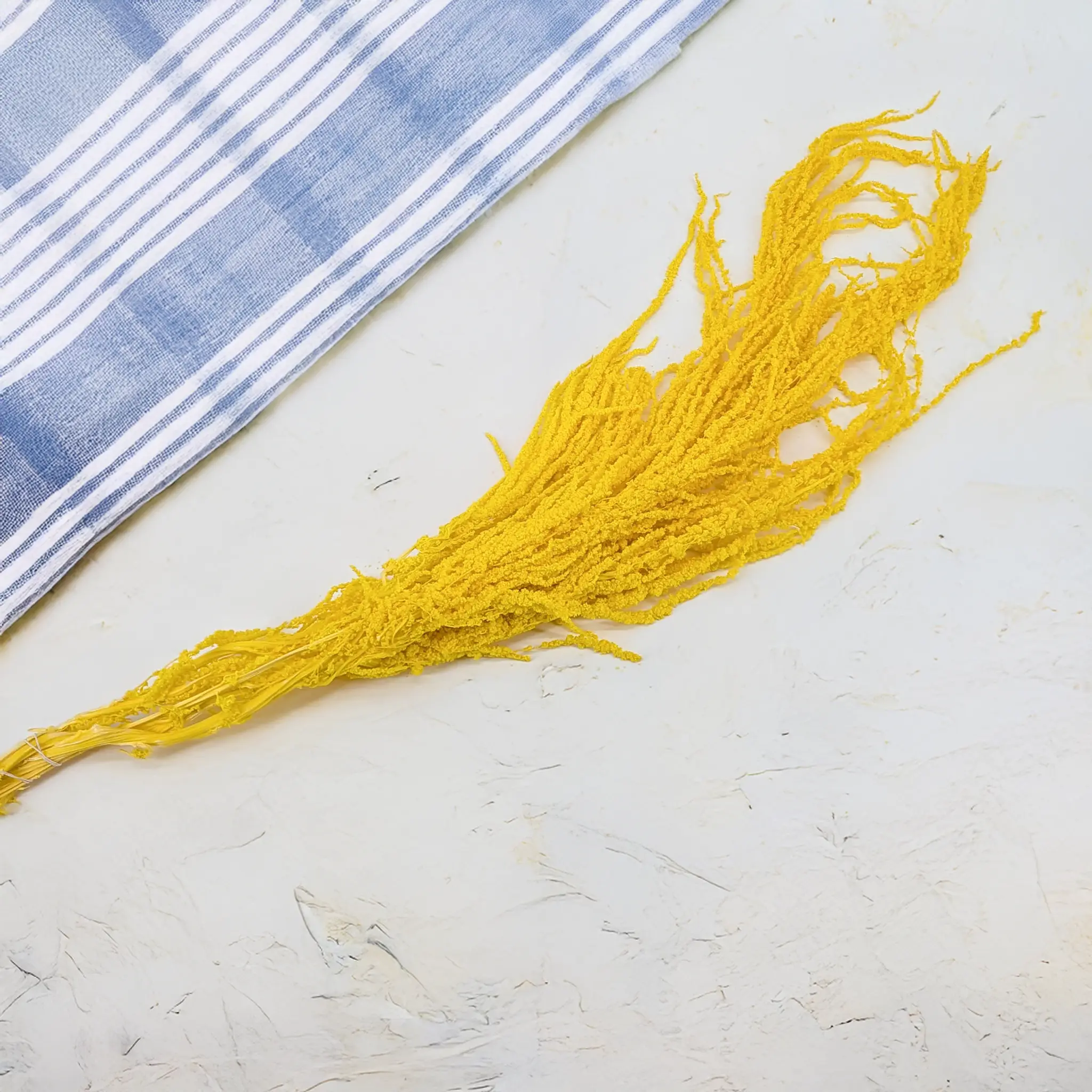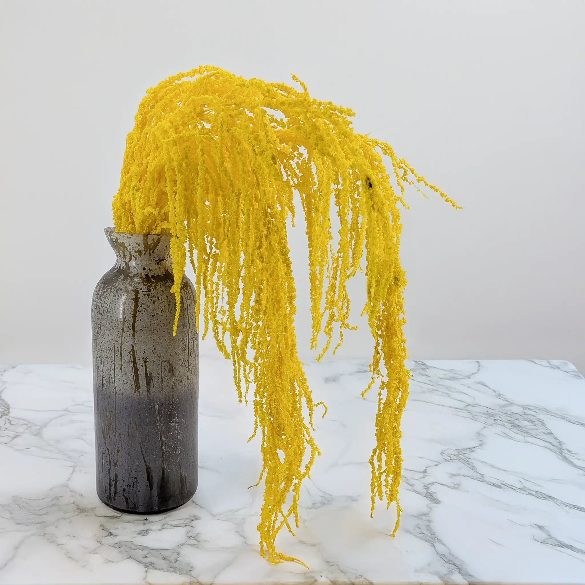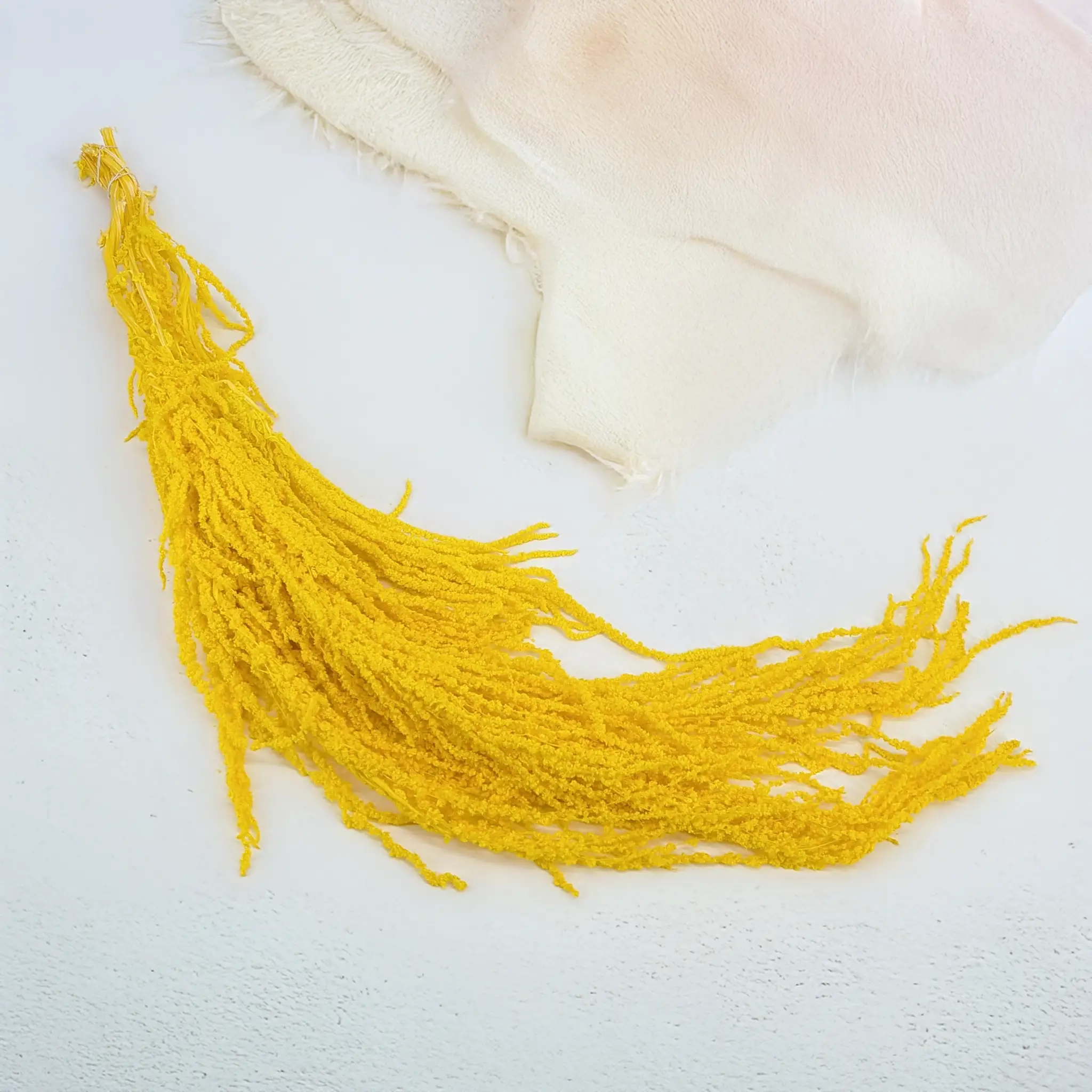Amarantus stabilizowany Royal – Szarłat żółty to wyjątkowo dekoracyjna roślina o długich, kaskadowo zwisających kwiatostanach. Intensywny, słoneczny odcień żółci wprowadza do kompozycji świeżość, energię oraz radosny charakter, dzięki czemu roślina doskonale sprawdza się zarówno w nowoczesnych aranżacjach wnętrz, jak i w dekoracjach florystycznych.