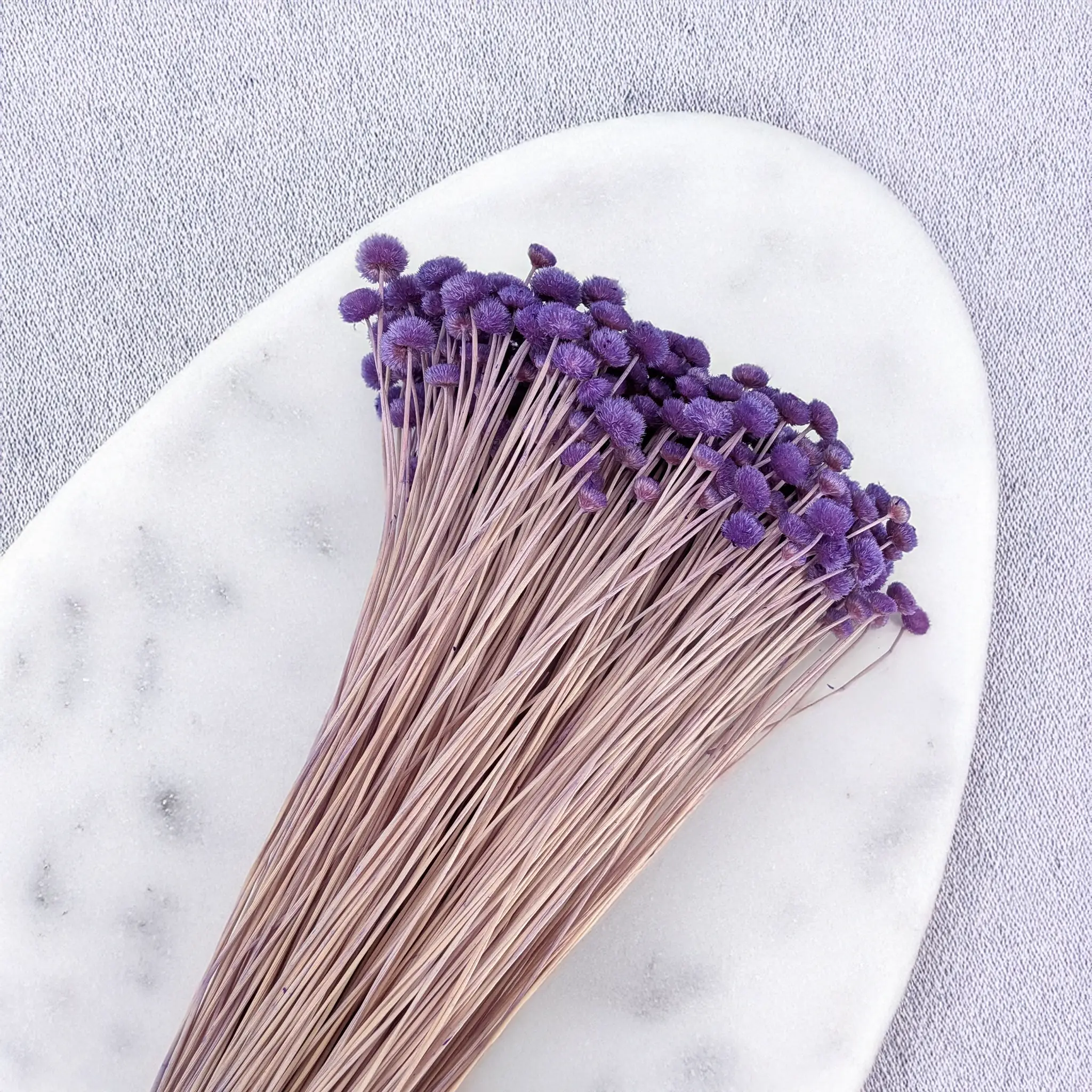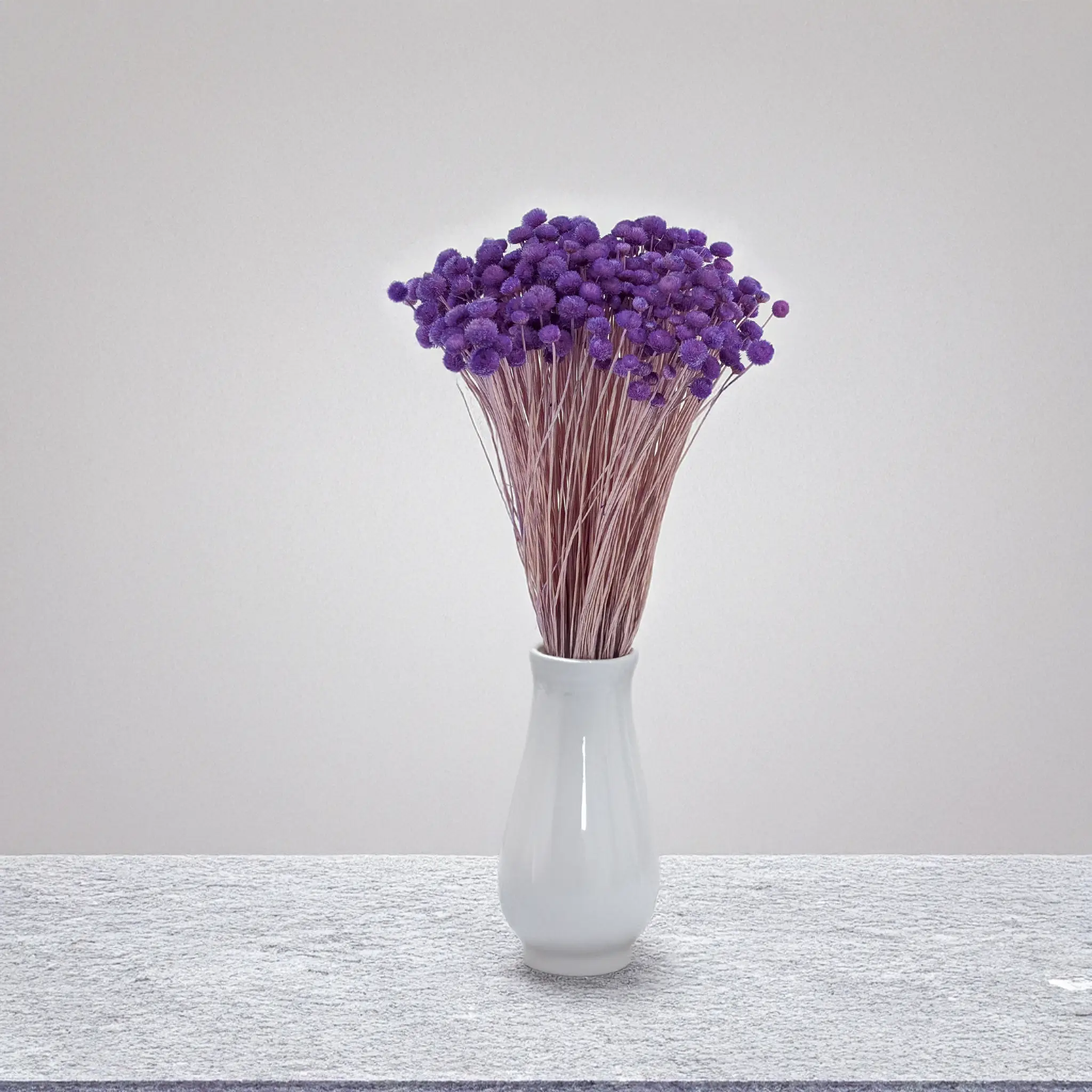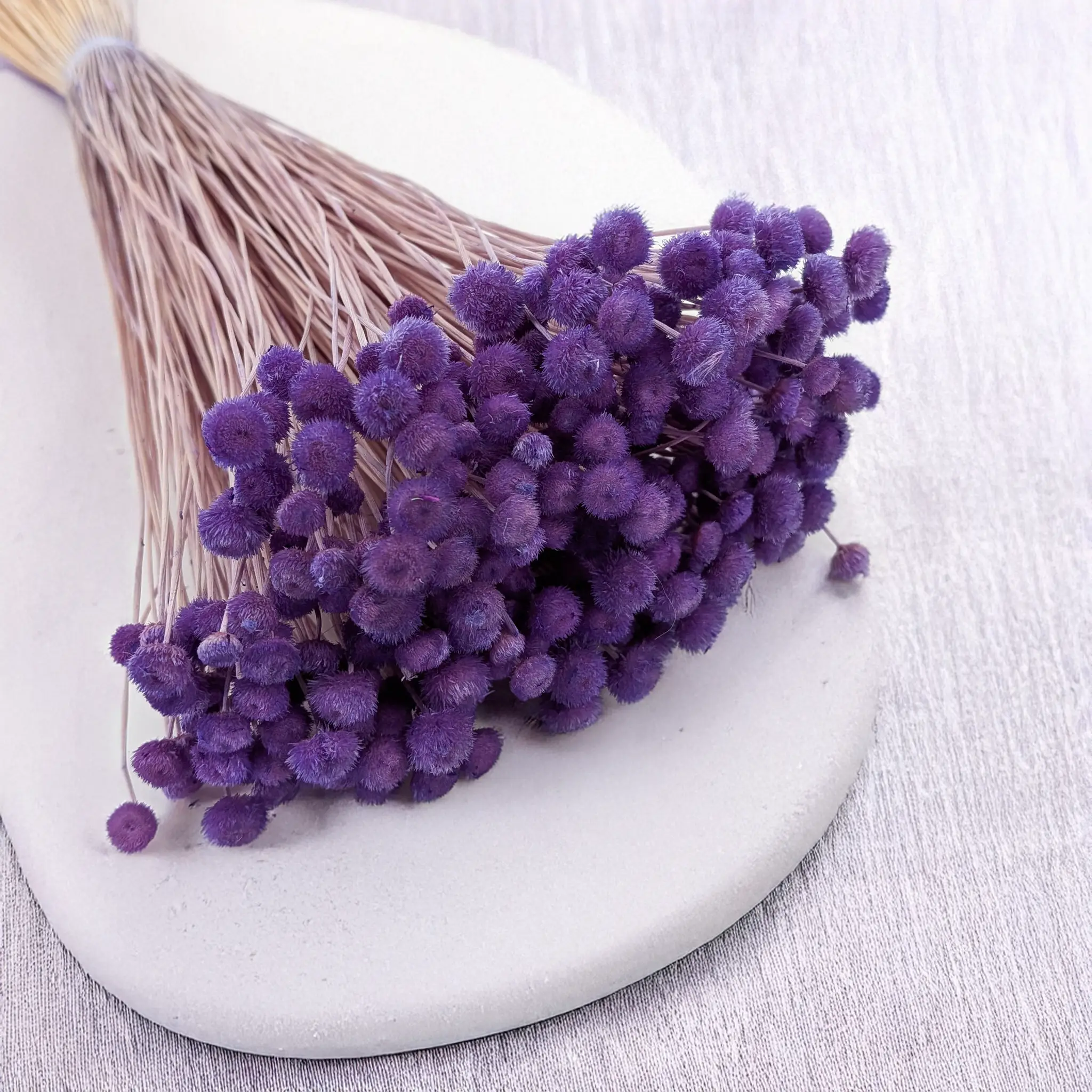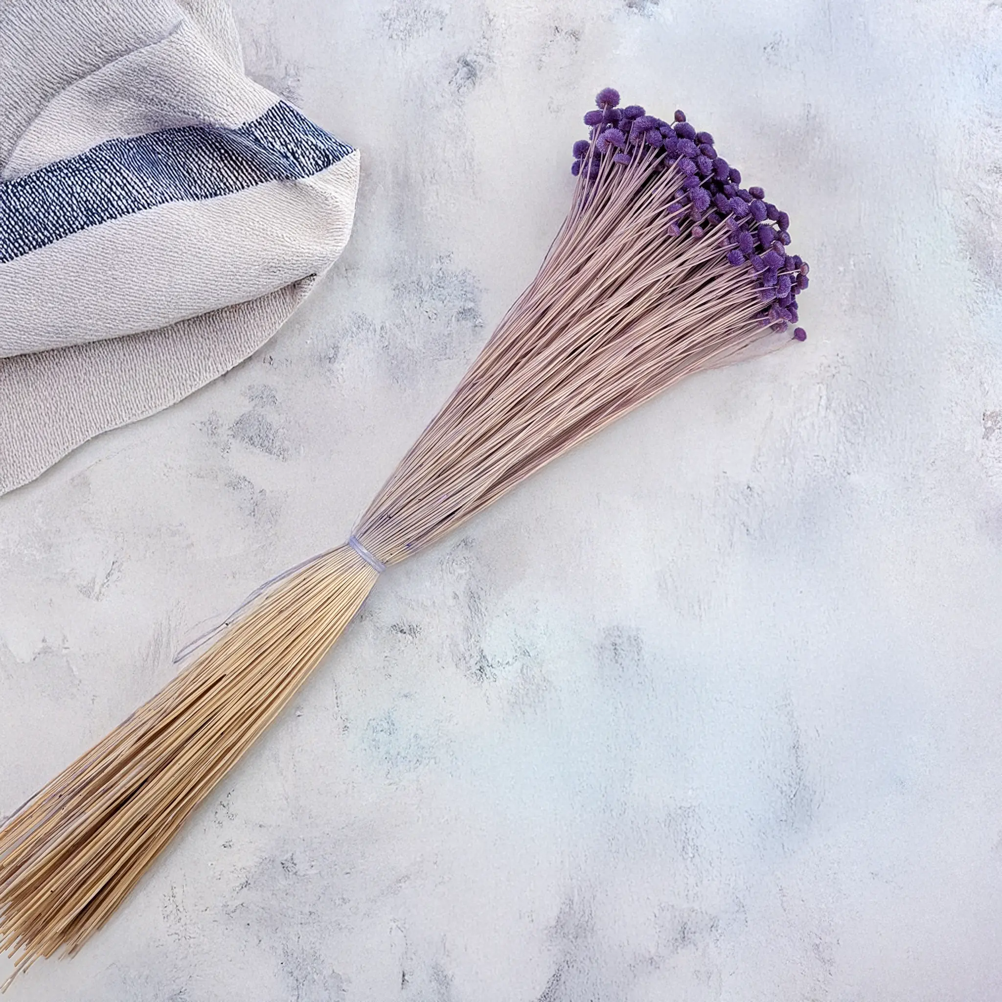 Botao Amarelino, znane także jako Amarelinho, w kolorze lawendowym to dekoracja, która wnosi do wnętrz subtelność i harmonię. Jego drobne, guziczkowe kwiaty nadają aranżacjom unikalnego wdzięku i charakteru. Dzięki starannie przeprowadzonemu procesowi suszenia, kwiatostany zachowują naturalny wygląd i trwałość, pozwalając cieszyć się nimi przez długi czas.