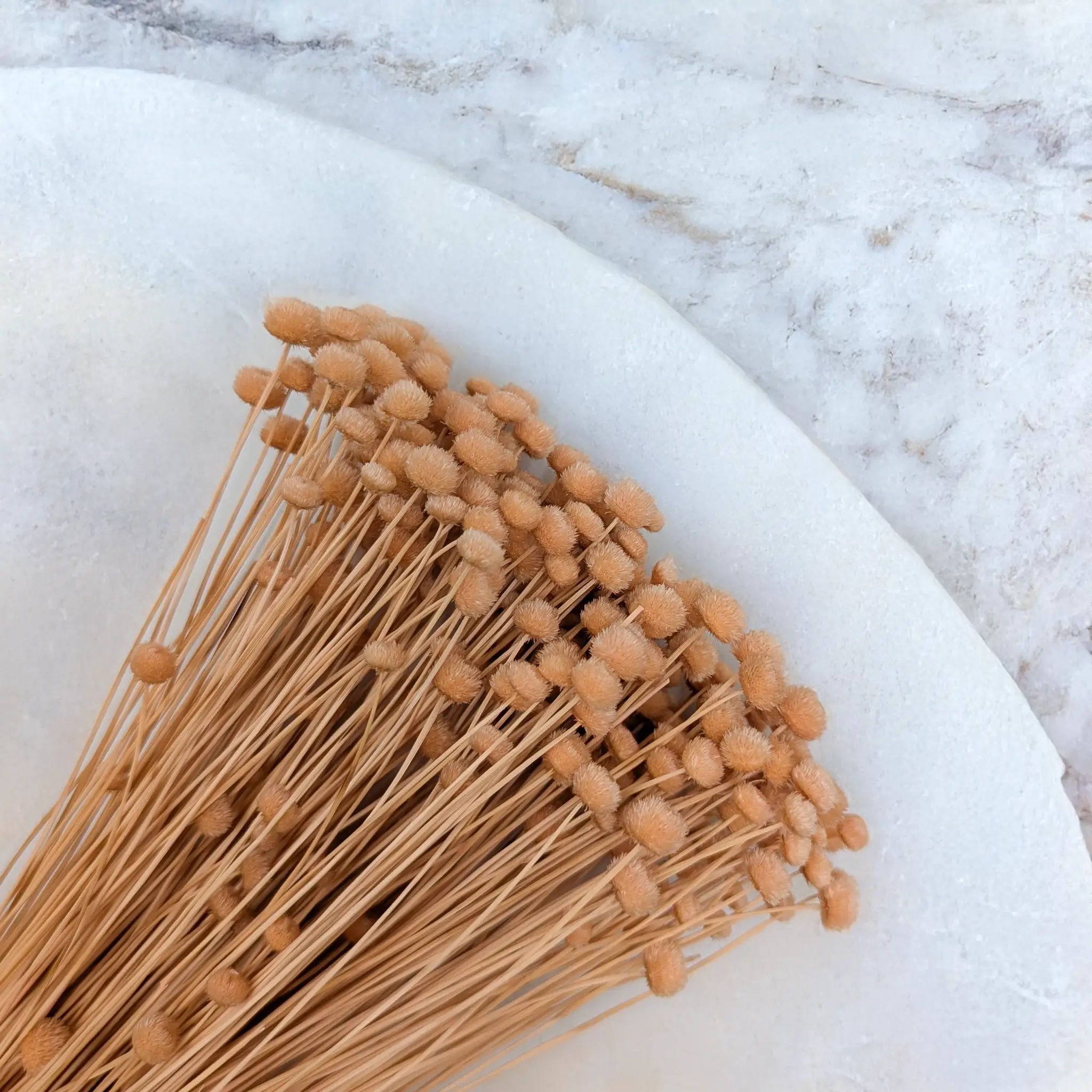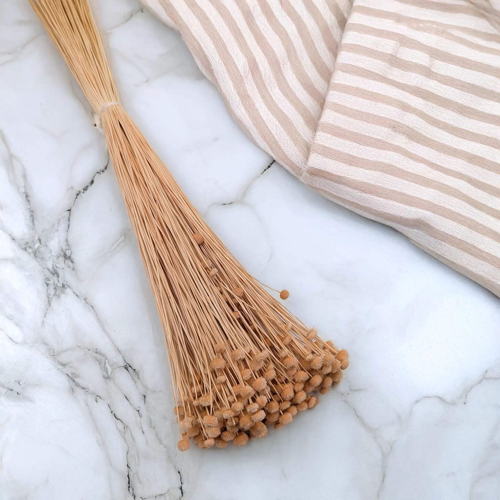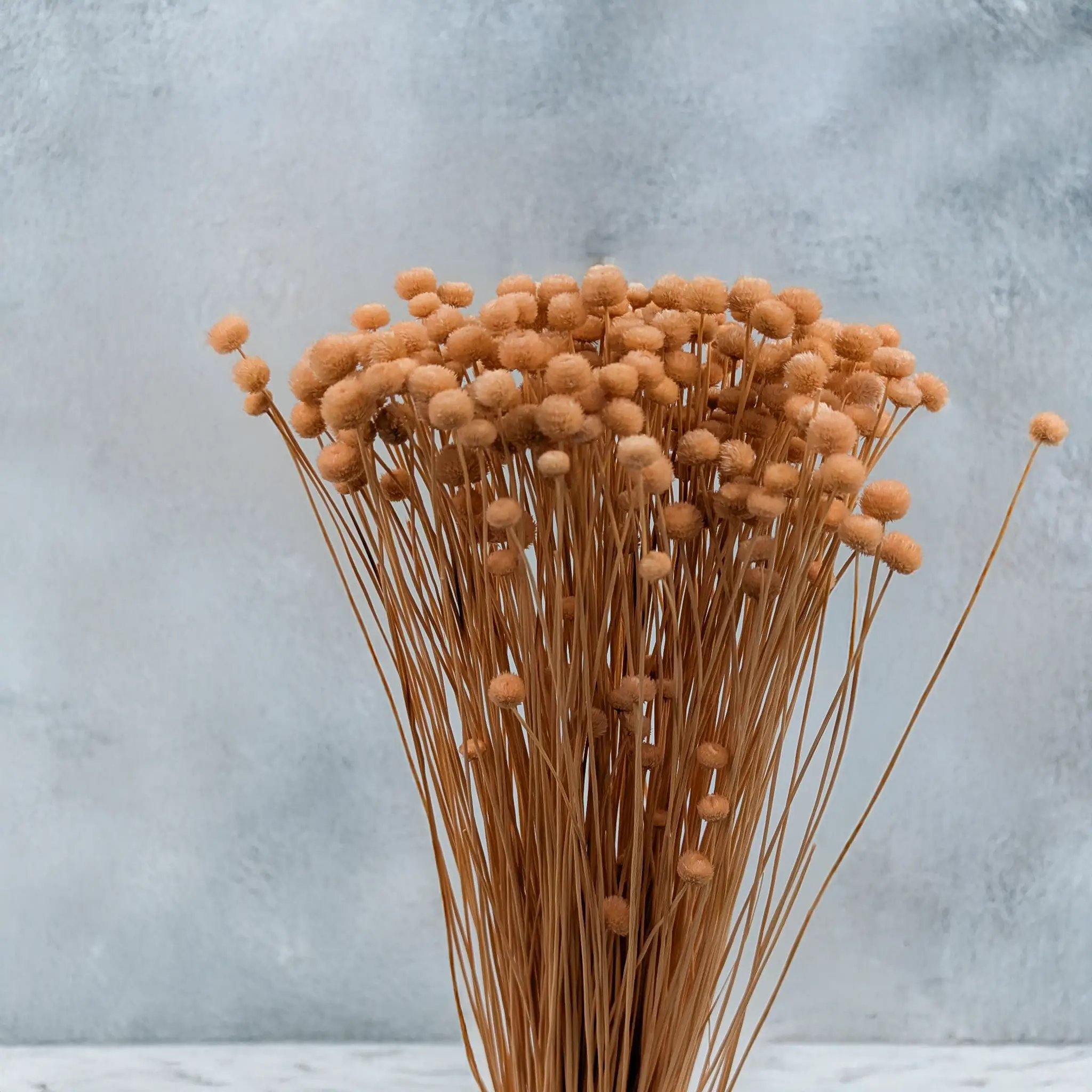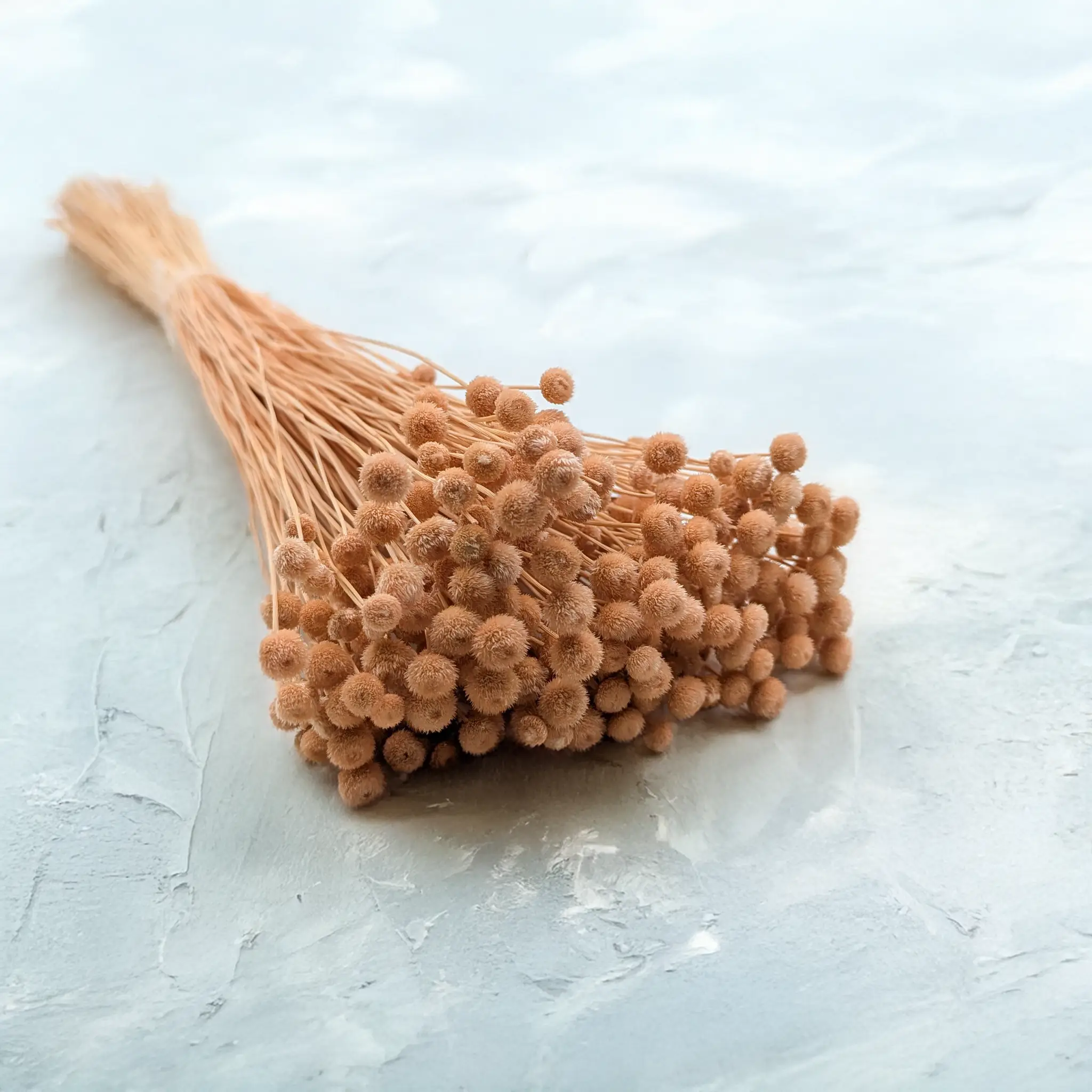 Botao Amarelino, znane również jako Amarelinho, w kolorze brzoskwiniowym to wyjątkowa dekoracja, która wprowadza do wnętrz przytulność i subtelny urok. Guziczkowe kwiaty tej rośliny nadają aranżacjom naturalnego wdzięku i oryginalności, a staranny proces suszenia sprawia, że zachowują one trwałość na wiele sezonów.