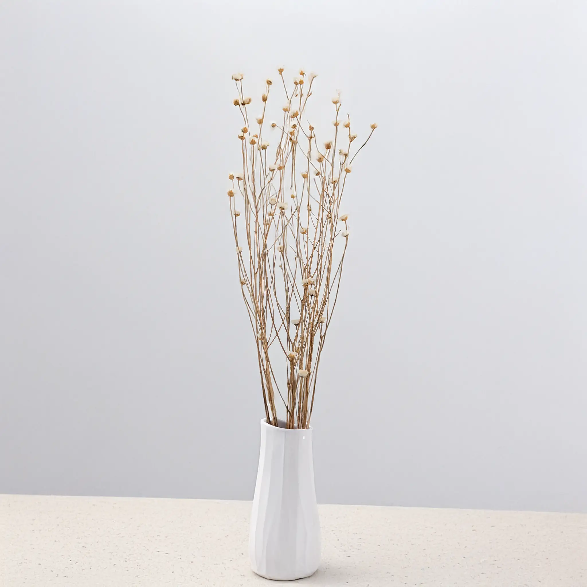 Chaber Suszony, znany również jako Centaurea, w naturalnym odcieniu białym to wyjątkowa dekoracja florystyczna. Jego subtelne kwiaty nadają aranżacjom czystości i lekkości, wprowadzając do wnętrza harmonię i elegancję. Dzięki procesowi suszenia zachowuje pierwotny wygląd i trwałość na wiele sezonów.