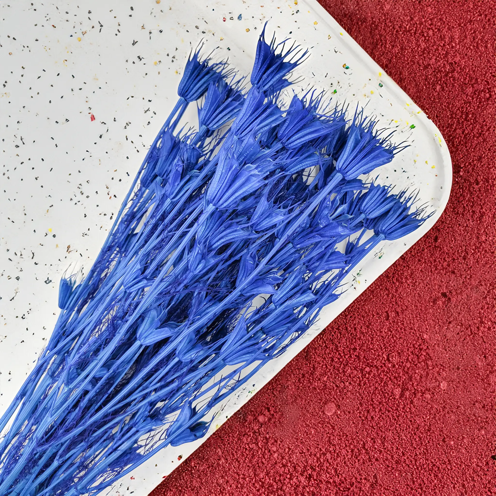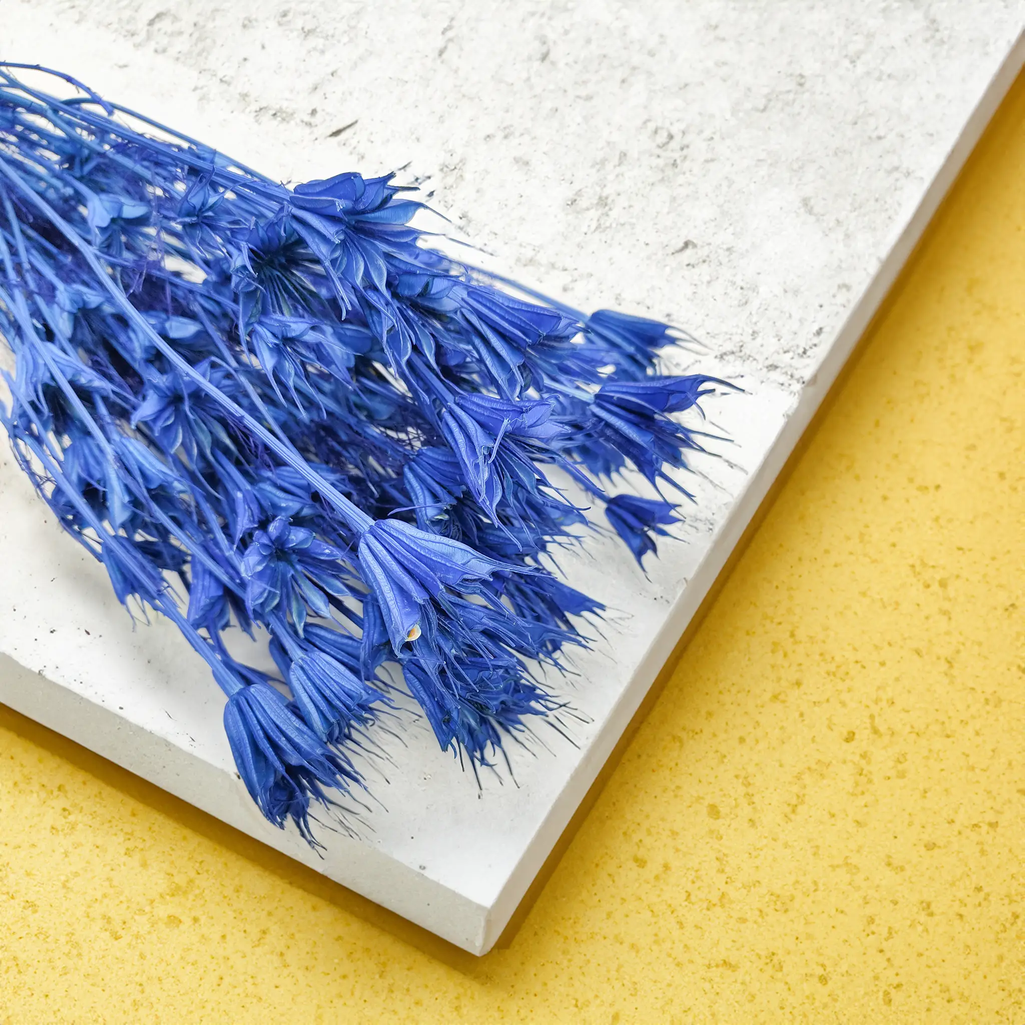 Wprowadź subtelność i chłodną elegancję do swoich kompozycji z pomocą suszonej czarnuszki orientalnej (Nigella Orientalis) w odcieniu niebieskim. Jej ażurowe gniazda nasienne zachwycają delikatnością formy i doskonale uzupełniają florystyczne aranżacje w stylu naturalnym, nowoczesnym czy romantycznym.