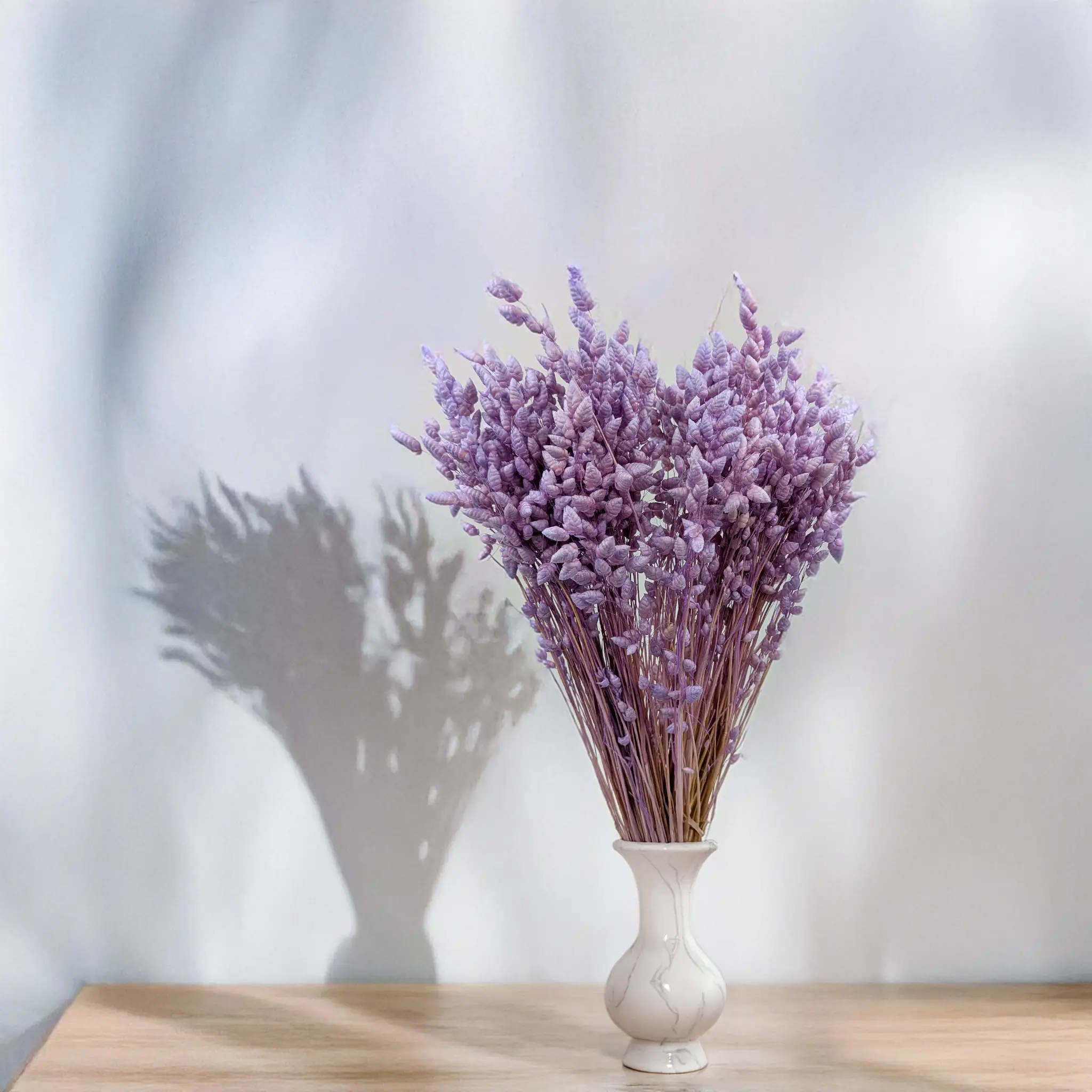 Drżączka suszona (Briza Maxima) w odcieniu lawendowym to wyjątkowa dekoracyjna trawa, która wnosi lekkość i subtelną elegancję do każdej aranżacji florystycznej. Jej zwiewne, charakterystyczne kłosy poruszają się przy najdelikatniejszym podmuchu powietrza, tworząc wrażenie lekkości i naturalnej harmonii. Lawendowy kolor podkreśla romantyzm i klasykę kompozycji, doskonale wpisując się w styl rustykalny, vintage i boho.