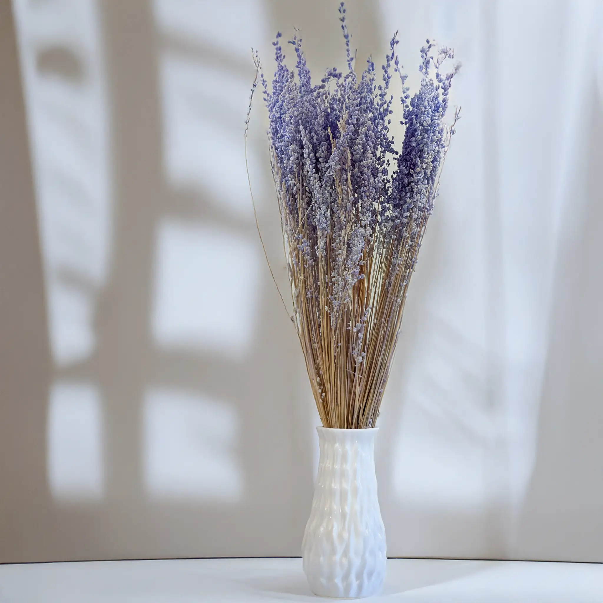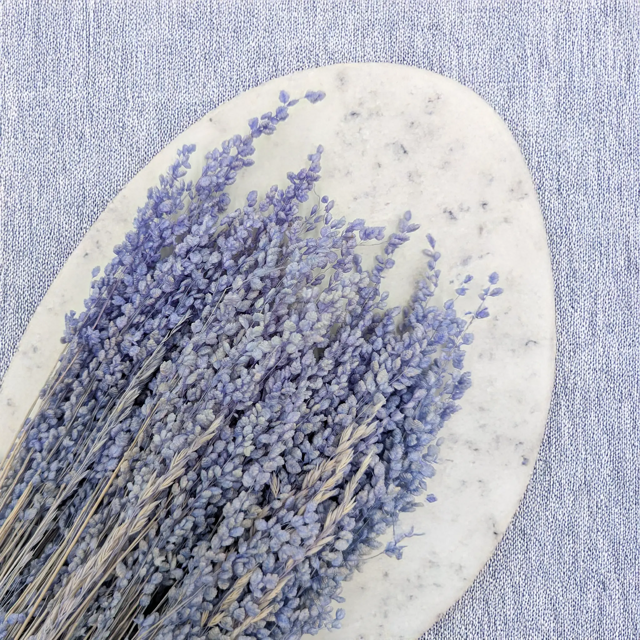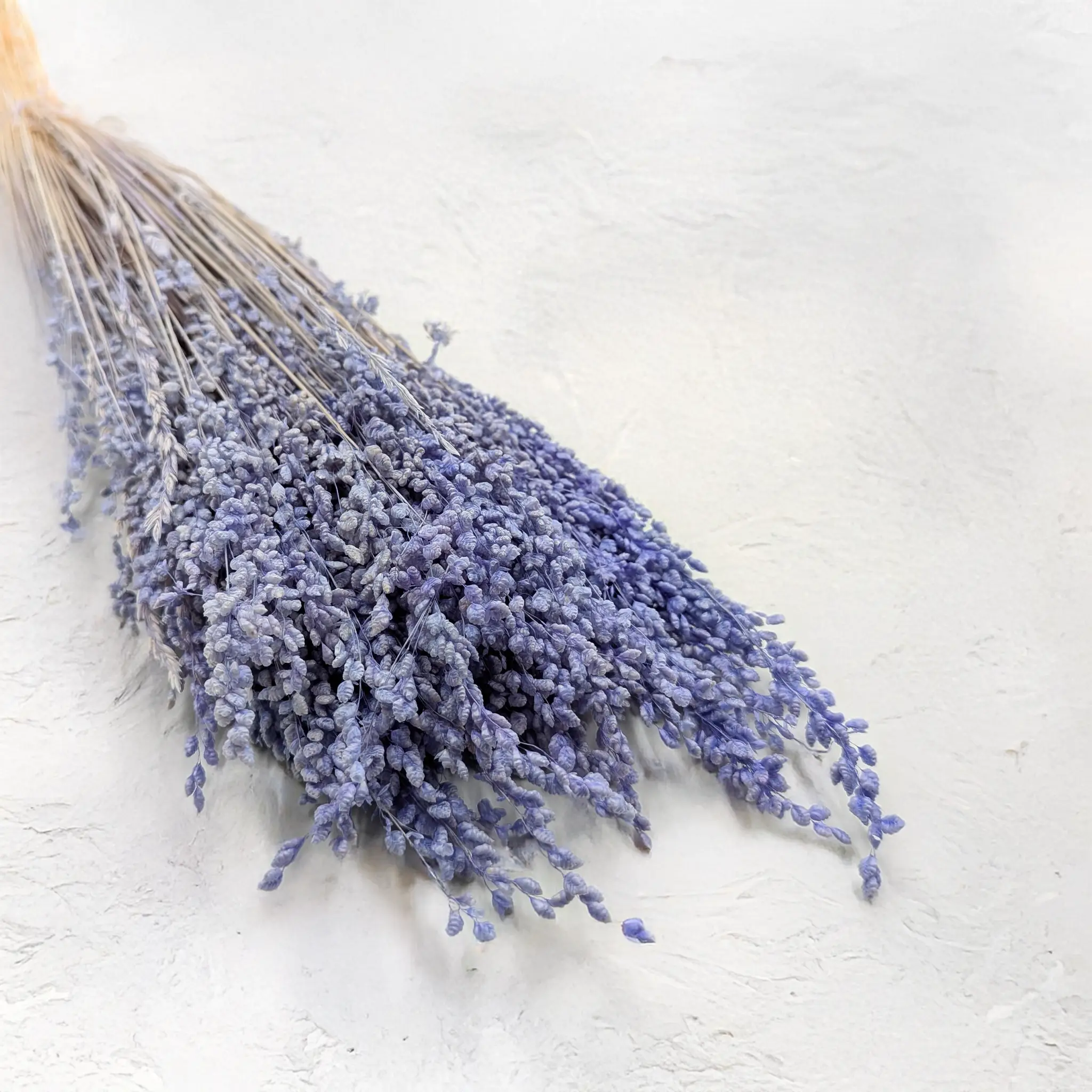 Briza minima w odcieniu lawendowym to dekoracyjna trawa, która wnosi do kompozycji nutę spokoju, świeżości i romantyzmu. Jej drobne, drgające kłosy przyciągają wzrok i doskonale uzupełniają bukiety w stylu boho, japandi czy rustykalnym. Barwiona wersja w chłodnej pastelowej tonacji świetnie współgra zarówno z jasnymi, jak i bardziej nasyconymi kolorami suszonych kwiatów.