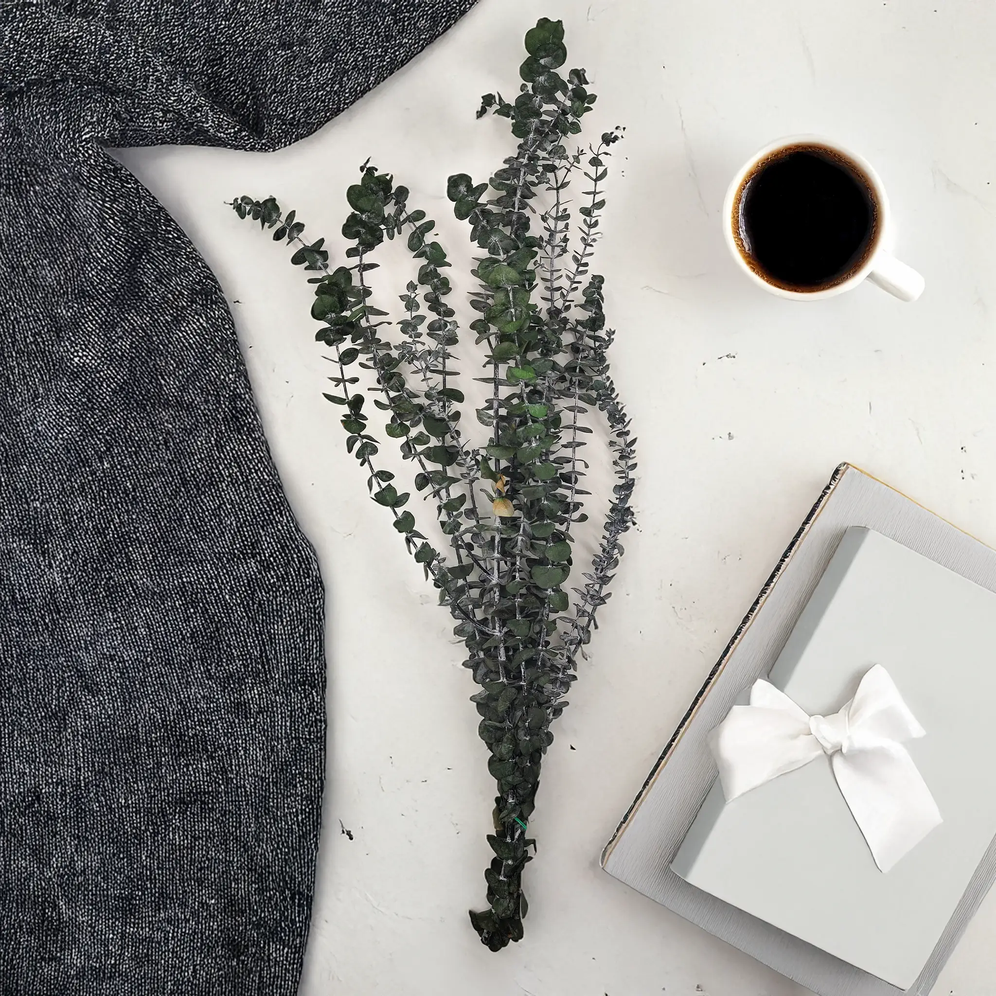 Eukaliptus symbolizuje oczyszczenie, równowagę i zdrowie. W zielonym wydaniu dodatkowo kojarzy się z siłą natury, stabilnością i harmonią. To doskonały wybór do kompozycji niosących spokój i równowagę.