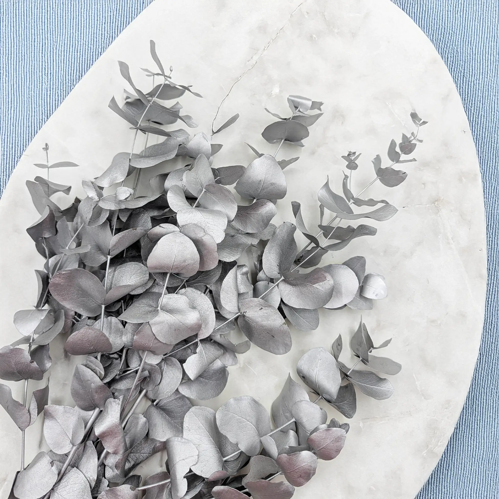 Eukaliptus stabilizowany Cinerea w kolorze srebrnym to elegancki, nowoczesny i niezwykle uniwersalny materiał dekoracyjny. Jego chłodny, metaliczny odcień doskonale komponuje się z wnętrzami w stylu glamour, nowoczesnym, japandi czy skandynawskim. Idealny do tworzenia kompozycji ślubnych, bukietów, wieńców oraz aranżacji florystycznych, które mają wyróżniać się subtelnym połyskiem i elegancją.