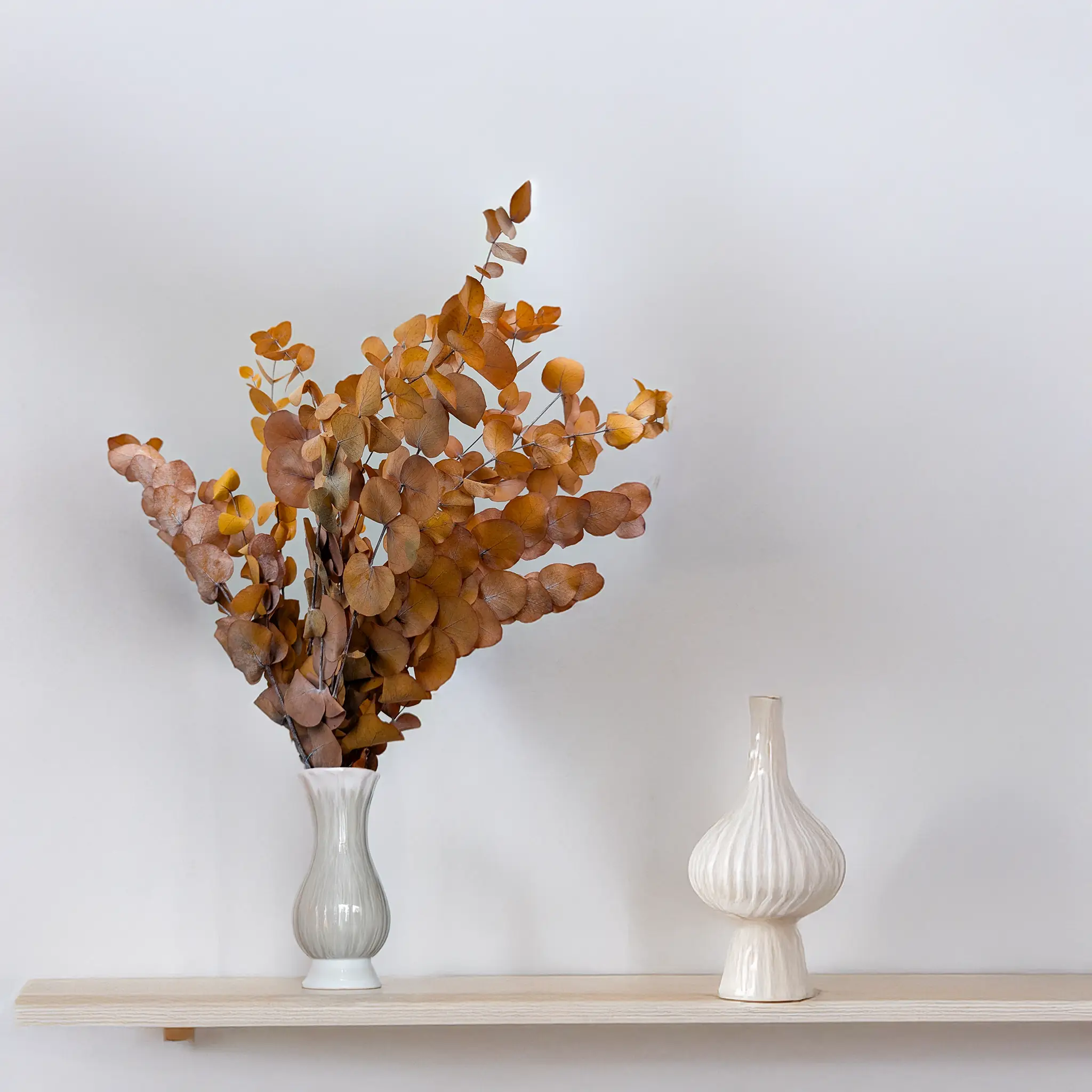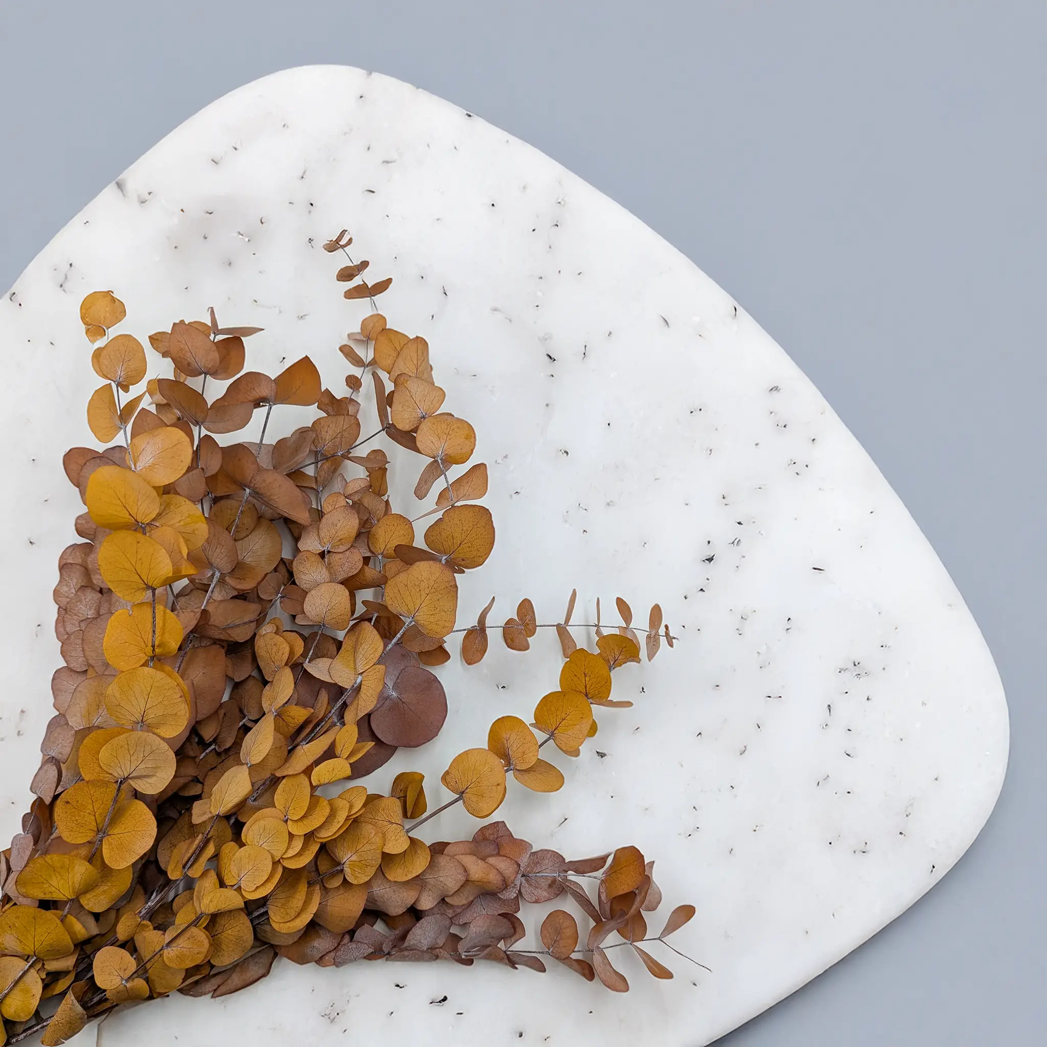 Eukaliptus Espiral w jasnym jesiennym odcieniu to doskonały wybór do aranżacji o naturalnym, ciepłym charakterze. Spiralna forma liści wnosi do kompozycji ruch i lekkość, a jego kolor świetnie wpisuje się w estetykę rustykalną, skandynawską i boho. Idealny do dekoracji sezonowych, stroików stołowych, ślubnych instalacji oraz projektów DIY. Stabilizowana struktura gwarantuje trwałość bez konieczności pielęgnacji.