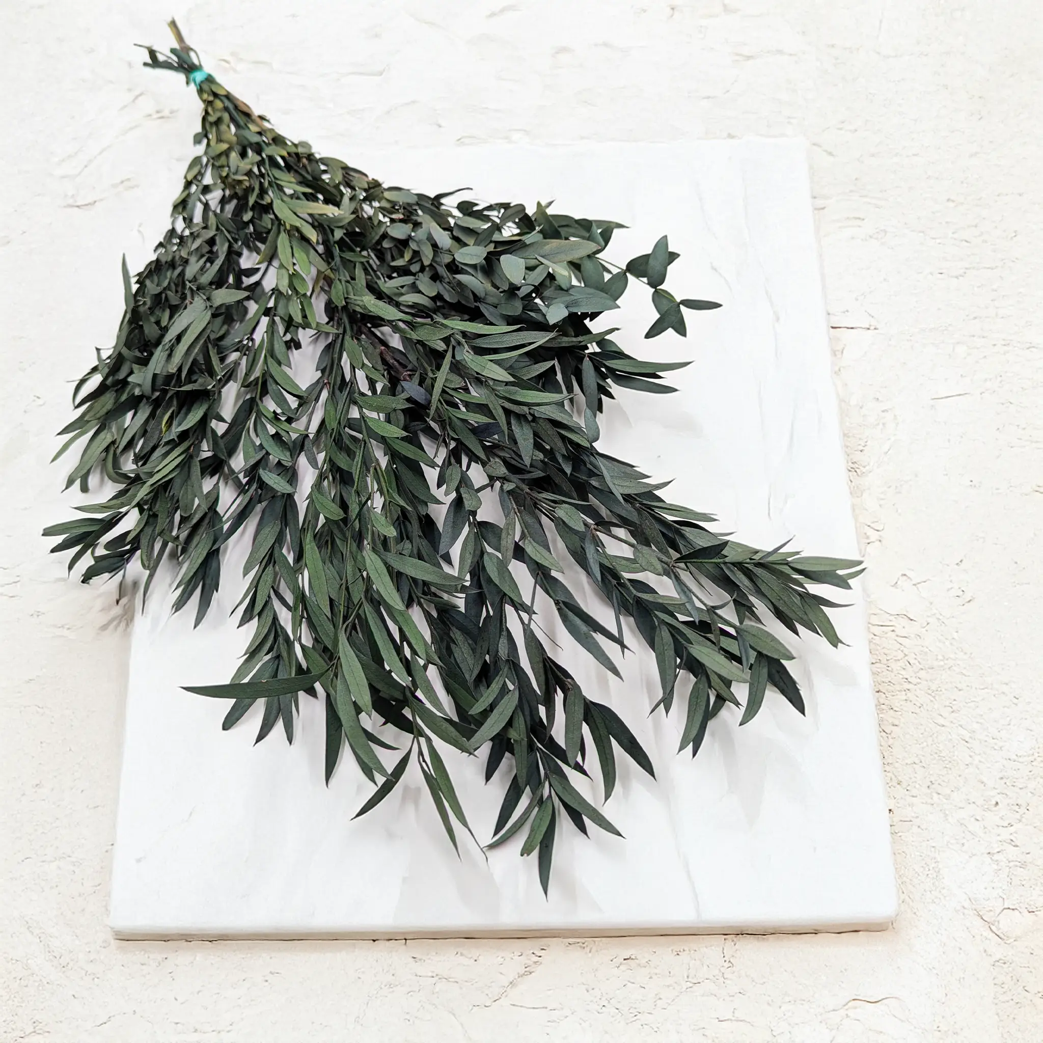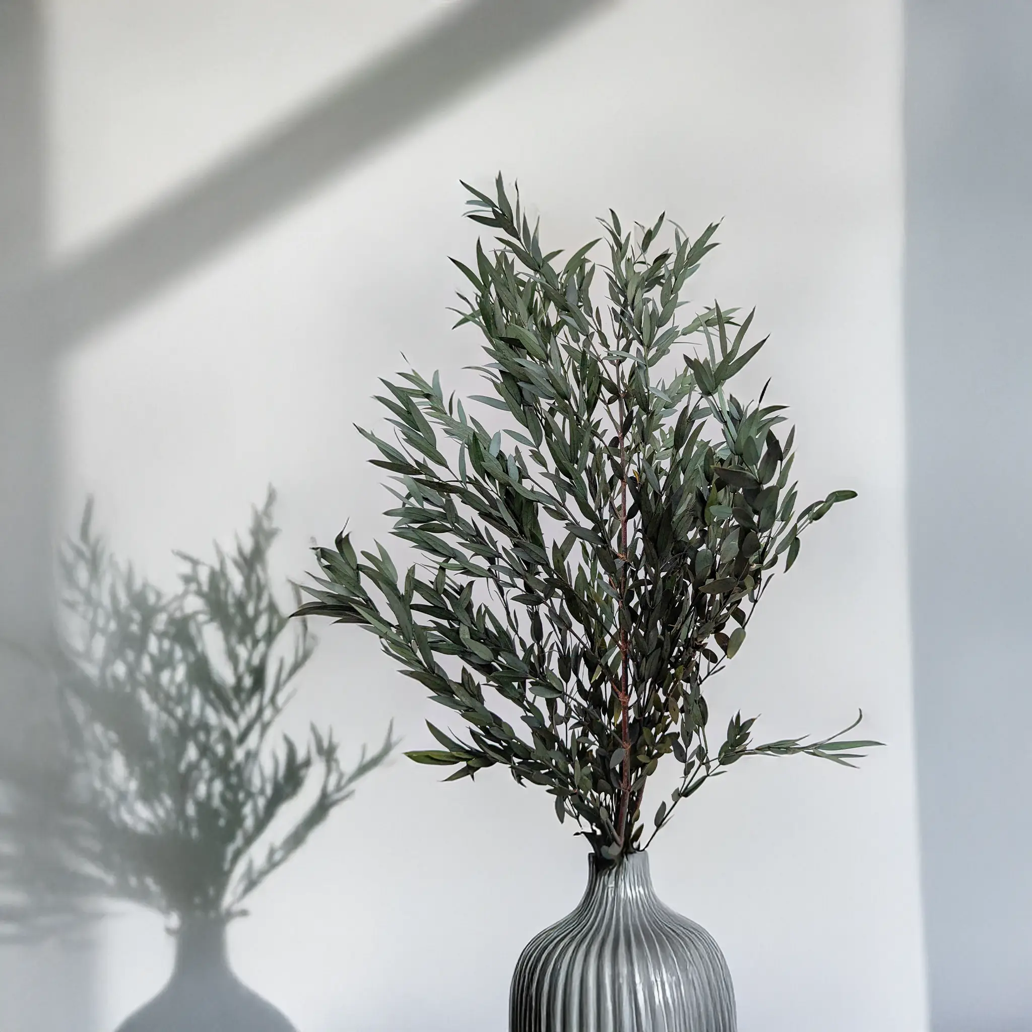 Stabilizowany eukaliptus symbolizuje odnowę i równowagę. W tej formie zyskuje również znaczenie trwałości i harmonii z naturą. Doskonały wybór do dekoracji, które mają podkreślać spokój, świeżość i estetykę naturalnego piękna.