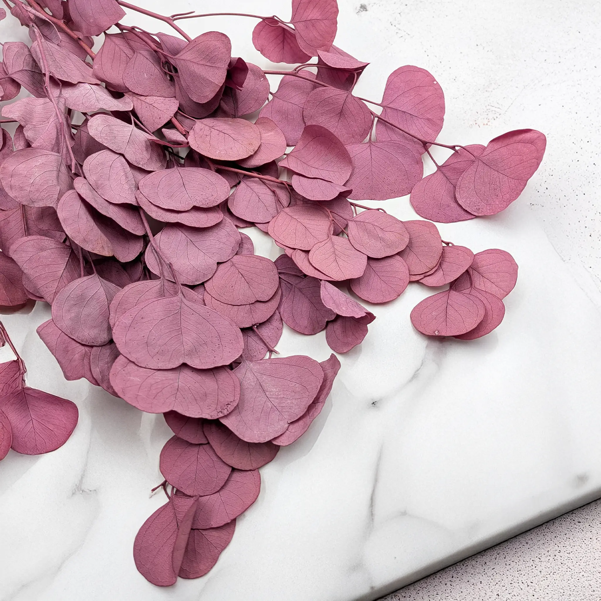 Eukaliptus w kolorze brudnego różu doskonale łączy się z kremową gipsówką stabilizowaną, bielonym lagurusem, jasną hortensją, phalarisem w odcieniach beżu oraz suszoną lawendą. Świetnie sprawdza się także w zestawieniach z naturalnym drewnem, złotymi dodatkami oraz lnianymi tekstyliami.