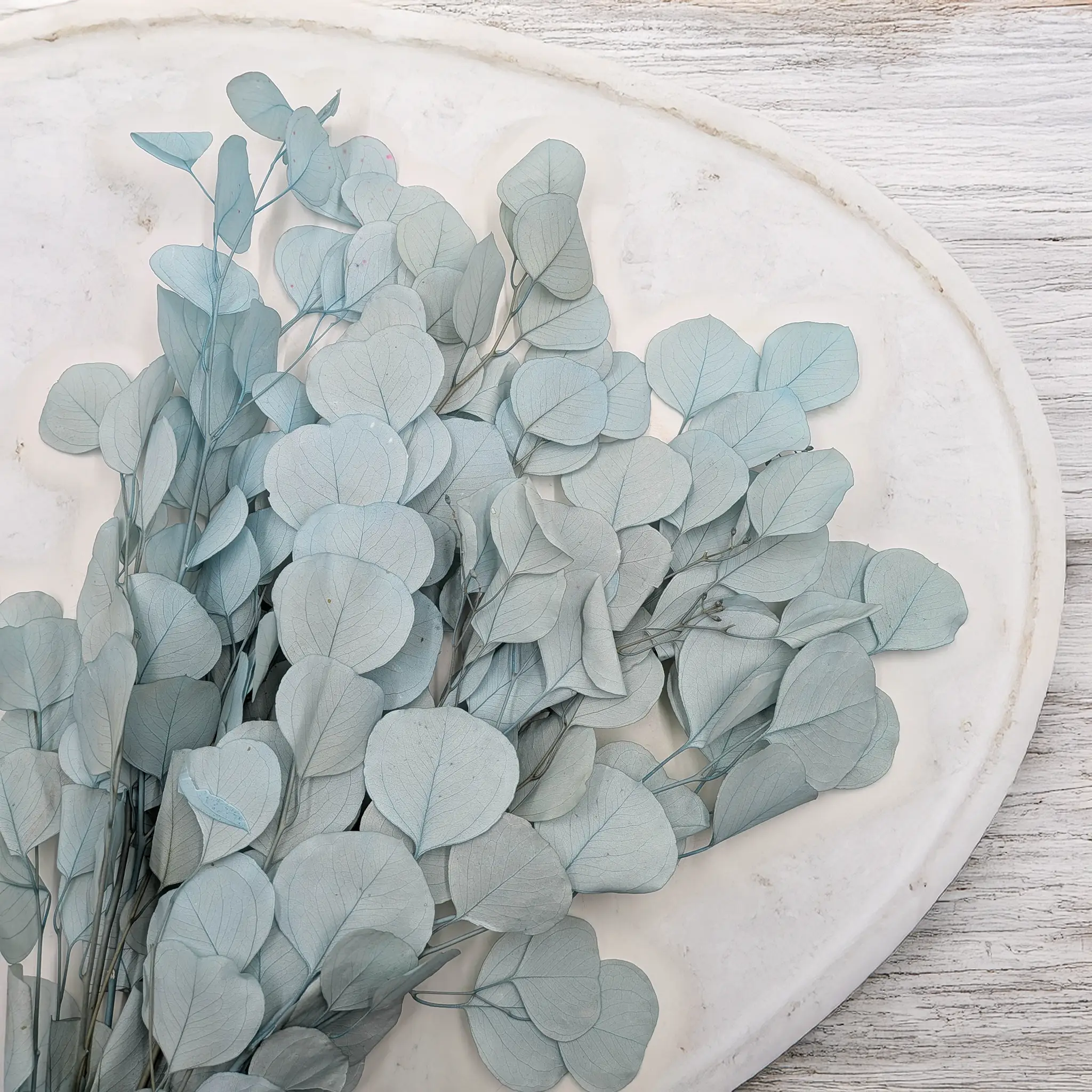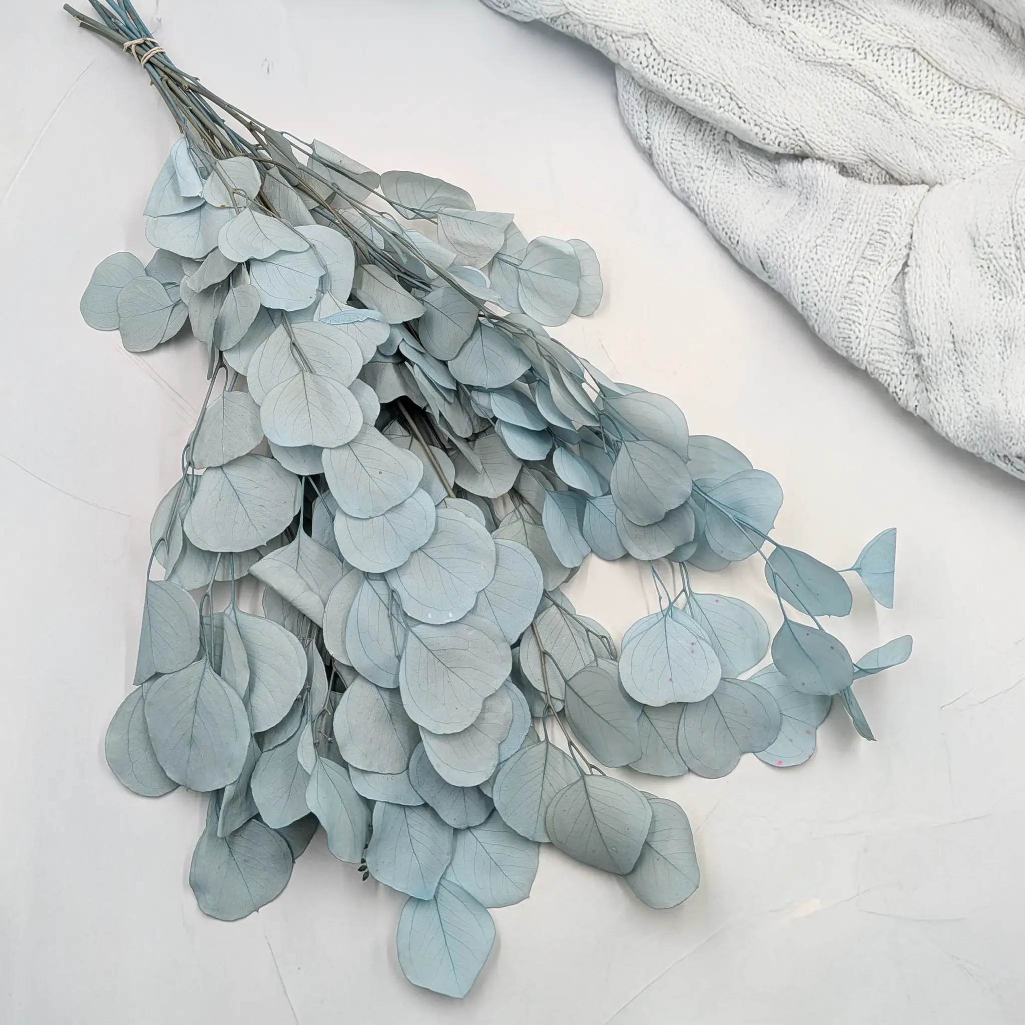 Jasny niebieski kolor nadaje kompozycjom świeżości i lekkości. Dzięki swojej delikatnej tonacji eukaliptus może stanowić zarówno główny element dekoracyjny, jak i subtelne uzupełnienie bukietów i aranżacji.