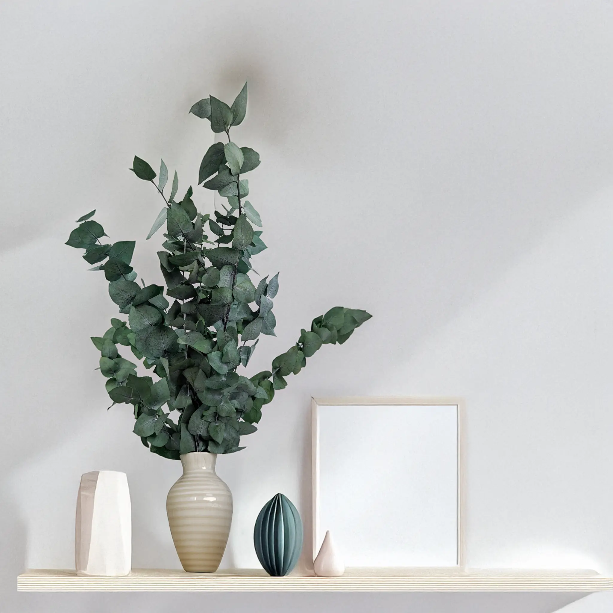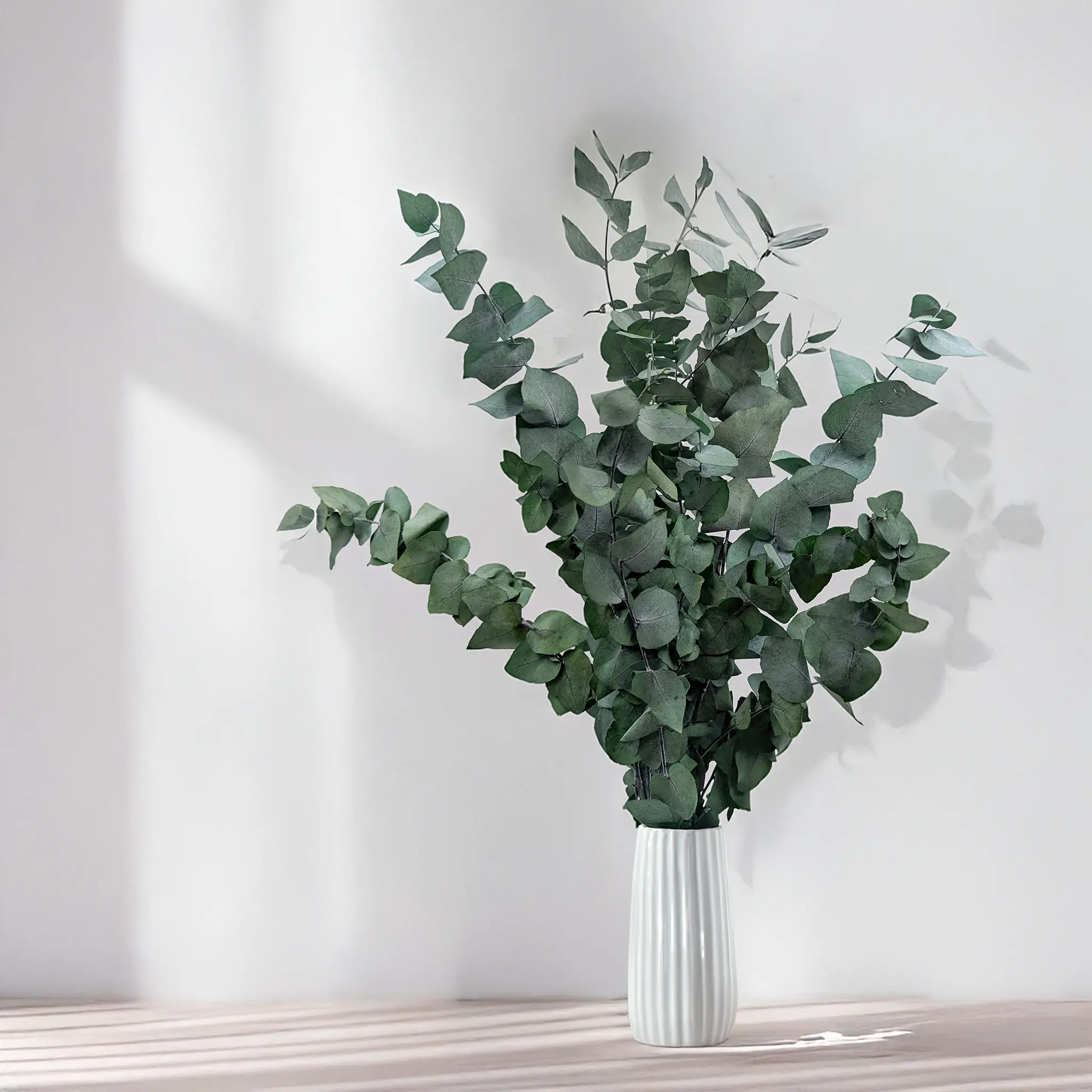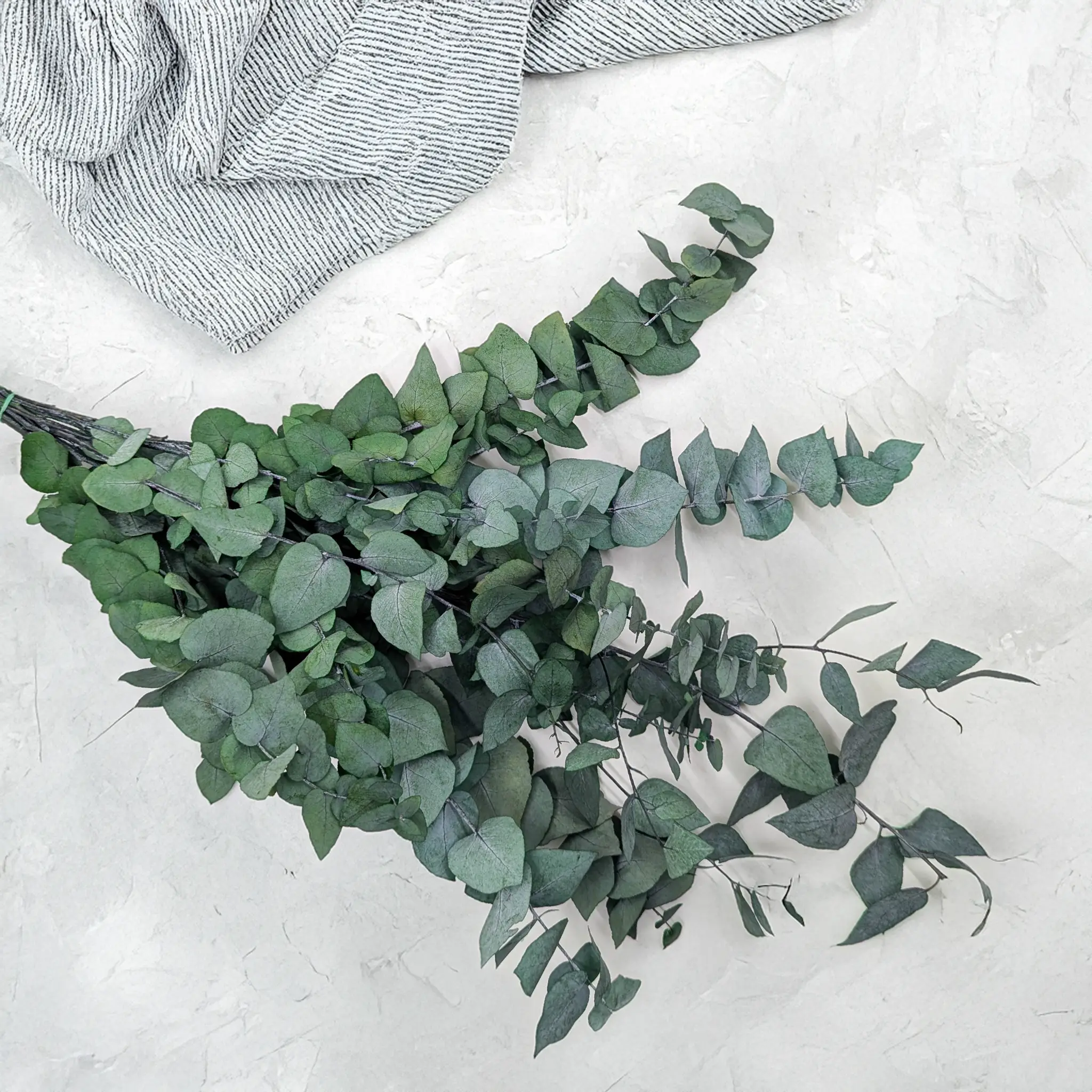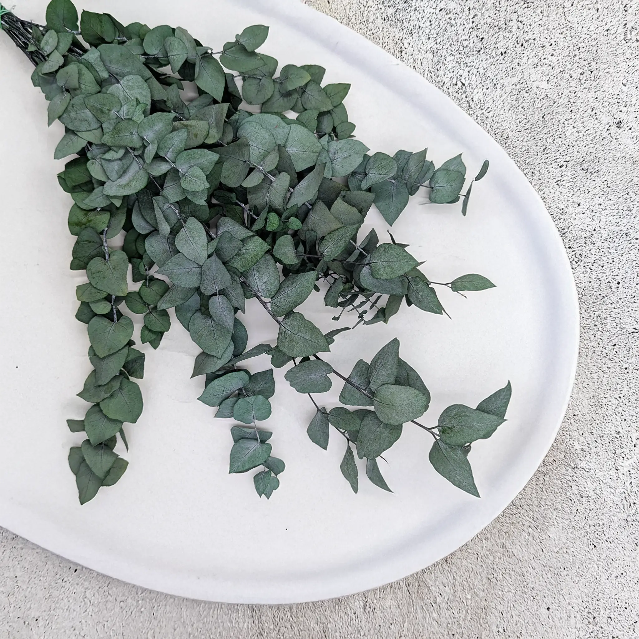 Zielony eukaliptus Stuartiana to elegancka odmiana o naprzemiennie osadzonych, okrągłych liściach, które rozciągają się na smukłych łodygach. Wyróżnia się lekką strukturą i dużą powierzchnią liści, dzięki czemu jest doskonałym wyborem do kompozycji o wyraźnym charakterze naturalnym. Idealny do bukietów ślubnych, wianków, aranżacji wnętrz i dekoracji w stylu eko, boho czy rustykalnym. Stabilizacja zapewnia długowieczność i świeży wygląd bez potrzeby podlewania.