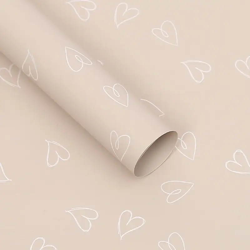Ciepły, kremowy odcień i wzór w białe serca tworzą romantyczny klimat – idealny na śluby, Walentynki czy bukiety z przesłaniem. Gotowe arkusze o wymiarach 58×58 cm są wygodne w użyciu i umożliwiają szybkie pakowanie kompozycji oraz prezentów.