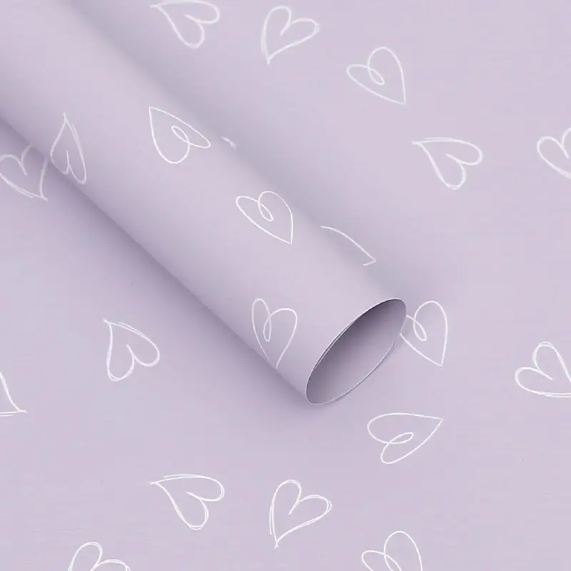 Folia florystyczna wykonana z wysokiej jakości folii BOPP (polipropylen) to niezastąpiony materiał w dekoracjach kwiatowych. Jej jednolity, szaro-lawendowy kolor w połączeniu z subtelnym nadrukiem białych serc sprawia, że produkt ten idealnie wpisuje się w romantyczne kompozycje florystyczne.