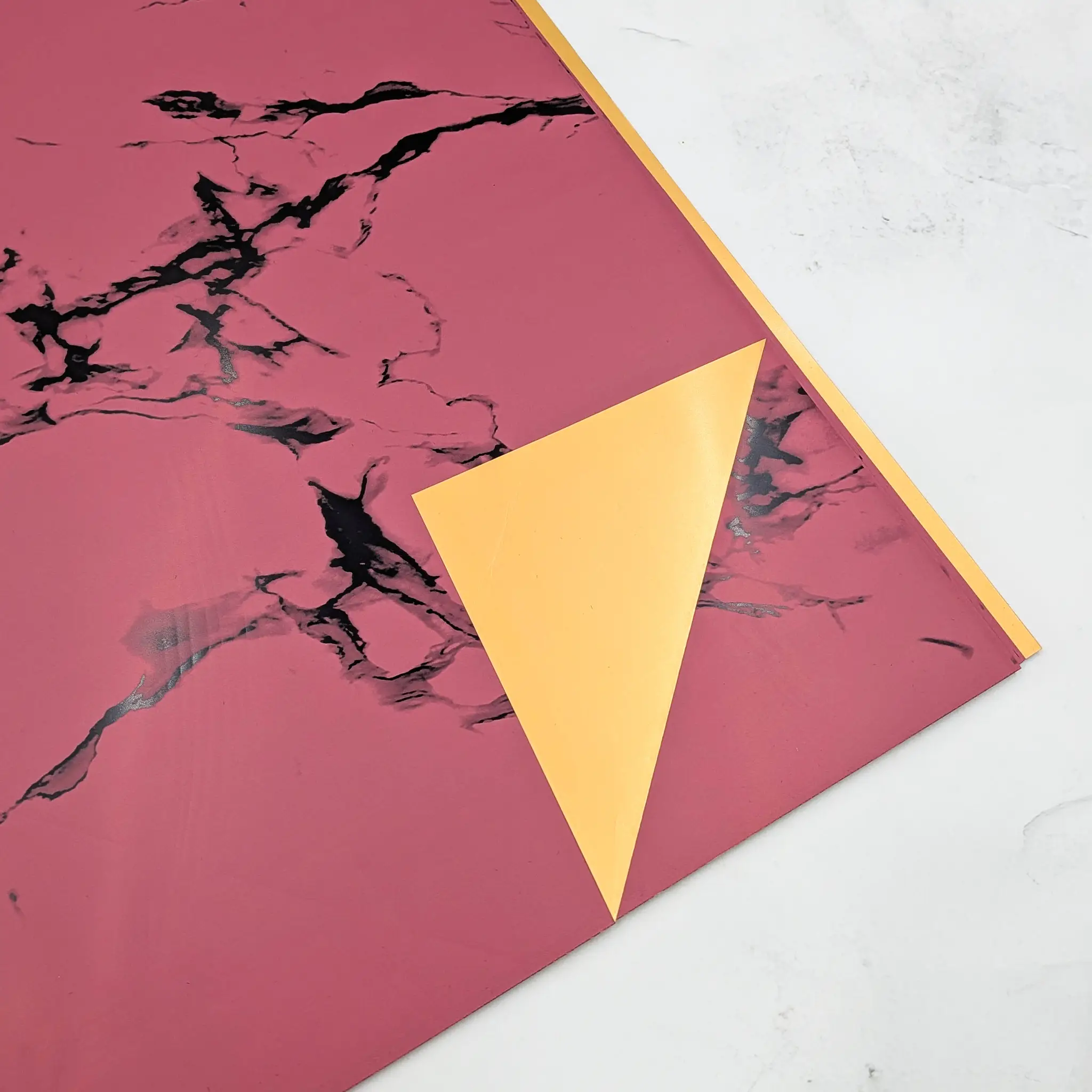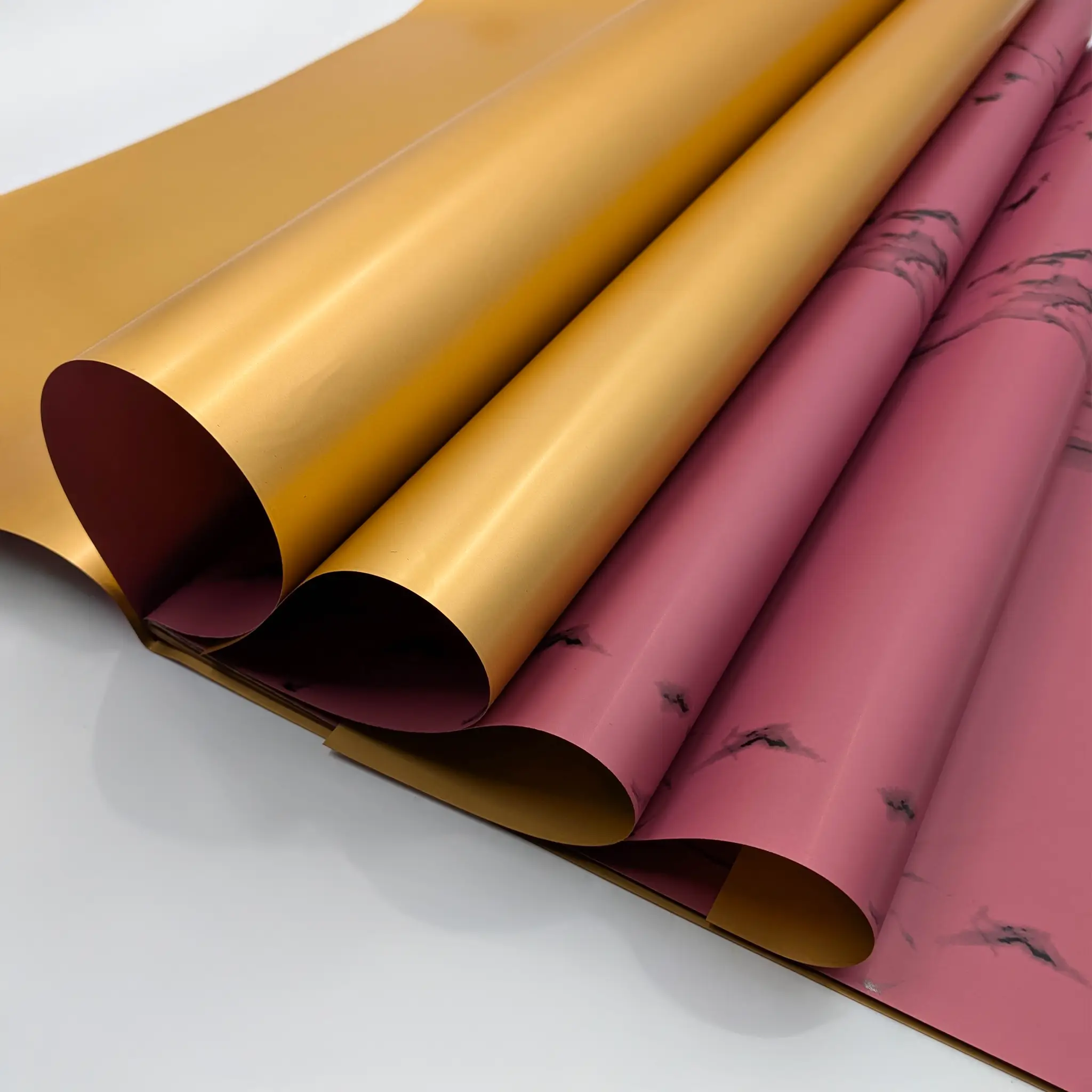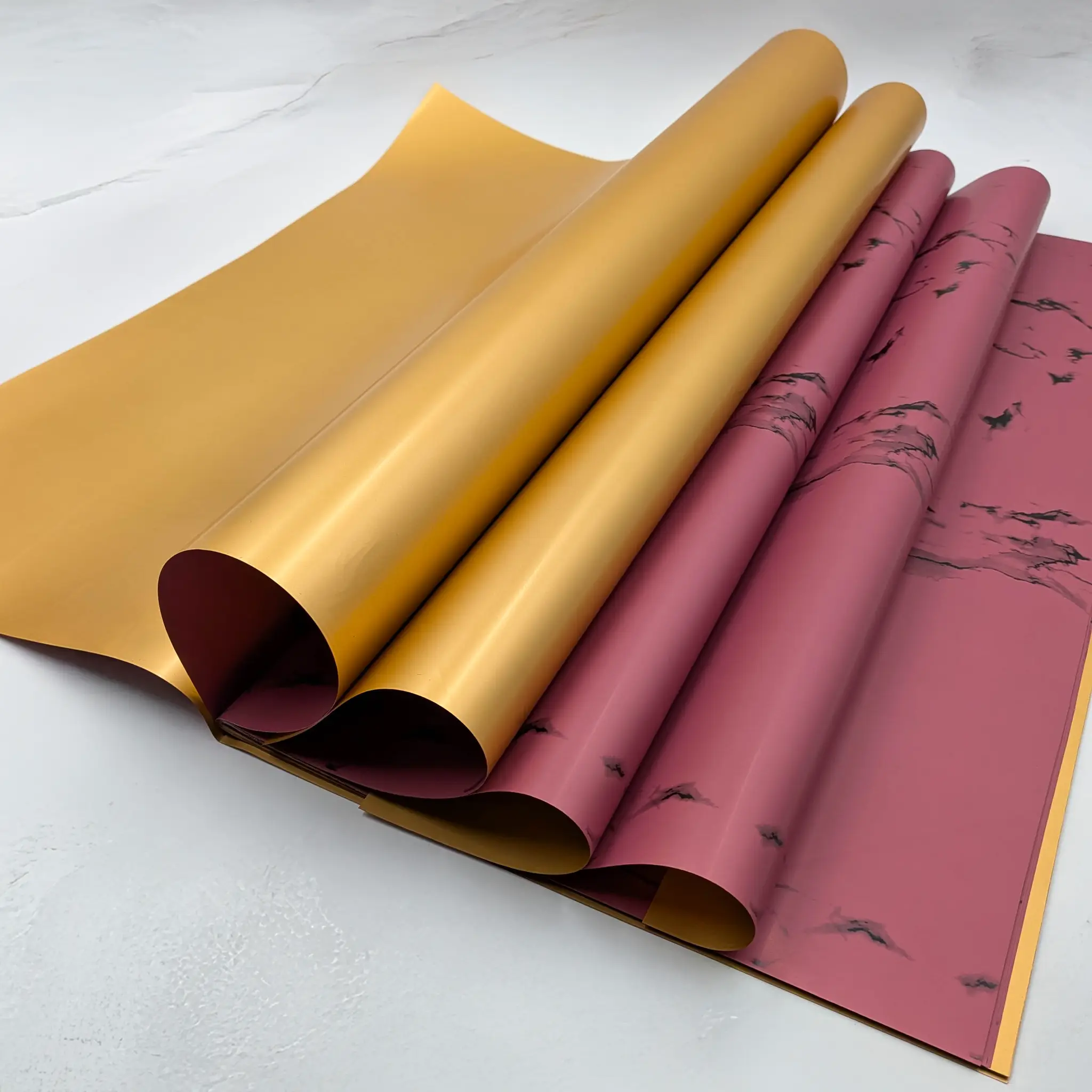 Stone&Shine w kolorze wiktoriańskiego różu to dwustronna folia florystyczna inspirowana klasyczną estetyką i ponadczasową elegancją. Jedna strona arkusza zdobiona jest marmurowym wzorem w odcieniu przygaszonego, szlachetnego różu, druga natomiast jest gładka i złota, co nadaje kompozycjom luksusowy, dekoracyjny charakter.