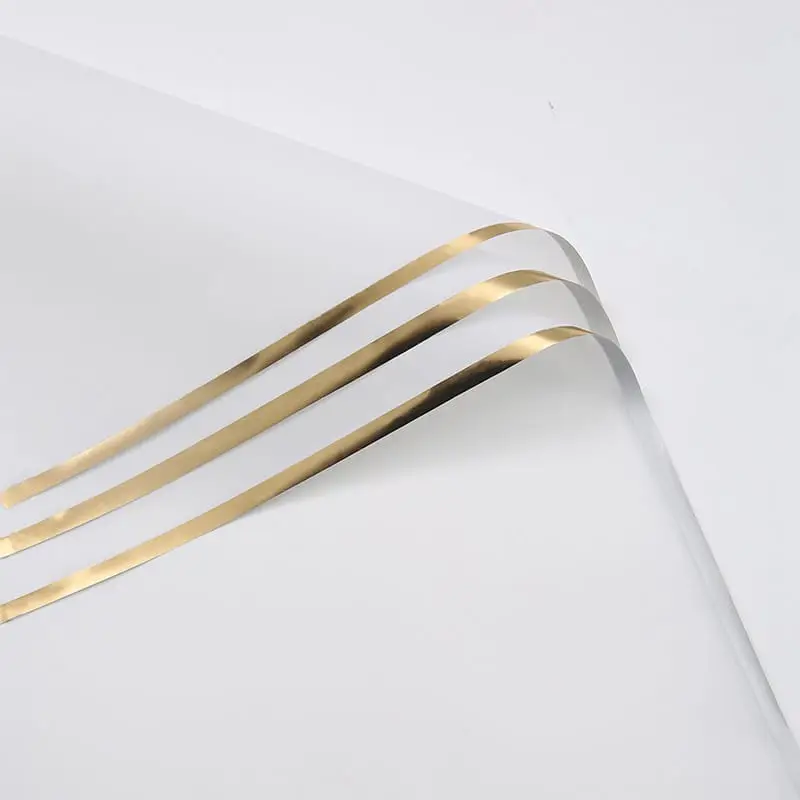 Złoty pasek na obwodzie folii to elegancki akcent, który dodaje jej stylu i kunsztu. Ten subtelny detal podkreśla estetykę bukietu i nadaje mu wyjątkowego wyglądu. Złoty kolor często kojarzony jest z luksusem, elegancją i wysoką jakością, co dodaje wartości estetycznej prezentowanym kwiatom.