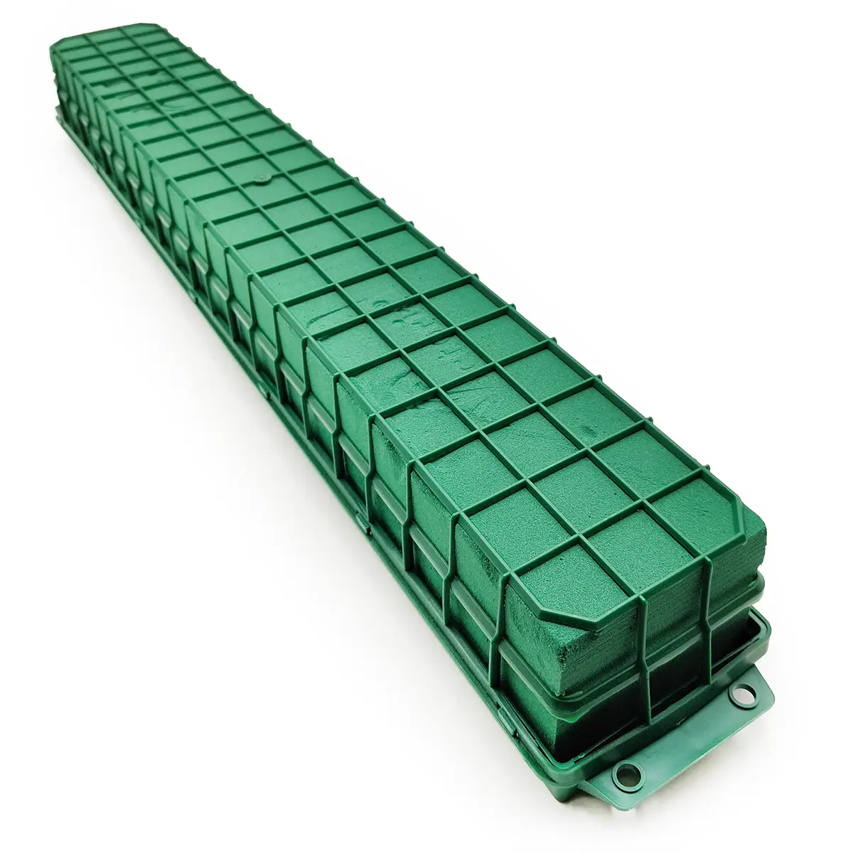 Garnet Long to wydłużona gąbka florystyczna w plastikowej obudowie, o wymiarach 75 cm x 11 cm x 10 cm. Zapewnia trwałość i wygodę przy tworzeniu kompozycji kwiatowych na duże powierzchnie i dekoracje wiszące.