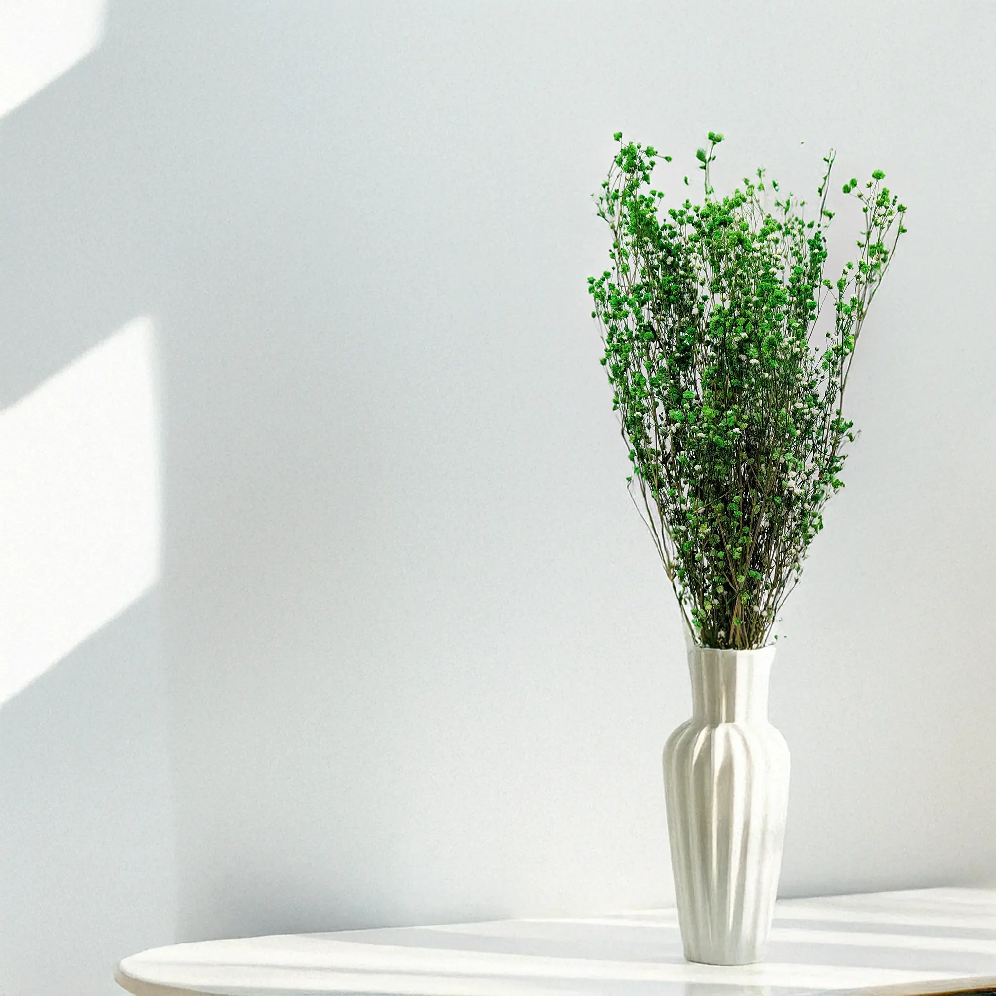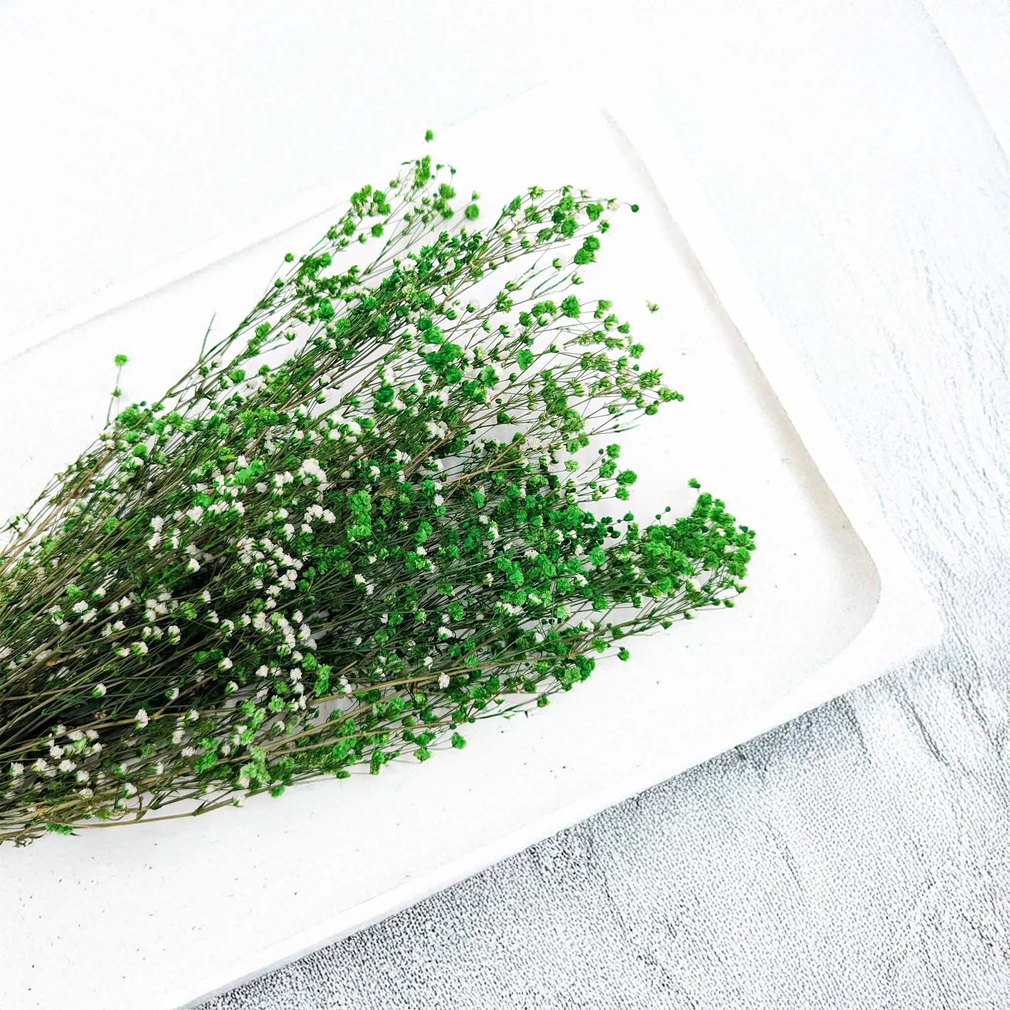 Zielona gipsówka stabilizowana to doskonały wybór dla miłośników dekoracji inspirowanych naturą. Zieleń symbolizuje spokój, równowagę i odrodzenie – idealna do kompozycji w stylu greenery, eko i botanicznym.
