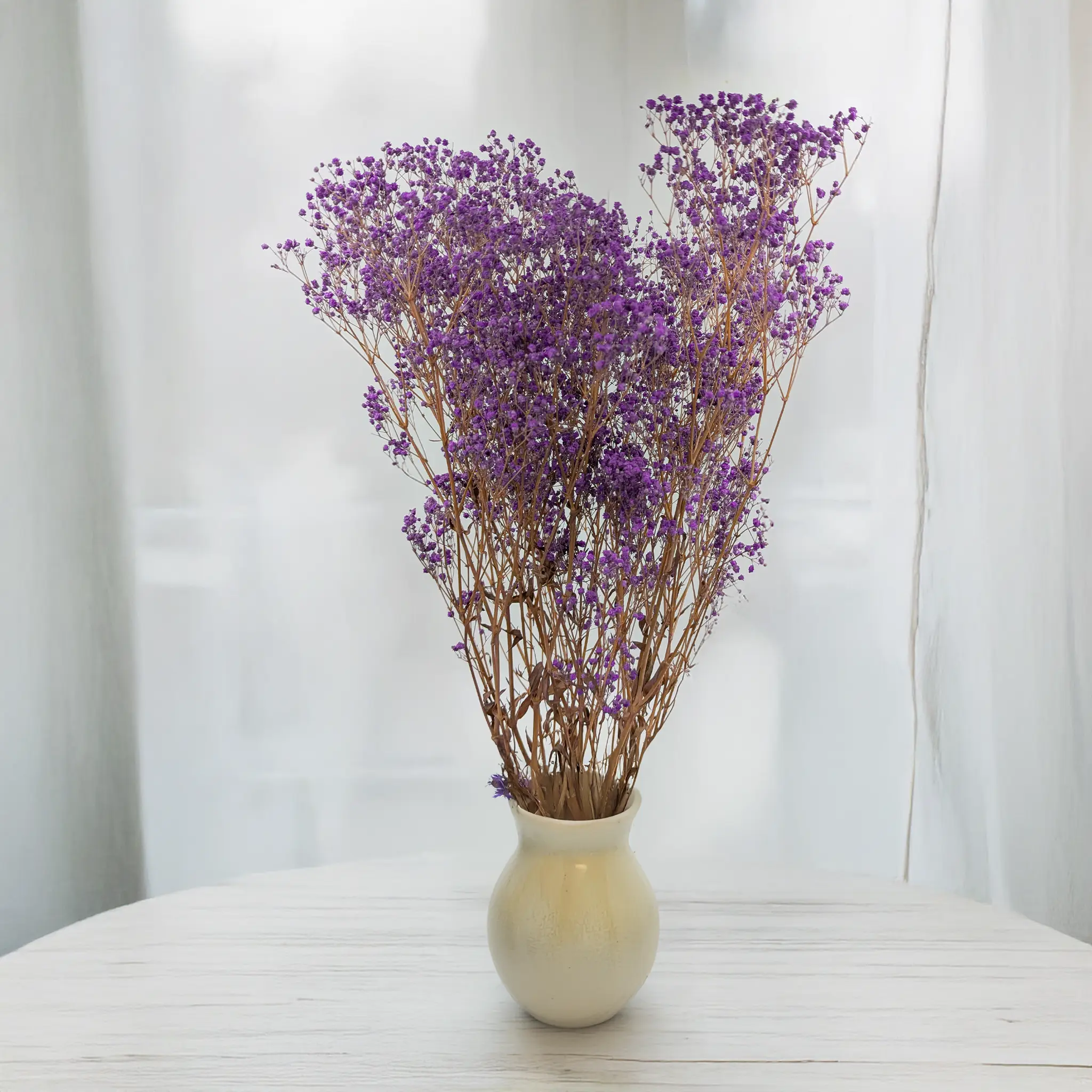 Stabilizowana gipsówka w pastelowym fiolecie to dekoracyjna roślina, która zachwyca delikatnością i kolorem symbolizującym spokój oraz duchowość. Idealna do nowoczesnych i romantycznych aranżacji ślubnych oraz dekoracji wnętrz.