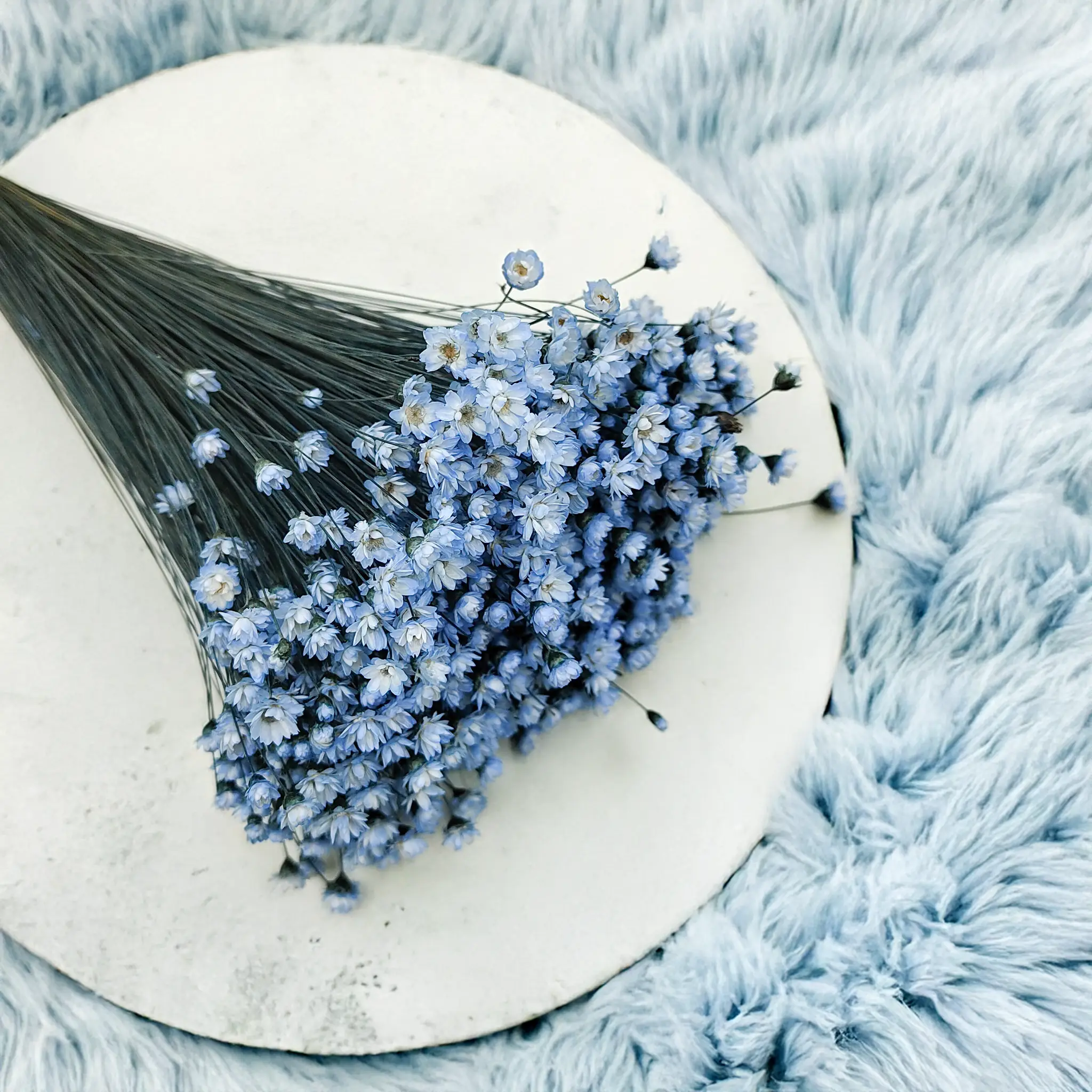 Glixia suszona to niezwykły, trwały dodatek do florystyki i dekoracji wnętrz. Dzięki swoim drobnym, delikatnym kwiatom w intensywnym niebieskim odcieniu, doskonale sprawdzi się w: