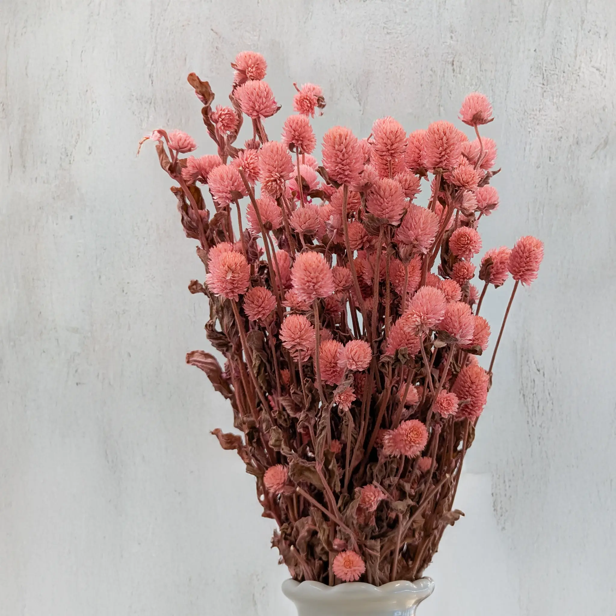 Suszona gomfrena kulista w odcieniu różowym to wyjątkowy akcent dekoracyjny, który łączy naturalność z subtelnym wdziękiem. Jej kuliste, pastelowe kwiatostany wprowadzają do aranżacji ciepło, delikatność i kobiecy charakter, doskonale pasując do kompozycji boho, vintage oraz rustykalnych.