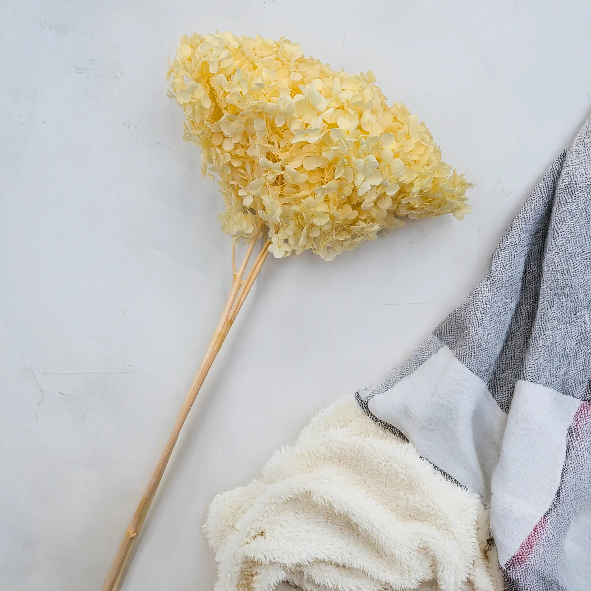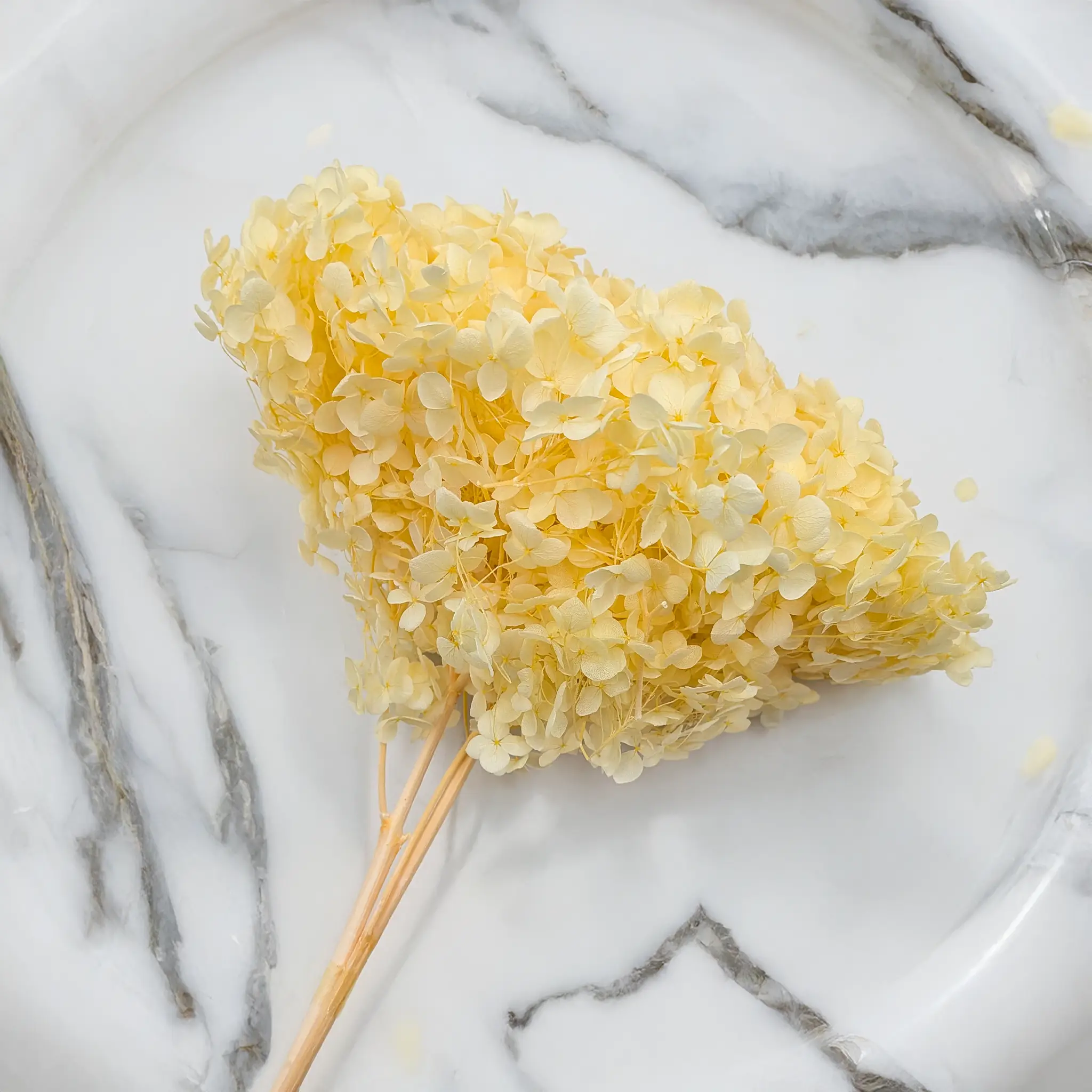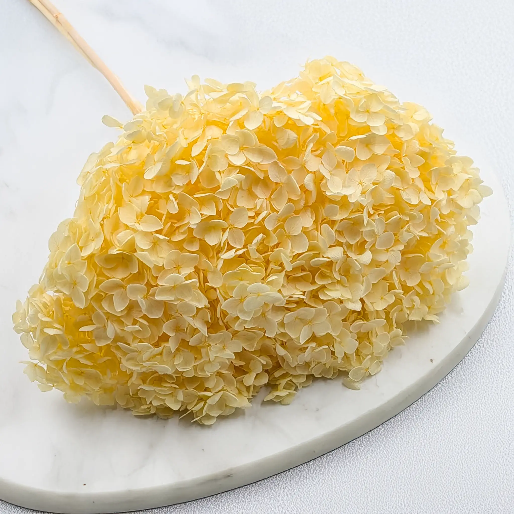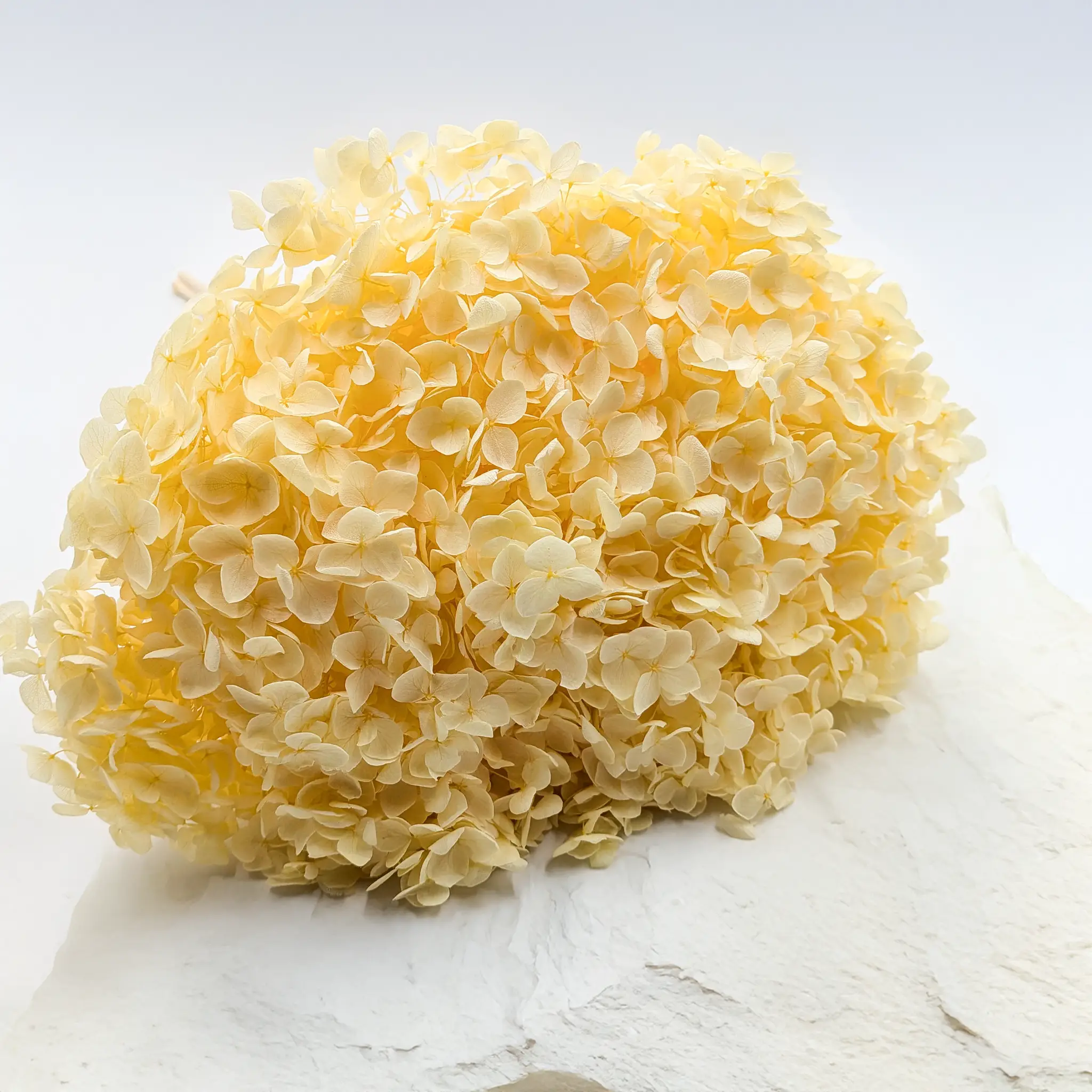 Hortensja Stabilizowana – Fioletowa Długość: ok. 40 cm Waga: ok. 80 g Fioletowa hortensja stabilizowana to wyjątkowa propozycja dla miłośników eleganckich, głębokich barw i subtelnej formy. Jej intensywny odcień doskonale podkreśla styl romantyczny, glamour i boho, a puszysta, wielowymiarowa struktura sprawia, że prezentuje się niezwykle efektownie w aranżacjach ślubnych i okolicznościowych. Fiolet w dekoracjach symbolizuje luksus, tajemniczość, duchowość oraz kreatywność. To kolor wybierany często do eleganckich uroczystości, kompozycji artystycznych i dekoracji ślubnych. Fioletową hortensję warto łączyć z: Kremem i beżem – dla eleganckich, subtelnych kompozycji vintage, np. z phalarisem lub suchlinem Złotem – dla efektu glamour (np. z barwionym owsem lub suszoną pszenicą) Ciemną zielenią i oliwką – dla naturalnego, głębokiego kontrastu (np. z ruscusem, eukaliptusem) Pudrowym różem i brudnym różem – dla romantycznych, ślubnych kompozycji (np. z lagurusem, glixią) Bielą i perłą – dla świeżości i balansu, np. z białą gipsówką lub bieloną trawą Czernią – dla nowoczesnych, kontrastowych aranżacji Ze względu na bardzo delikatne, wręcz piórkowe gałązki, hortensja nie jest przeznaczona do ekspozycji w wazonie w całości. Najczęściej wykorzystuje się ją po podzieleniu na mniejsze części – do wklejania w wianki, użycia małych fragmentów w flowerboxach itp. – co pozwala lepiej wykorzystać kwiaty bez ryzyka uszkodzeń. Producent szczególnie poleca ten produkt do tworzenia flowerboxów, wianków, dekoracji pod szklaną kopułą oraz kompozycji prezentowych. Jeśli głowa hortensji składa się z kilku łodyżek, zaleca się jej użycie jako całość – bez rozdzielania, by uniknąć łamania się kwiatów. Informacja o produkcie: Produkt w 100% naturalny, barwiony – zagięcia, nadłamania cienkich łodyżek oraz lekkie obsypywanie się kwiatów są naturalną cechą tej odmiany. Każda roślina jest unikalna – kolor i kształt mogą się nieznacznie różnić między partiami. Bukiety należy wykorzystywać w całości, tak jak są zapakowane w folii – próby rozdzielania mogą prowadzić do utraty kształtu i estetyki kompozycji. Barwione rośliny mogą z czasem tracić intensywność koloru. Chronić przed bezpośrednim działaniem promieni słonecznych, wilgocią oraz źródłami ciepła.