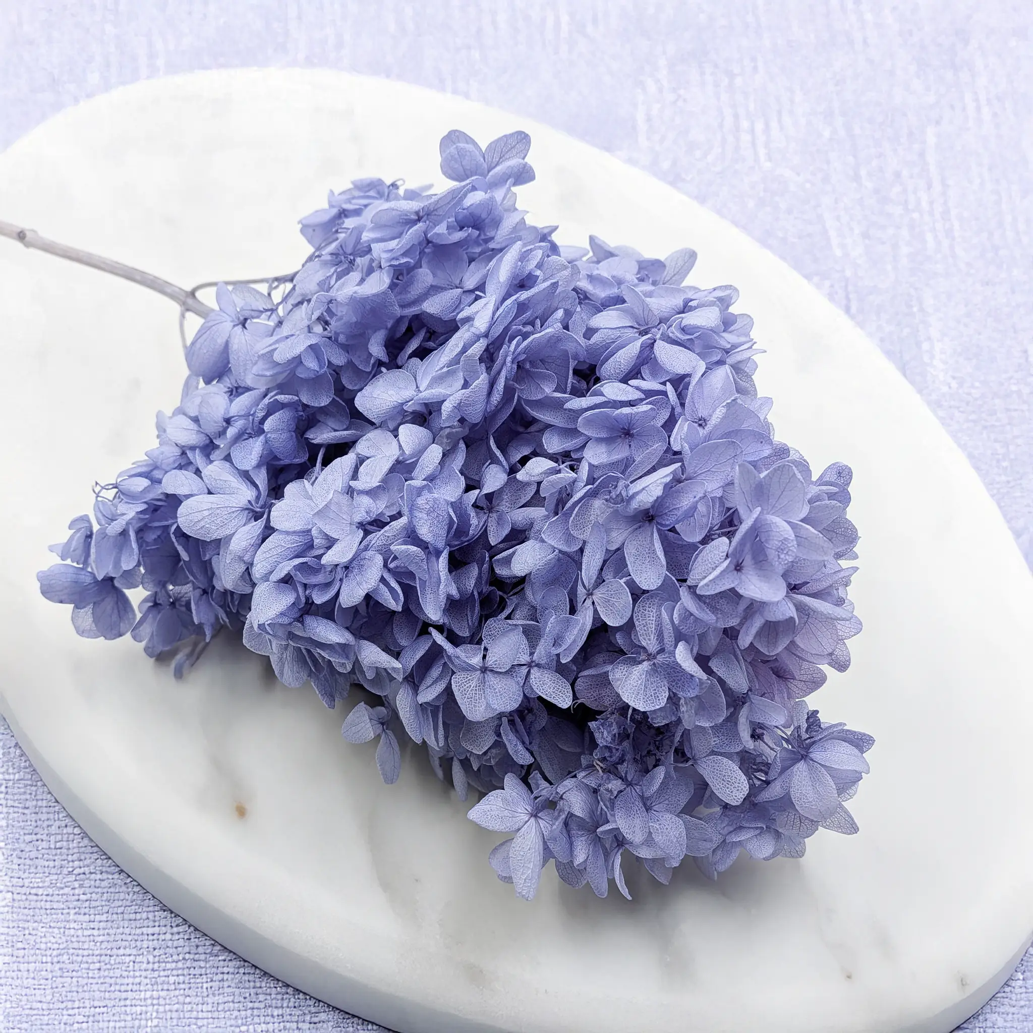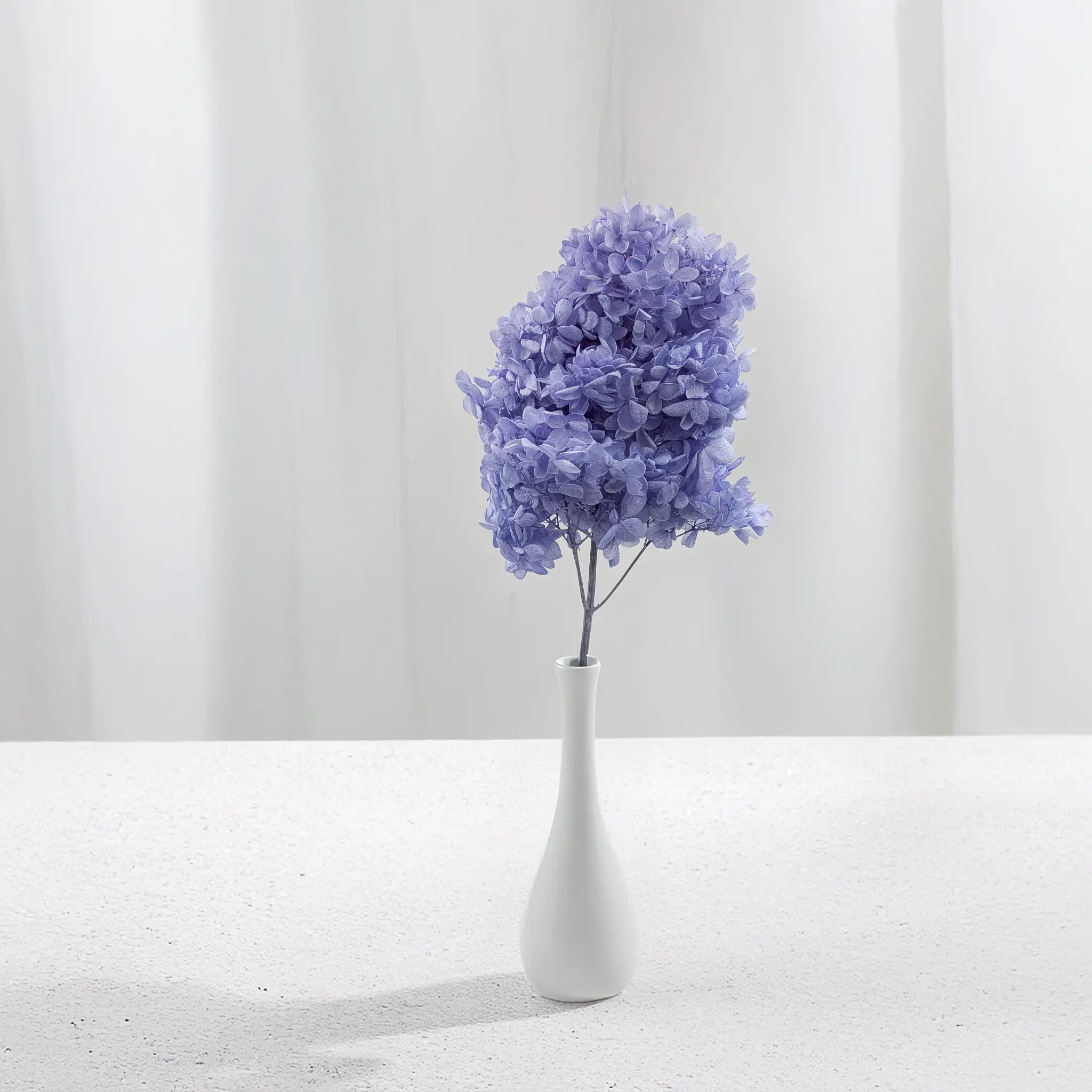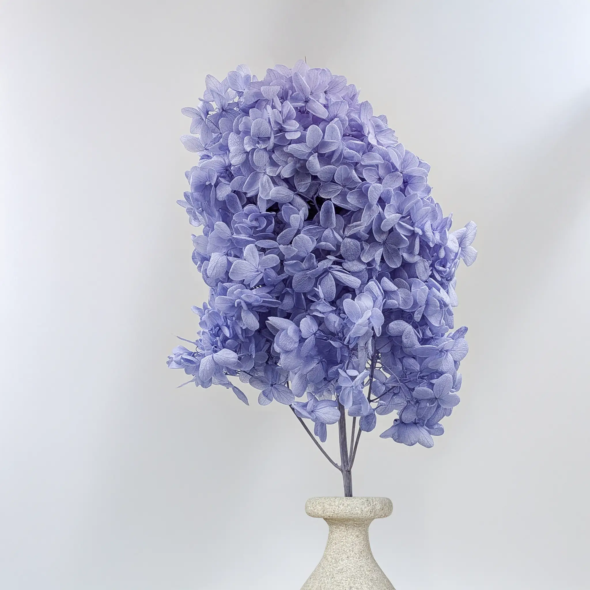 Hortensja stabilizowana Royal – Hydrangea Conical w kolorze lawendowym zachwyca delikatnym, pastelowym odcieniem inspirowanym kwiatami lawendy. Ten elegancki kolor łączy w sobie nutę chłodnego błękitu i subtelnego fioletu, dzięki czemu kompozycje florystyczne zyskują romantyczny i bardzo stylowy charakter.