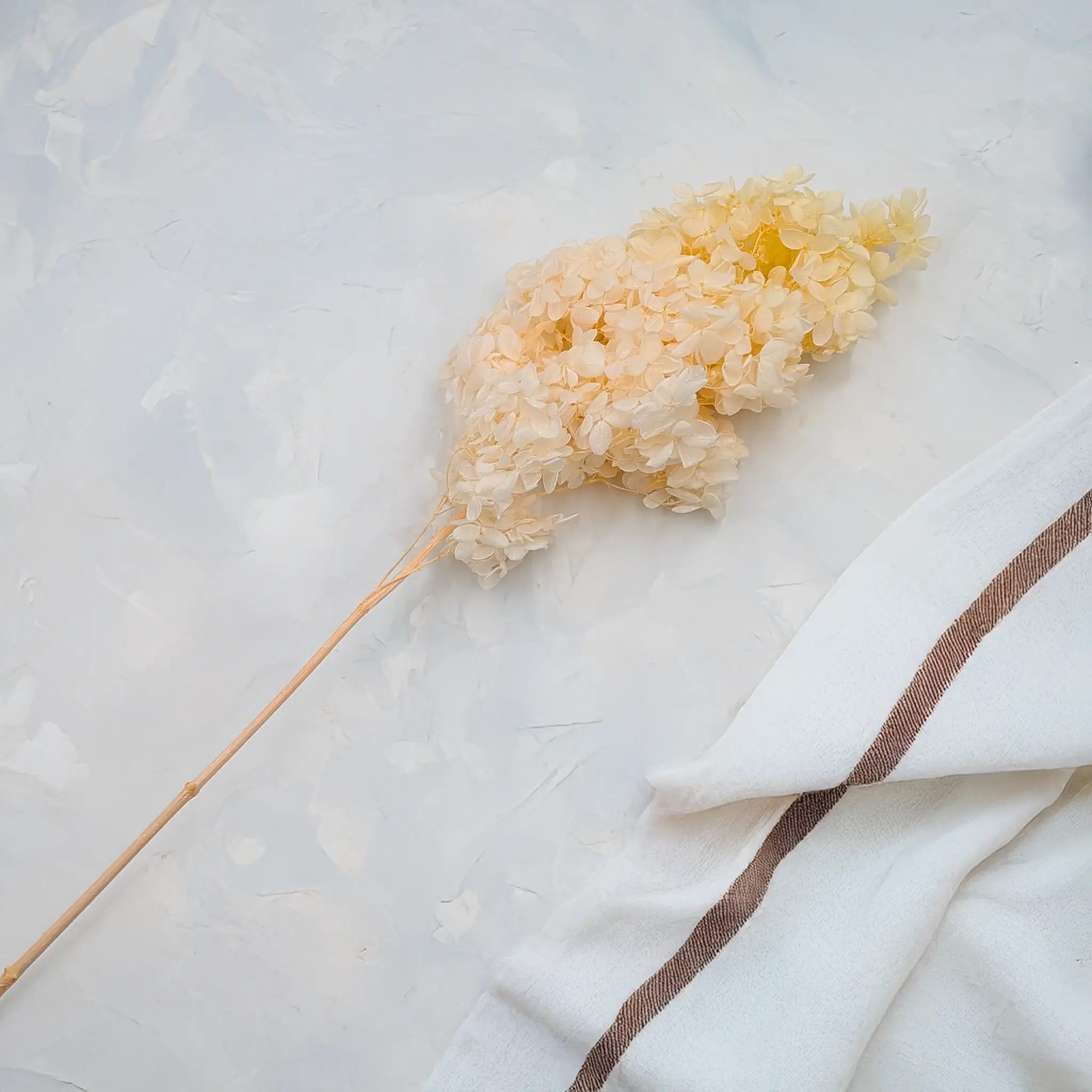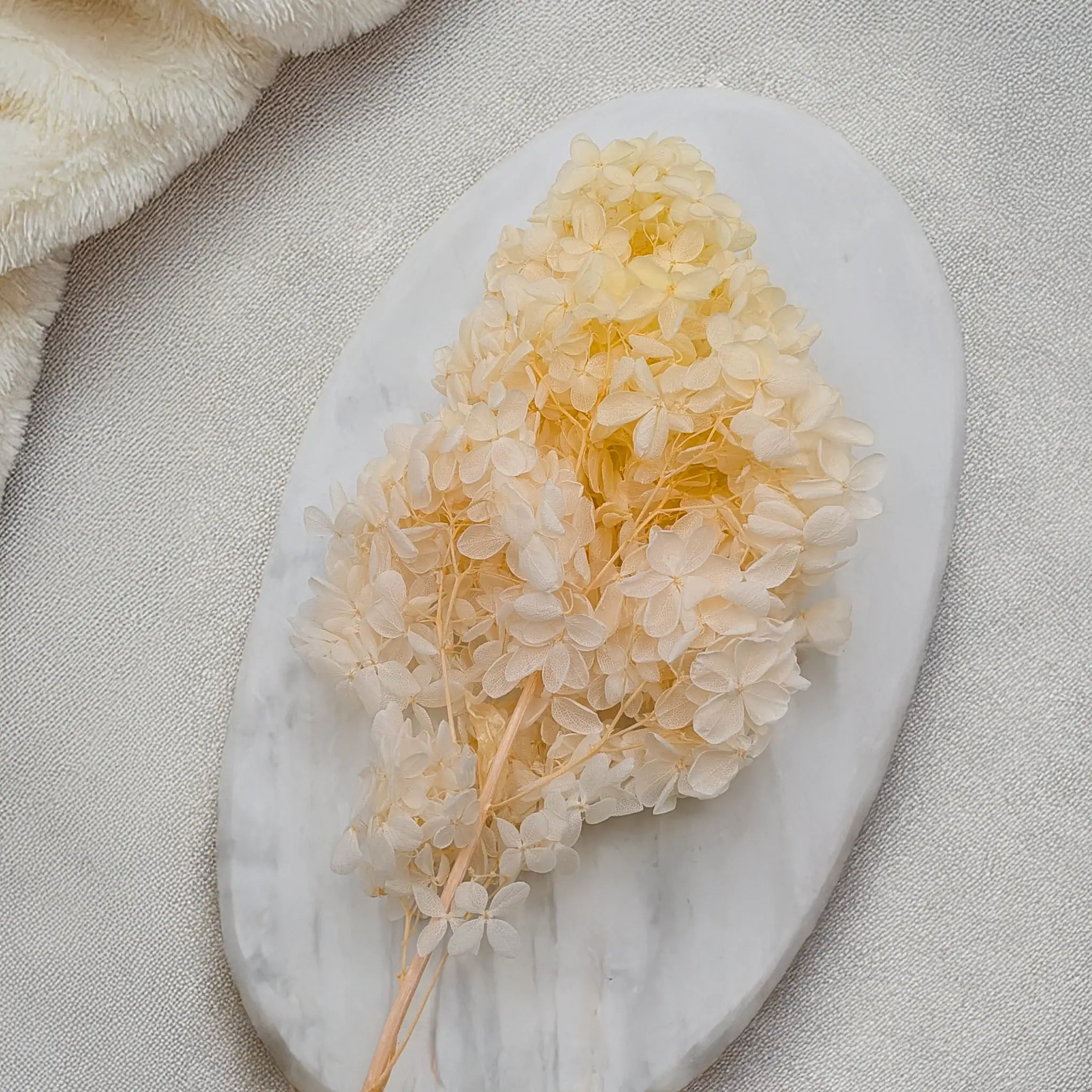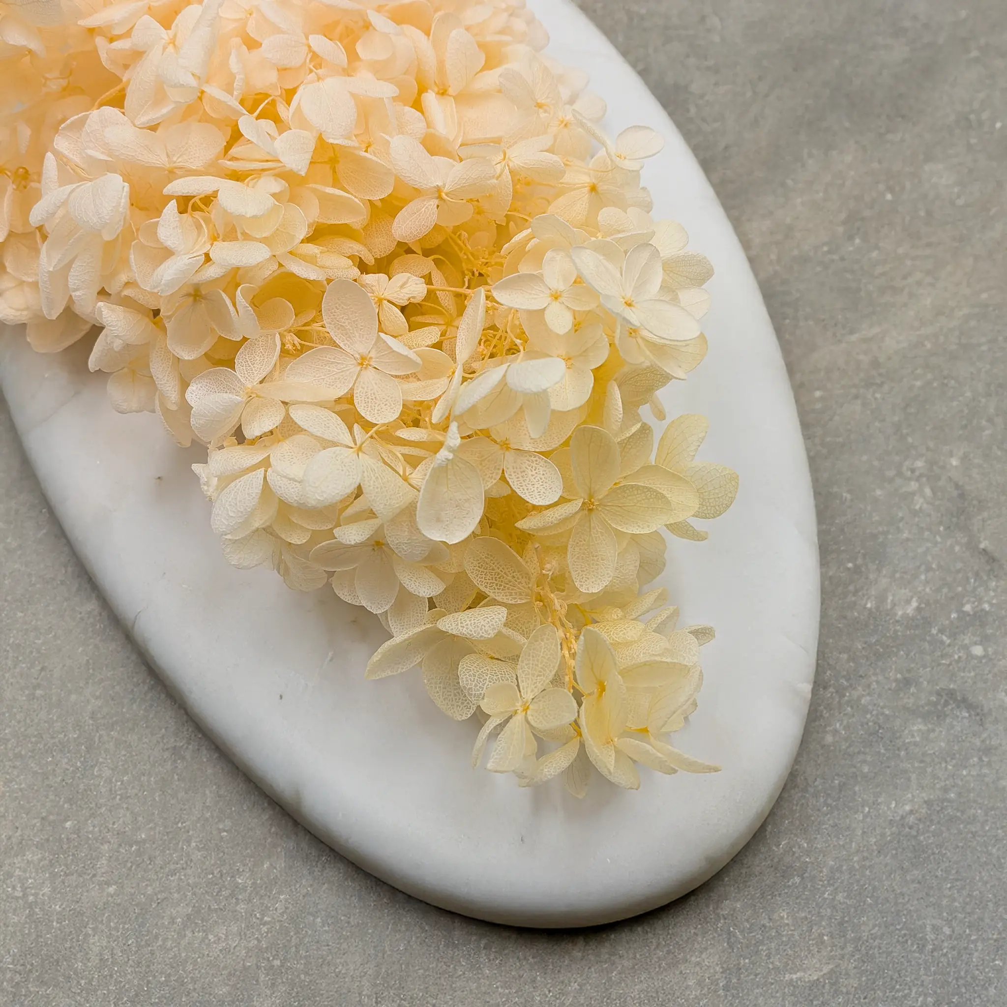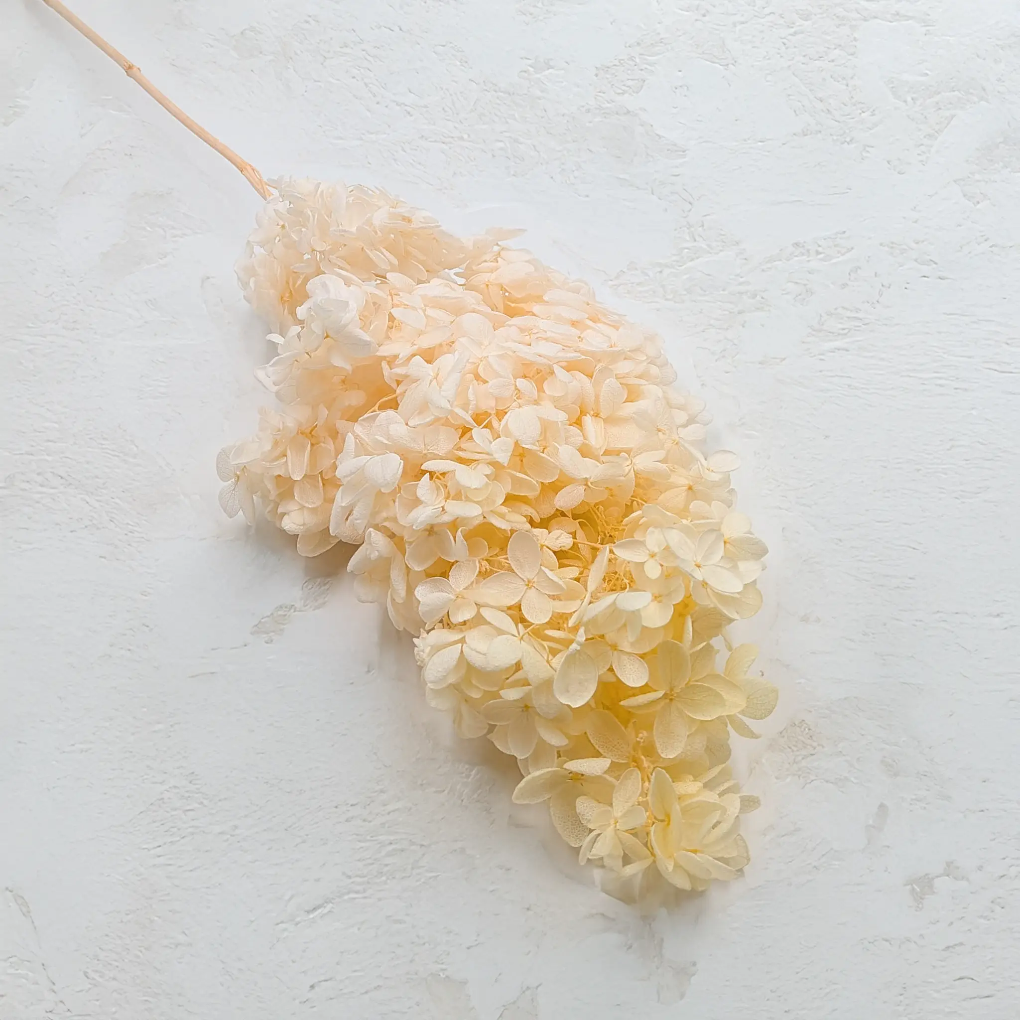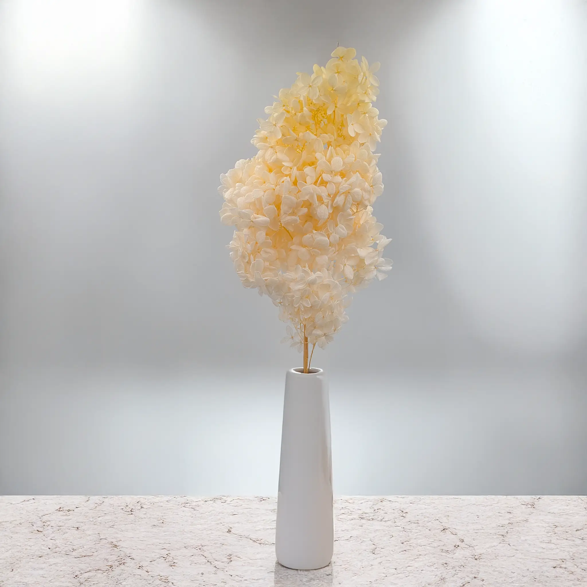 Hortensja stabilizowana Royal – Hydrangea Conical w kolorze żółtym przyciąga uwagę ciepłym, słonecznym odcieniem, który wprowadza do aranżacji pozytywną energię i naturalną świeżość. Delikatny żółty kolor nadaje kompozycjom lekkości, dzięki czemu kwiat doskonale sprawdza się zarówno w romantycznych bukietach, jak i nowoczesnych dekoracjach wnętrz.