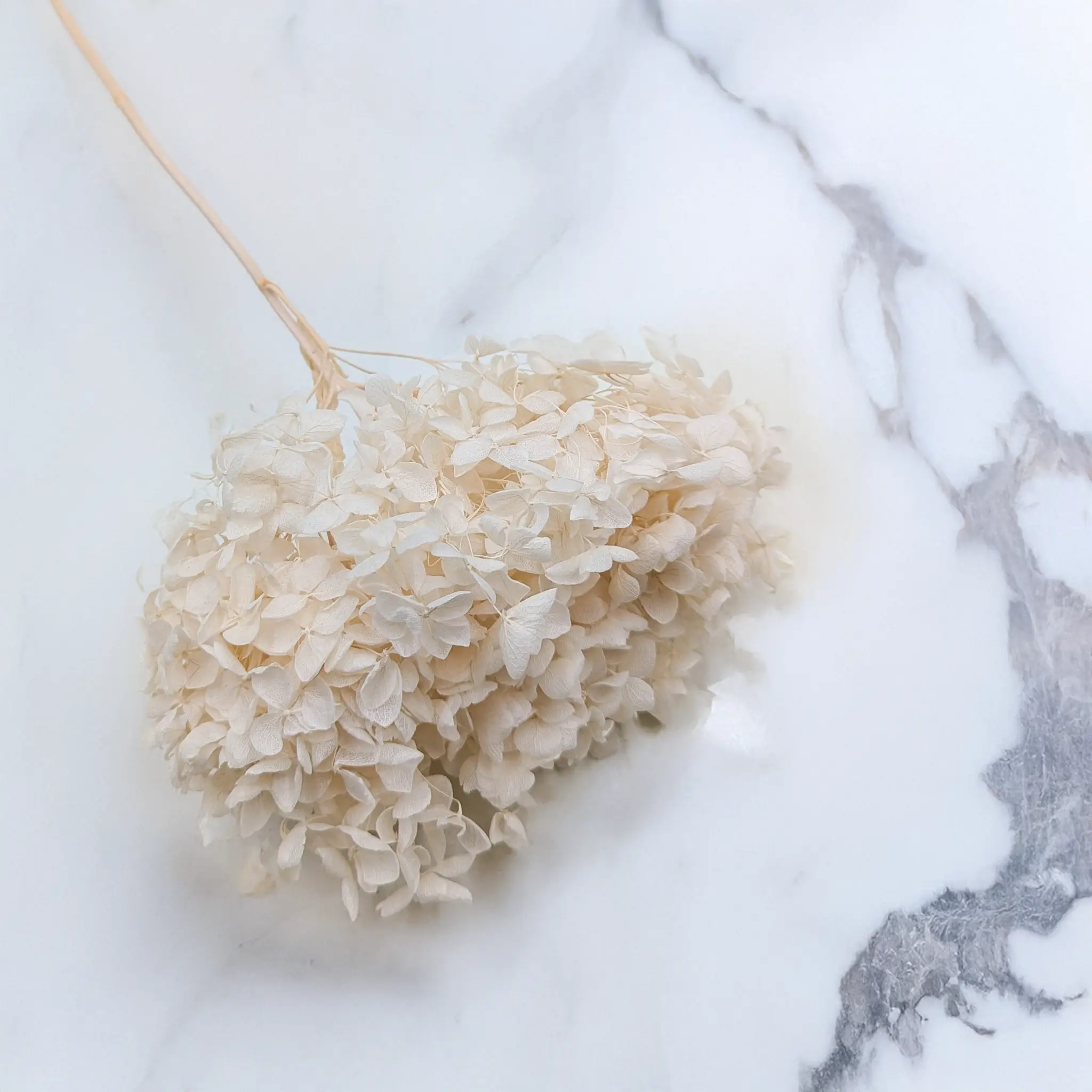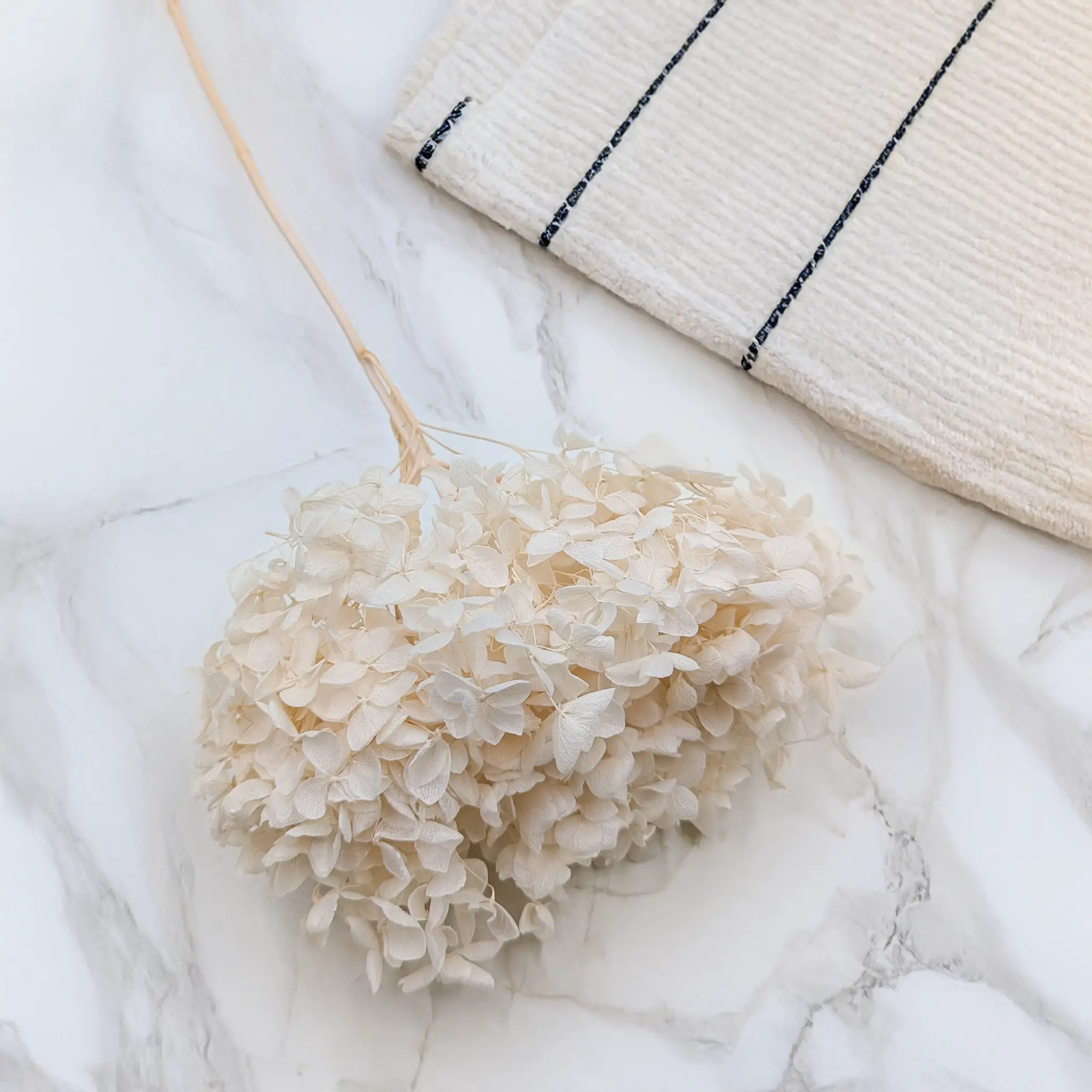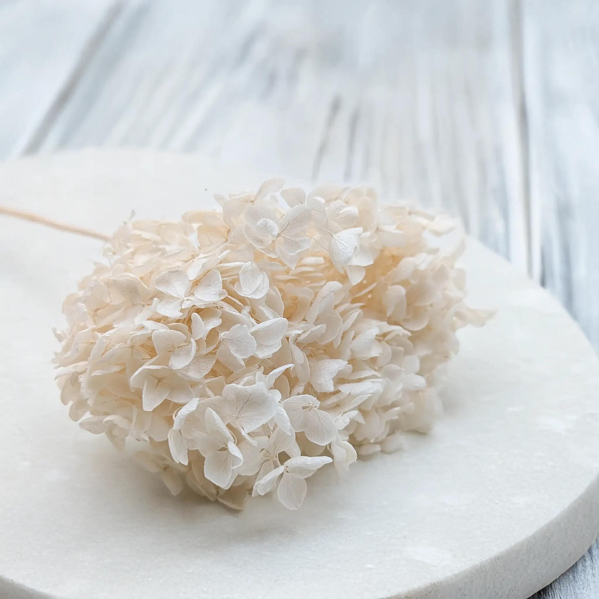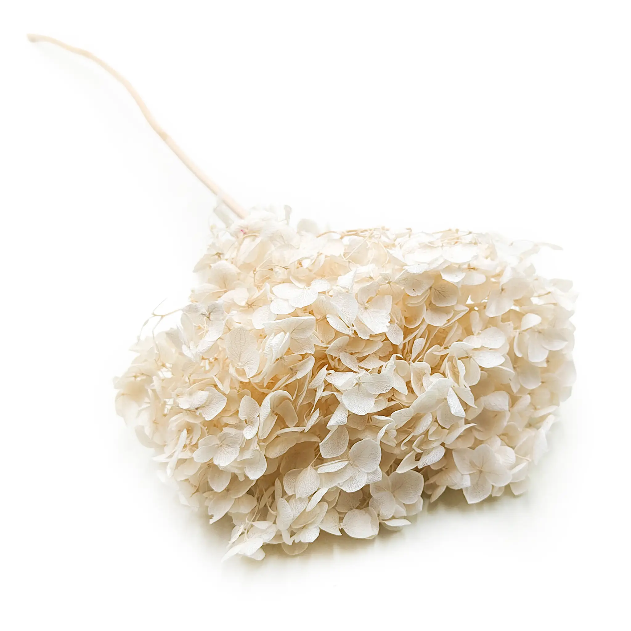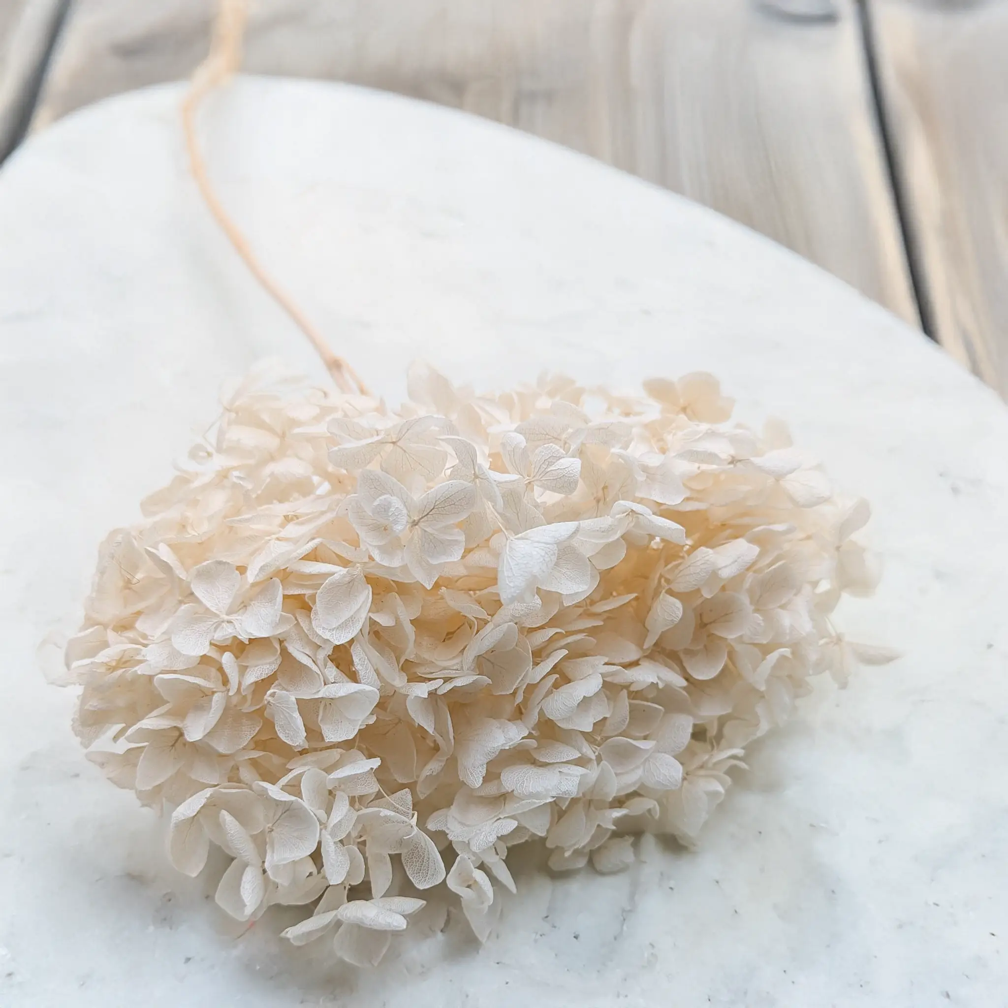Biała hortensja suszona (Hydrangea Cabeza) to ponadczasowy wybór do eleganckich, delikatnych kompozycji. Jej subtelna barwa wnosi do wnętrz harmonię, spokój i lekkość, czyniąc ją idealną do dekoracji ślubnych, flowerboxów, wianków i ozdób pod kopułą. Ze względu na suszenie, kwiaty mają naturalny wygląd i wyjątkową trwałość.