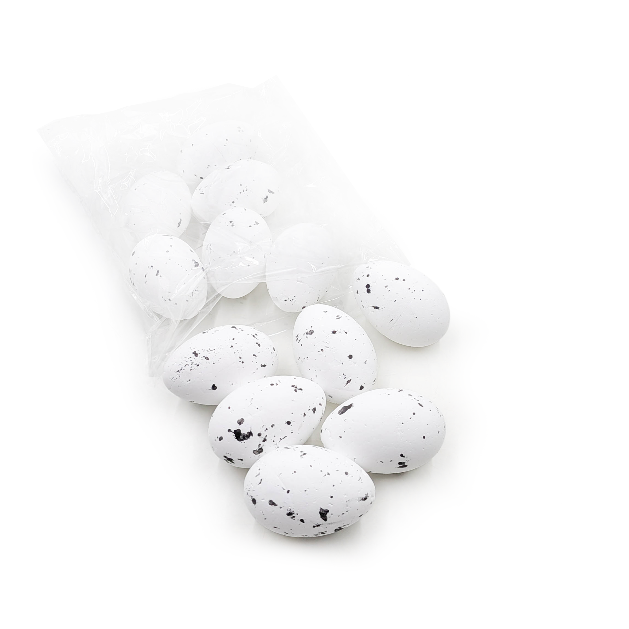 Jajko Przepiórcze Styropianowe 4×6 cm – Białe – Zestaw 12 Sztuk