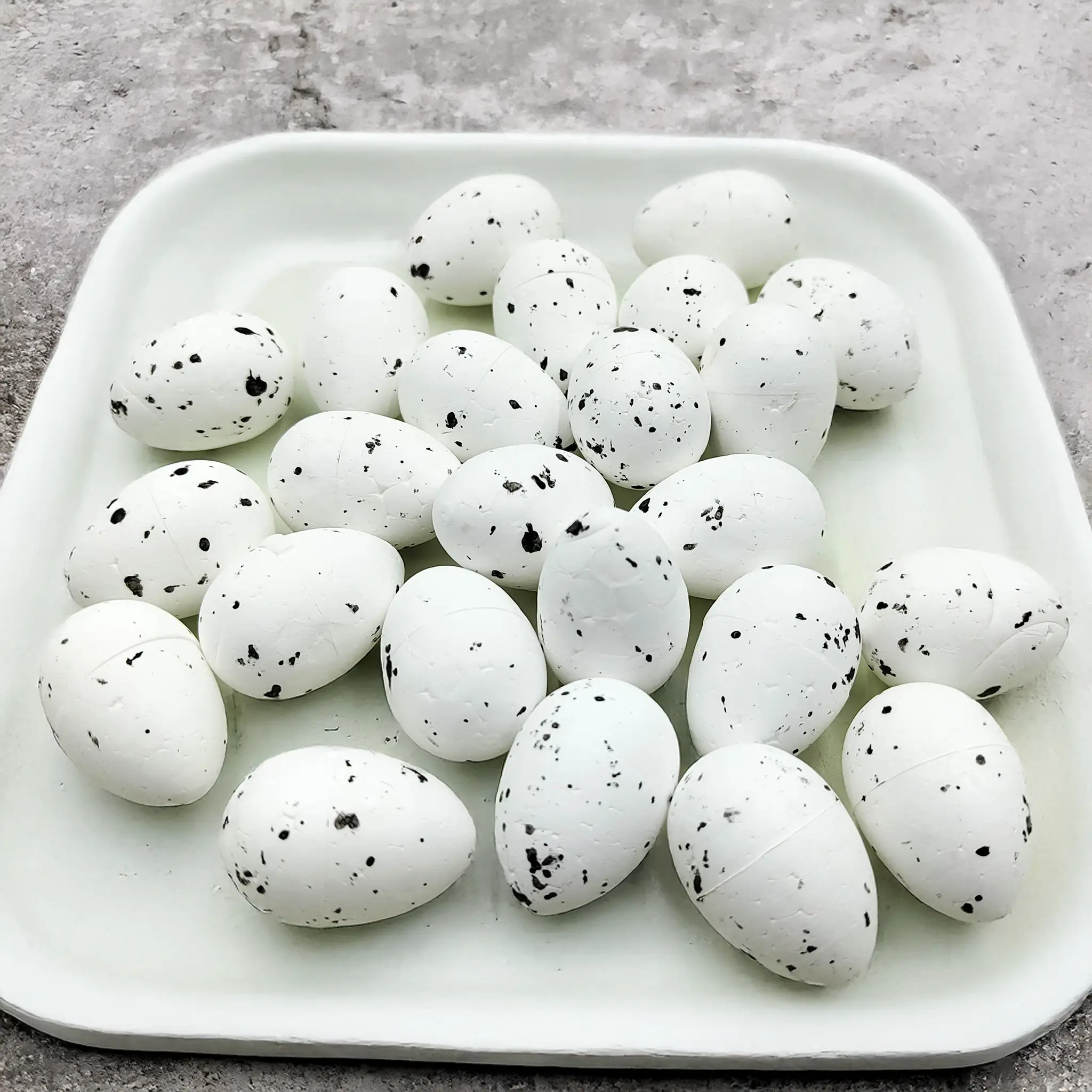 Jajka Przepiórcze Dekoracyjne 25×35 mm – Styropian – Zestaw 24 sztuk