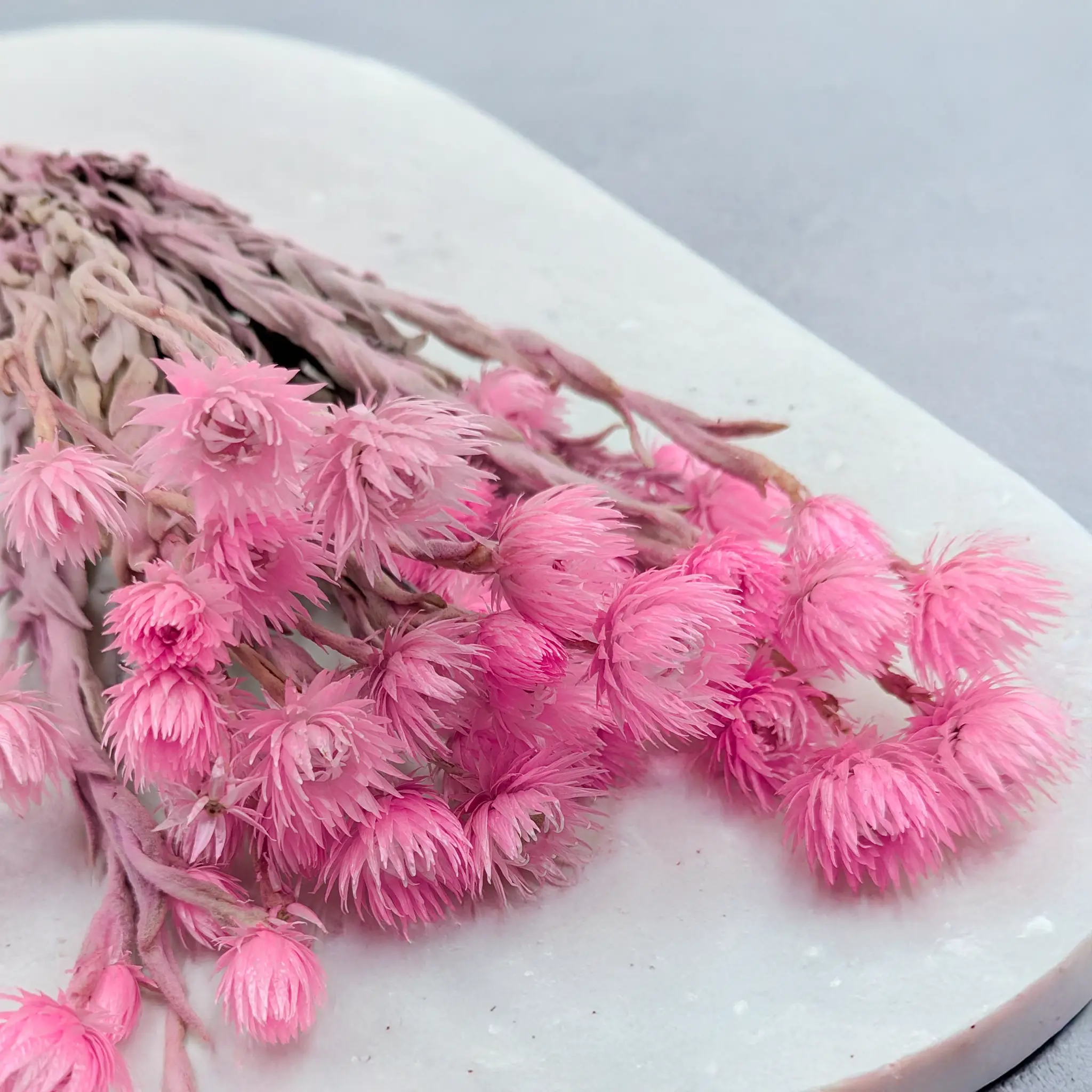 Kaaps Flower w odcieniu jasnego różu to niezwykle subtelna propozycja wśród suszonych egzotycznych kwiatów. Jego pastelowe płatki o jedwabistym, papierowym wykończeniu sprawiają, że doskonale nadaje się do kompozycji, które mają podkreślać delikatność i elegancję. To kwiat, który nie przytłacza, ale tworzy harmonijną całość w każdej aranżacji.