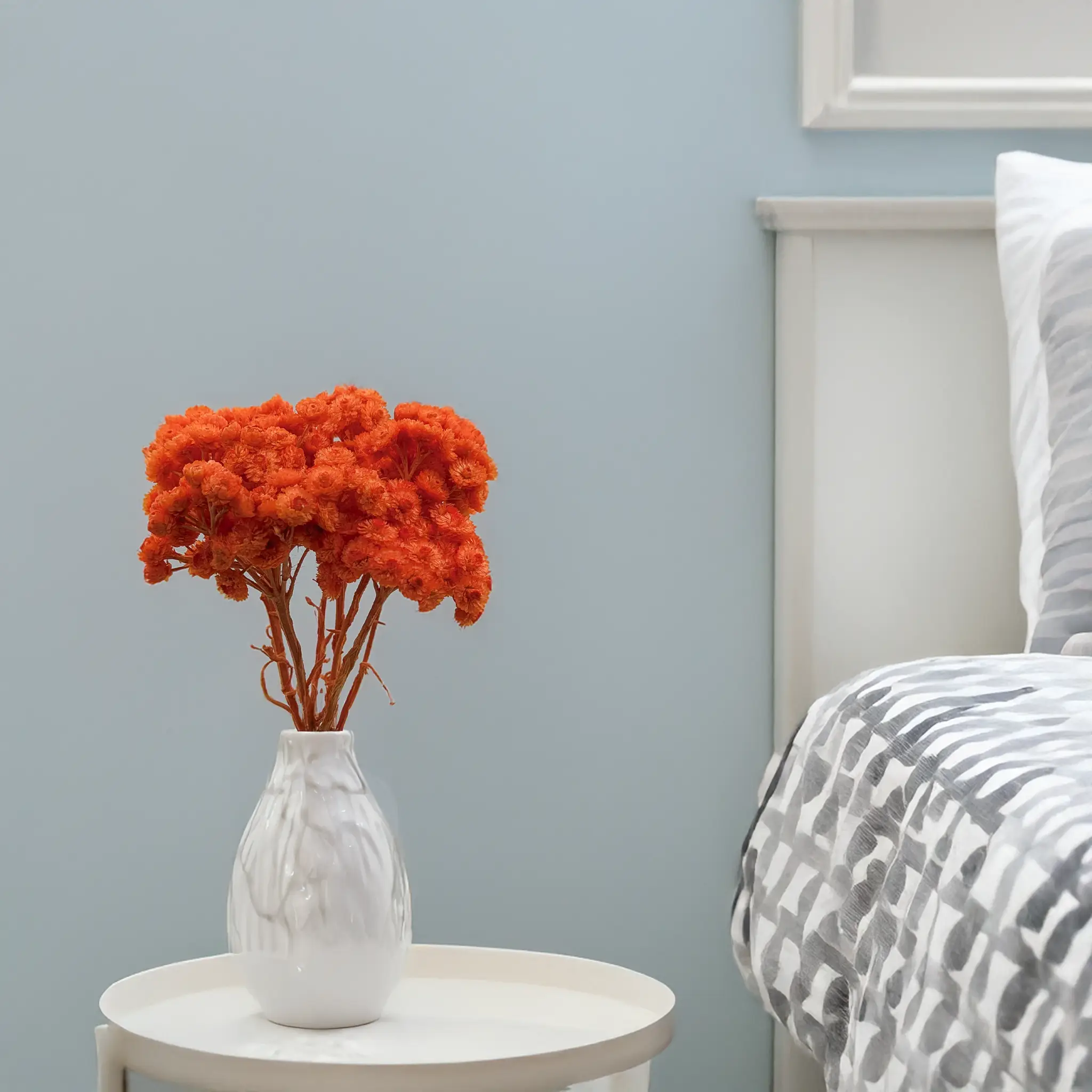 • Wnętrza w stylu boho, rustykalnym i nowoczesnym: Pomarańczowa kocanka świetnie prezentuje się w wazonach, na półkach i jako część większych kompozycji florystycznych.