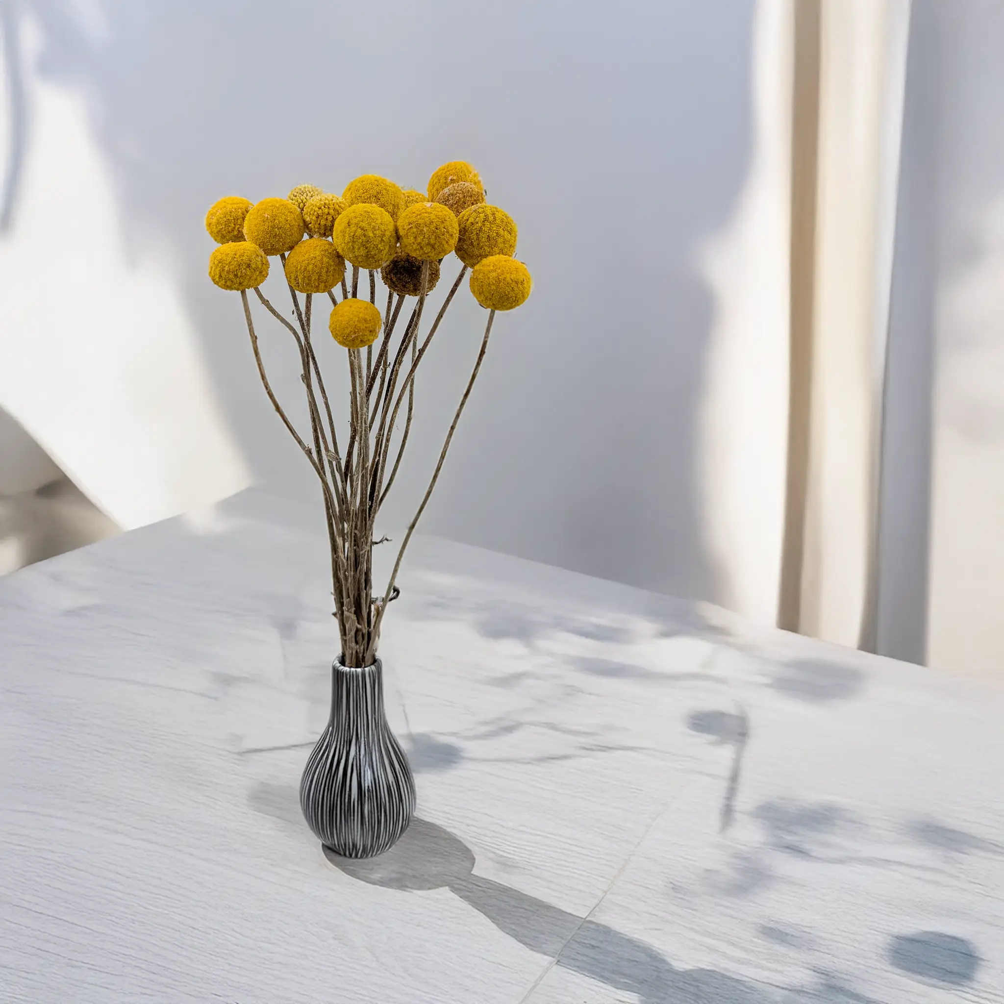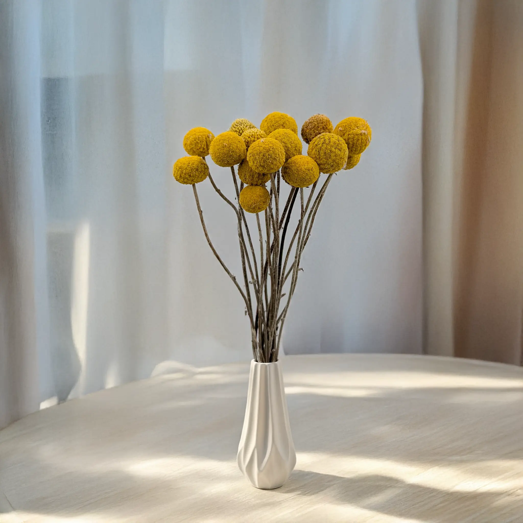 • Styl i żywiołowość: Suszona kraspedia to doskonały wybór dla miłośników kolorowych i oryginalnych aranżacji. Jej żółte kwiatostany dodają wnętrzom świeżości i radości, tworząc atmosferę pełną pozytywnej energii. Jest to idealny dodatek do różnych stylów, od nowoczesnych po boho chic.