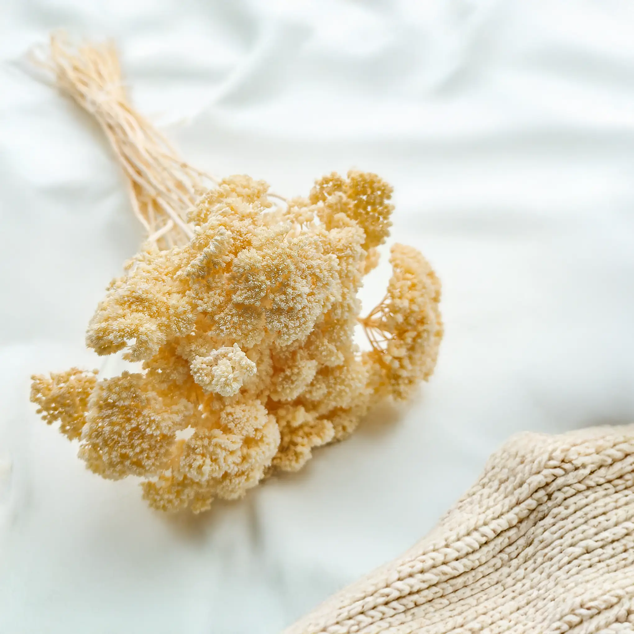 Bielony krwawnik (Achillea) to ponadczasowy dodatek florystyczny, który wnosi do aranżacji subtelność, światło i lekkość. Jego zbite, kremowo-białe kwiatostany doskonale pasują do wystroju w stylu ślubnym, rustykalnym, boho czy klasycznym.