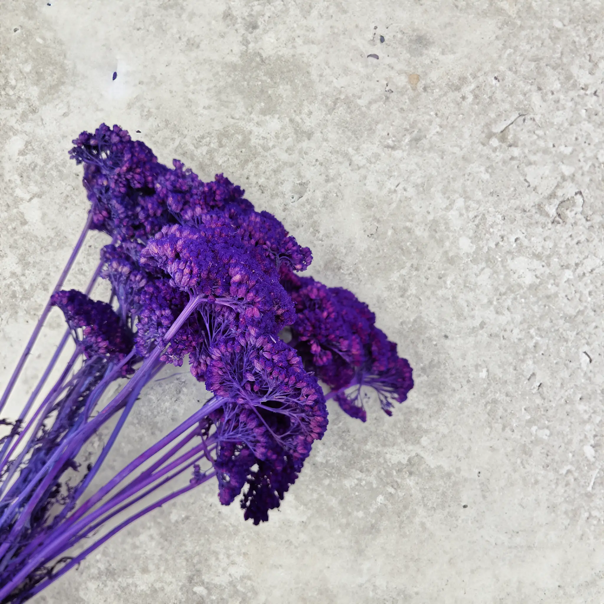 Odkryj wyjątkowe piękno suszonego krwawnika (Achillea) w intensywnym odcieniu fioletu – koloru szlachetnego, kreatywnego i wyrafinowanego. Ten naturalny akcent florystyczny dodaje każdej aranżacji głębi, luksusu i niepowtarzalnego charakteru.
