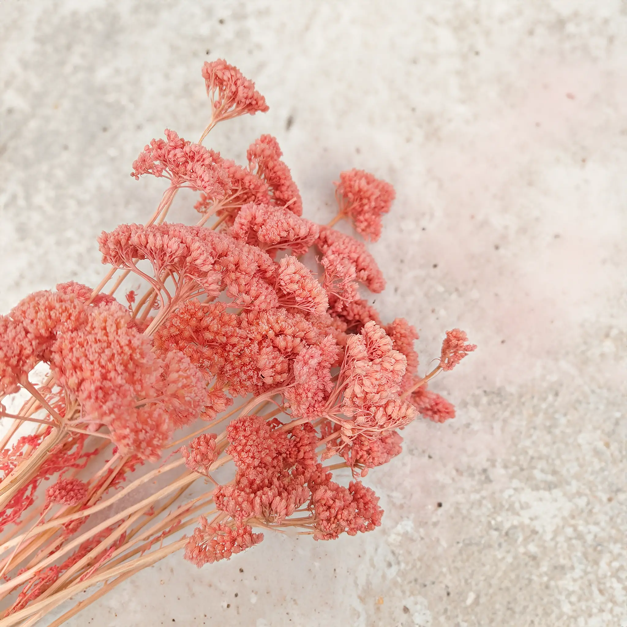 Odkryj subtelne piękno suszonego krwawnika (Achillea) w romantycznym odcieniu różu. Jego drobne, zbite kwiatostany nadają aranżacjom naturalnej lekkości, delikatności i wdzięku.