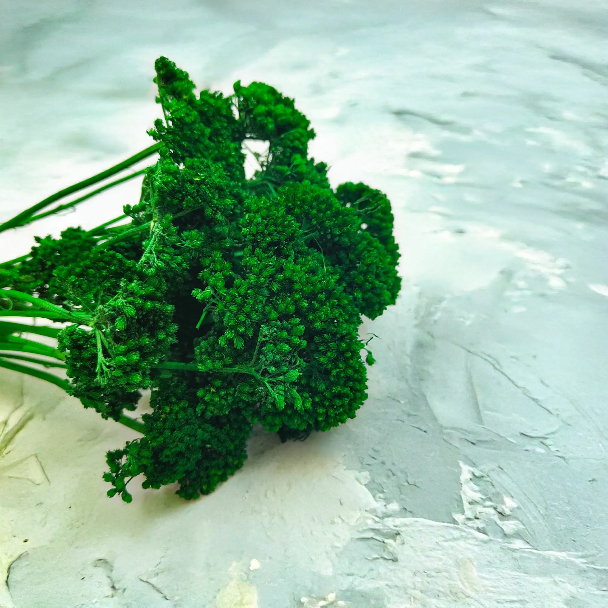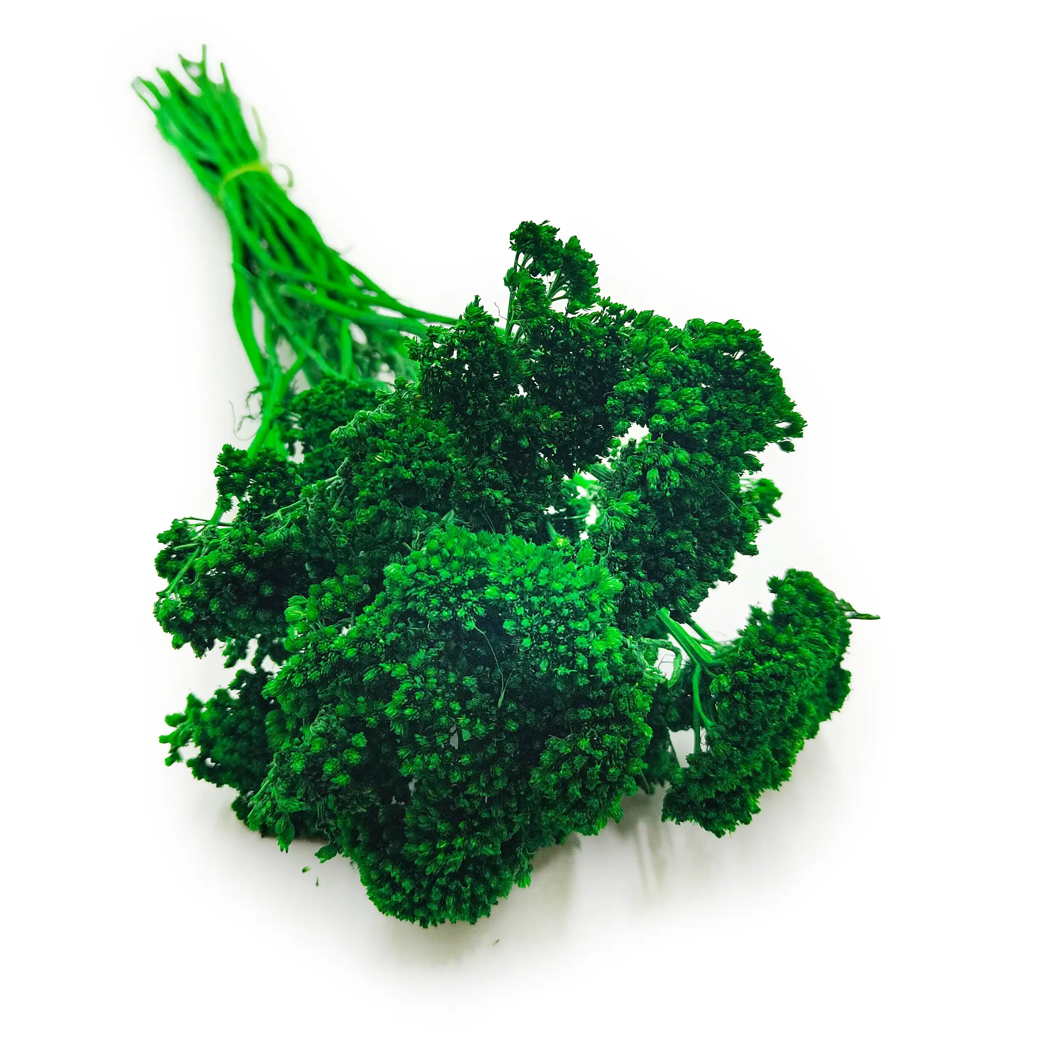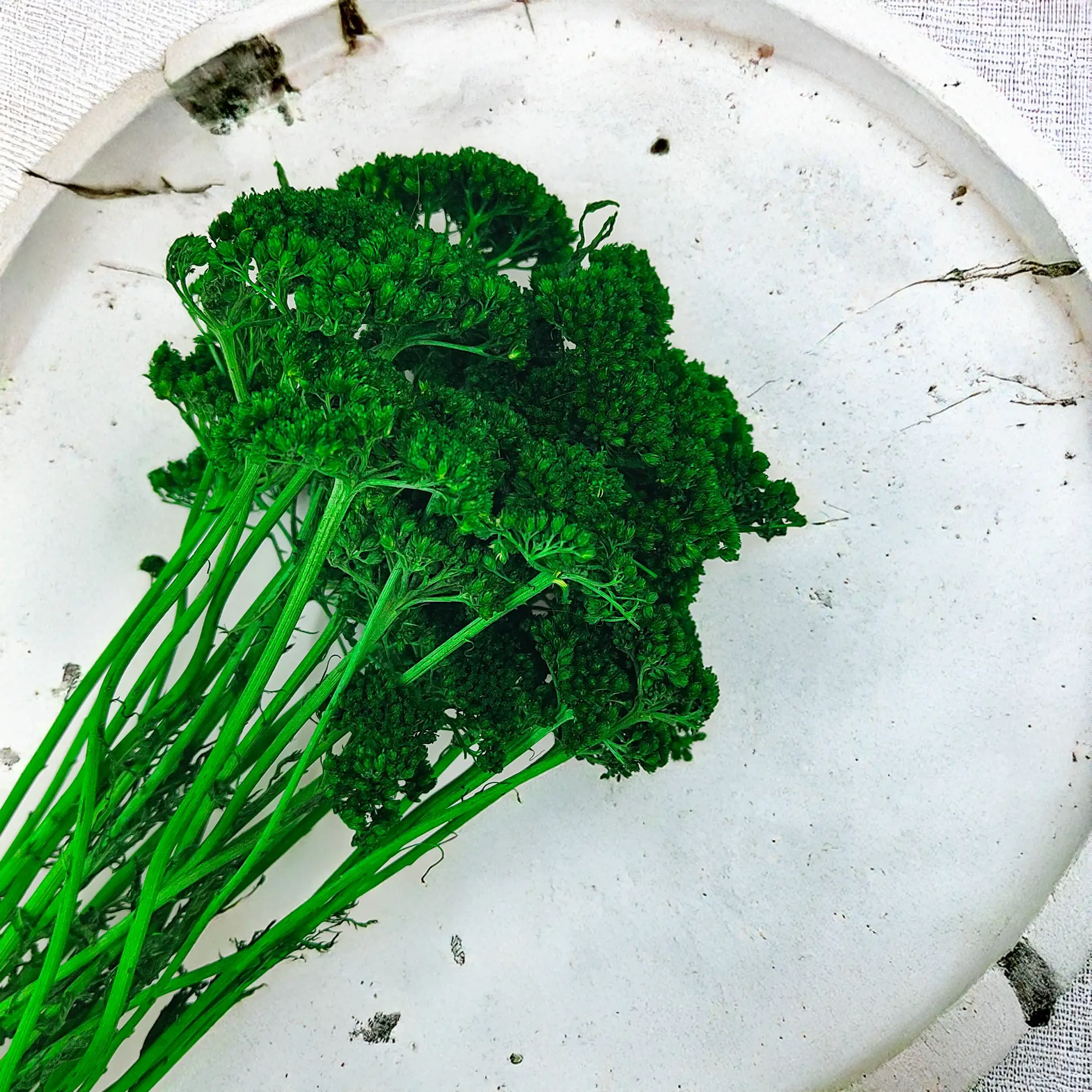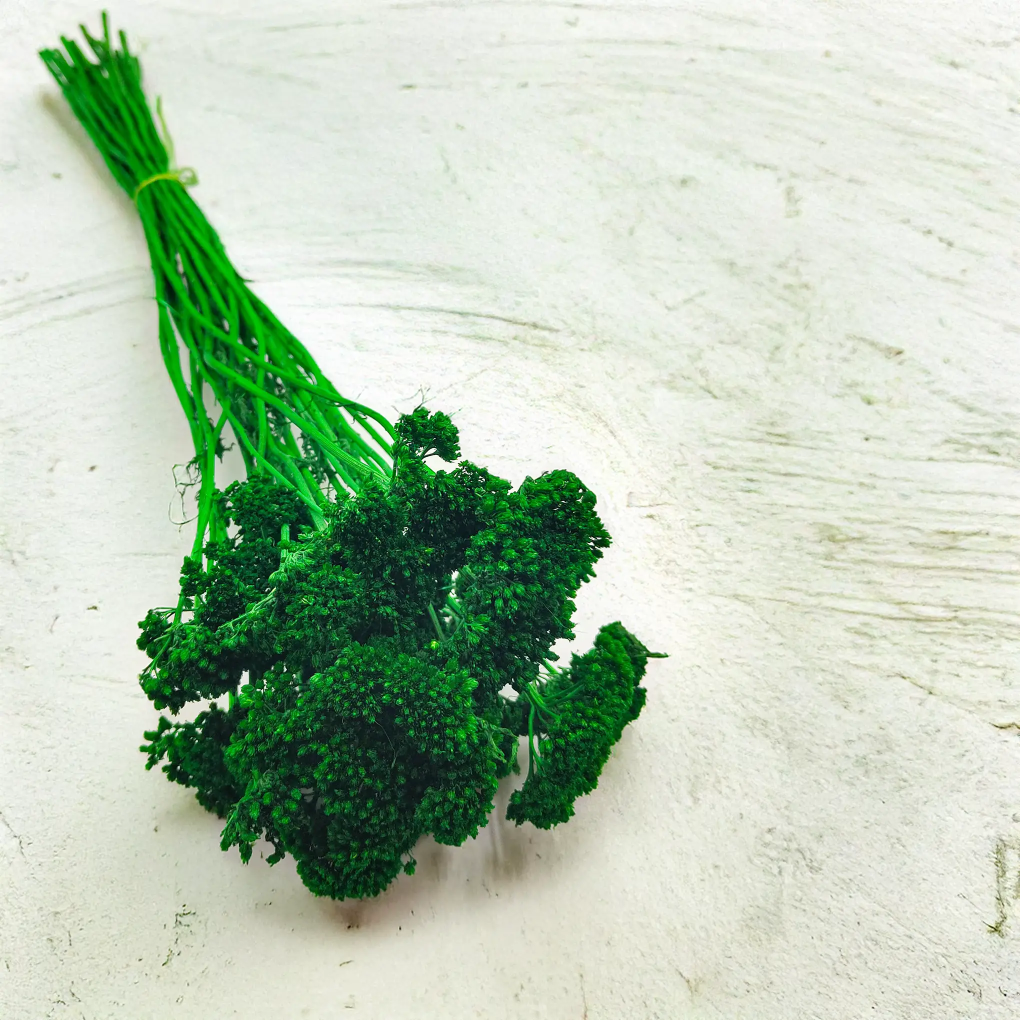 Suszony krwawnik (Achillea) w intensywnie zielonym kolorze to uniwersalny i efektowny dodatek do dekoracji w stylu naturalnym, boho i rustykalnym. Jego zbite, puszyste kwiatostany i eleganckie zielone łodygi wnoszą świeżość i strukturę do każdej kompozycji.