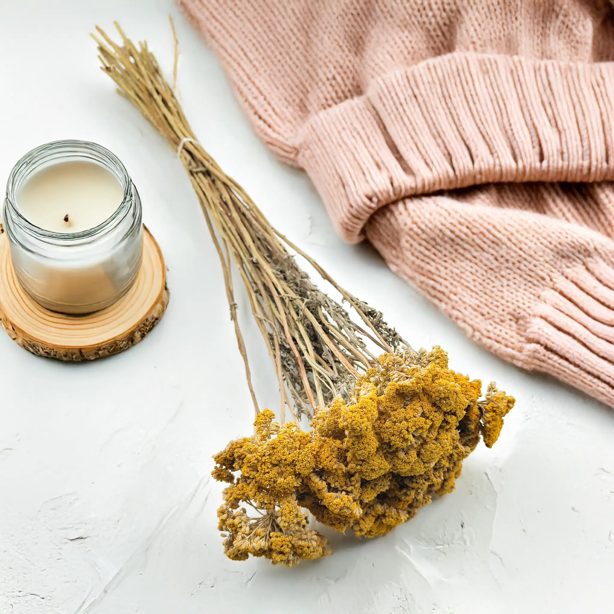 Postaw na naturalne piękno i ciepły kolor – wybierz żółty krwawnik suszony i dodaj promienny akcent do każdej kompozycji florystycznej lub wnętrza.