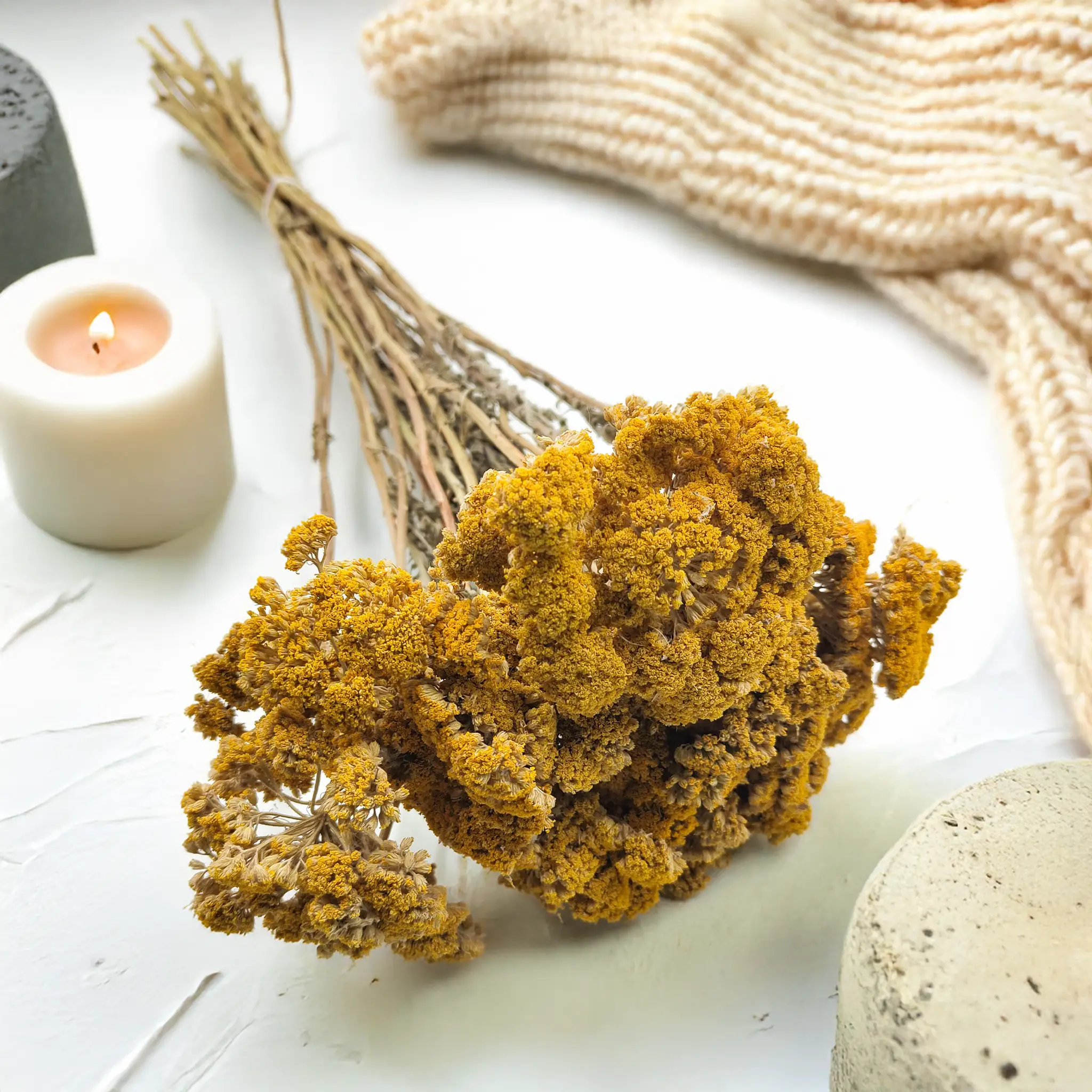 Krwawnik Suszony – (Achillea) – Żółty | Dekoracyjny Kwiat do Wnętrz i Bukietów