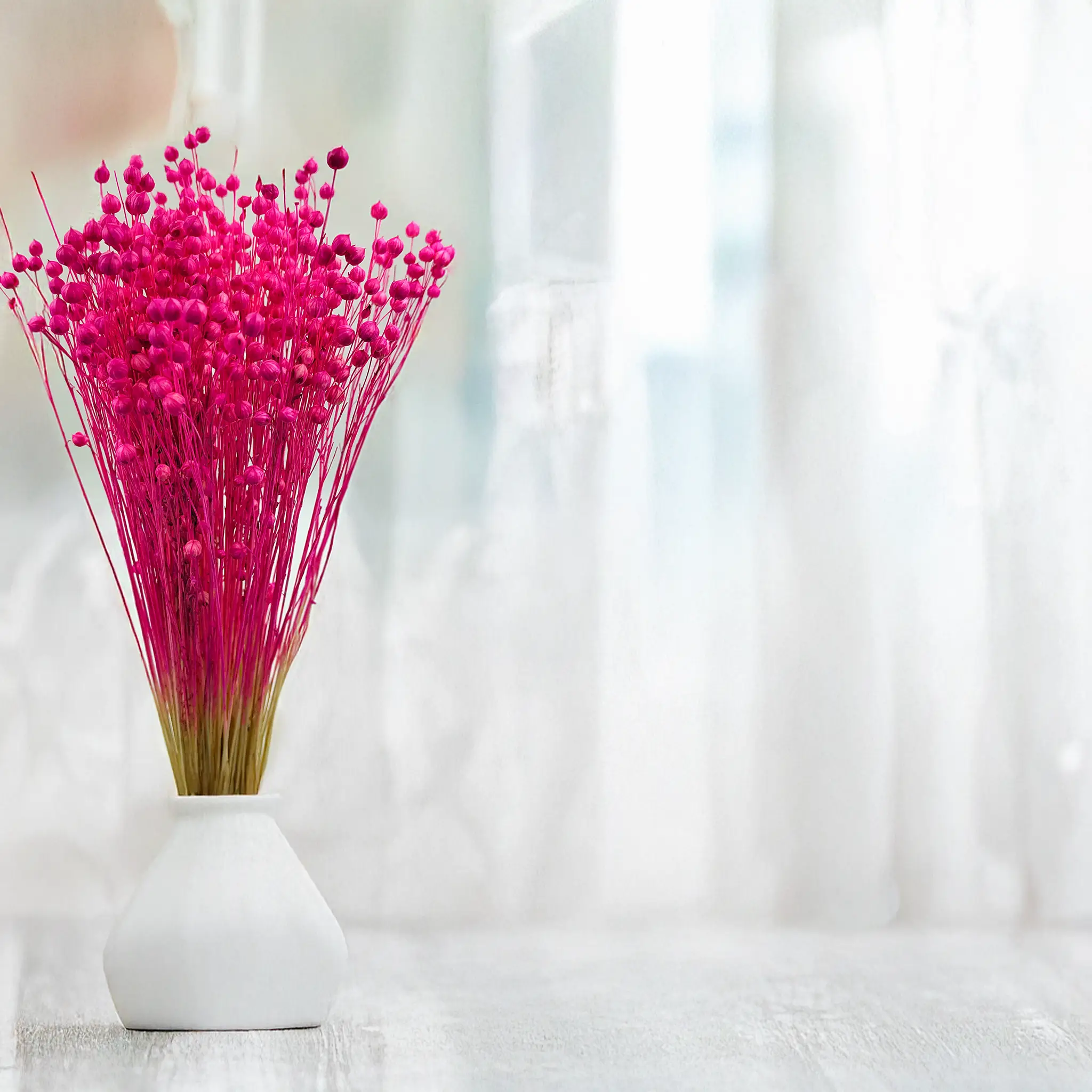 Produkt nie wymaga podlewania, a intensywny kolor utrzymuje się przez wiele miesięcy. Suszony len jest również przyjazny środowisku – suszony bez chemii, stanowi świadomy wybór dekoracyjny.