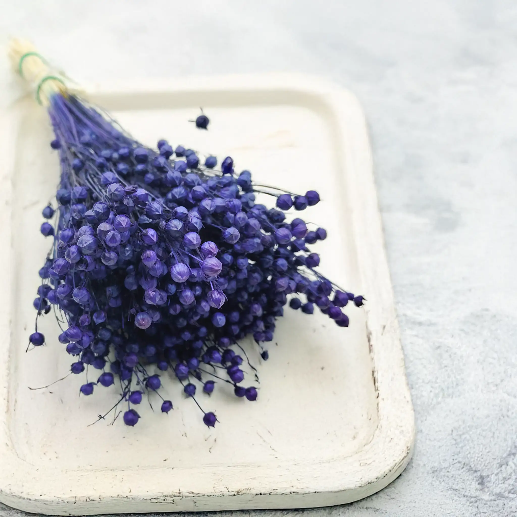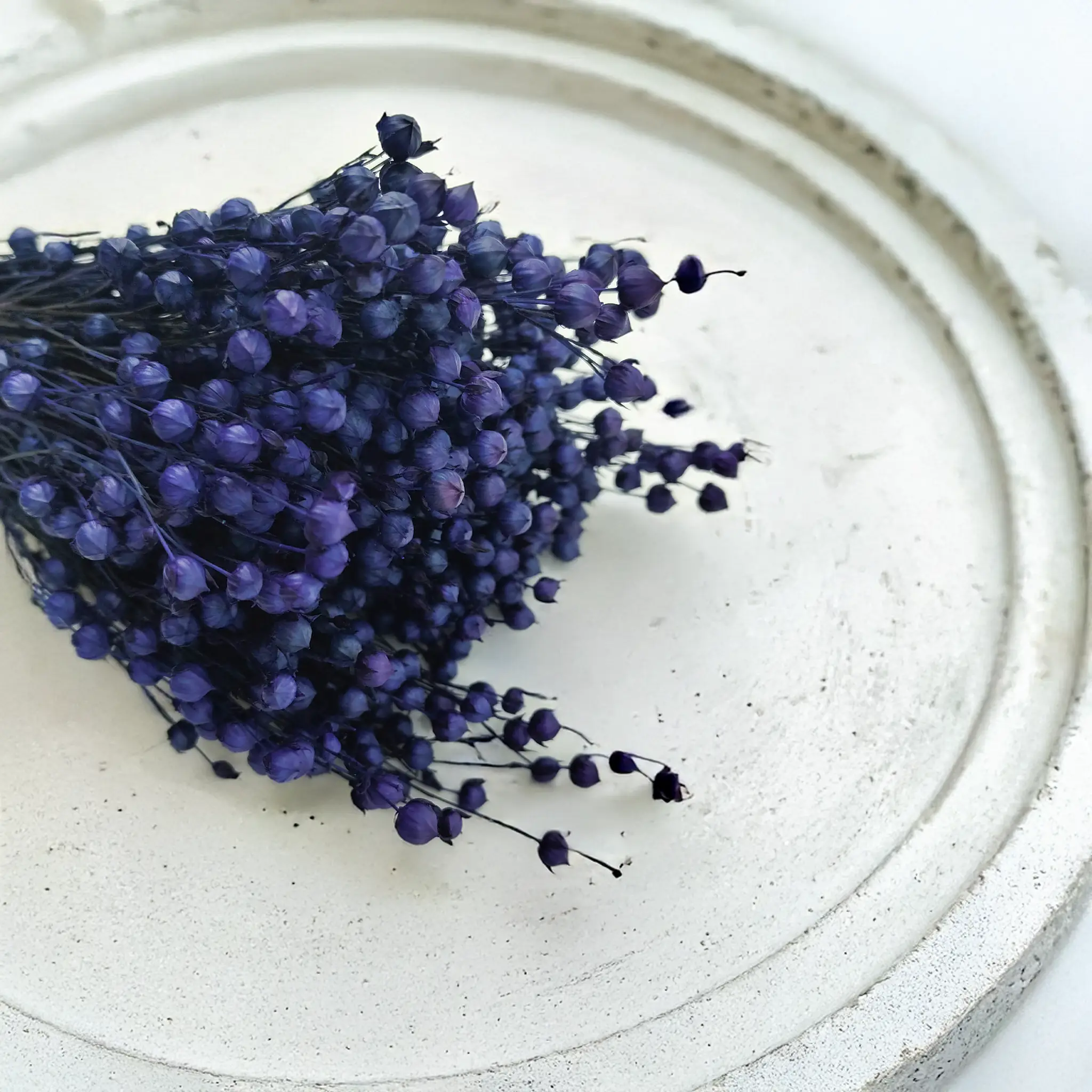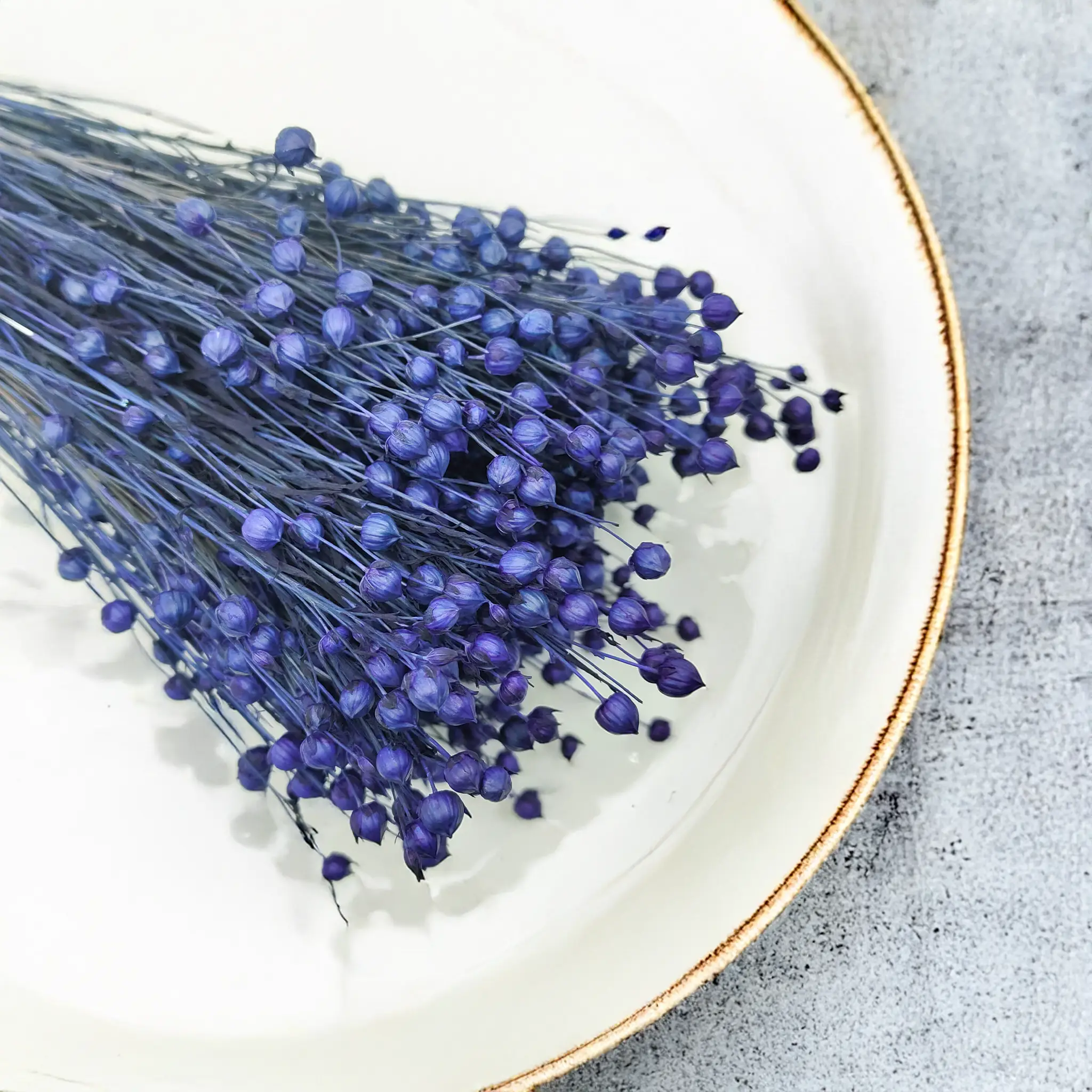 Każda gałązka ozdobiona jest drobnymi kulkami nasion, co dodaje strukturę i charakter. Dzięki swojej trwałości i formie, suszony len granatowy pozostaje piękny przez długi czas bez potrzeby pielęgnacji.