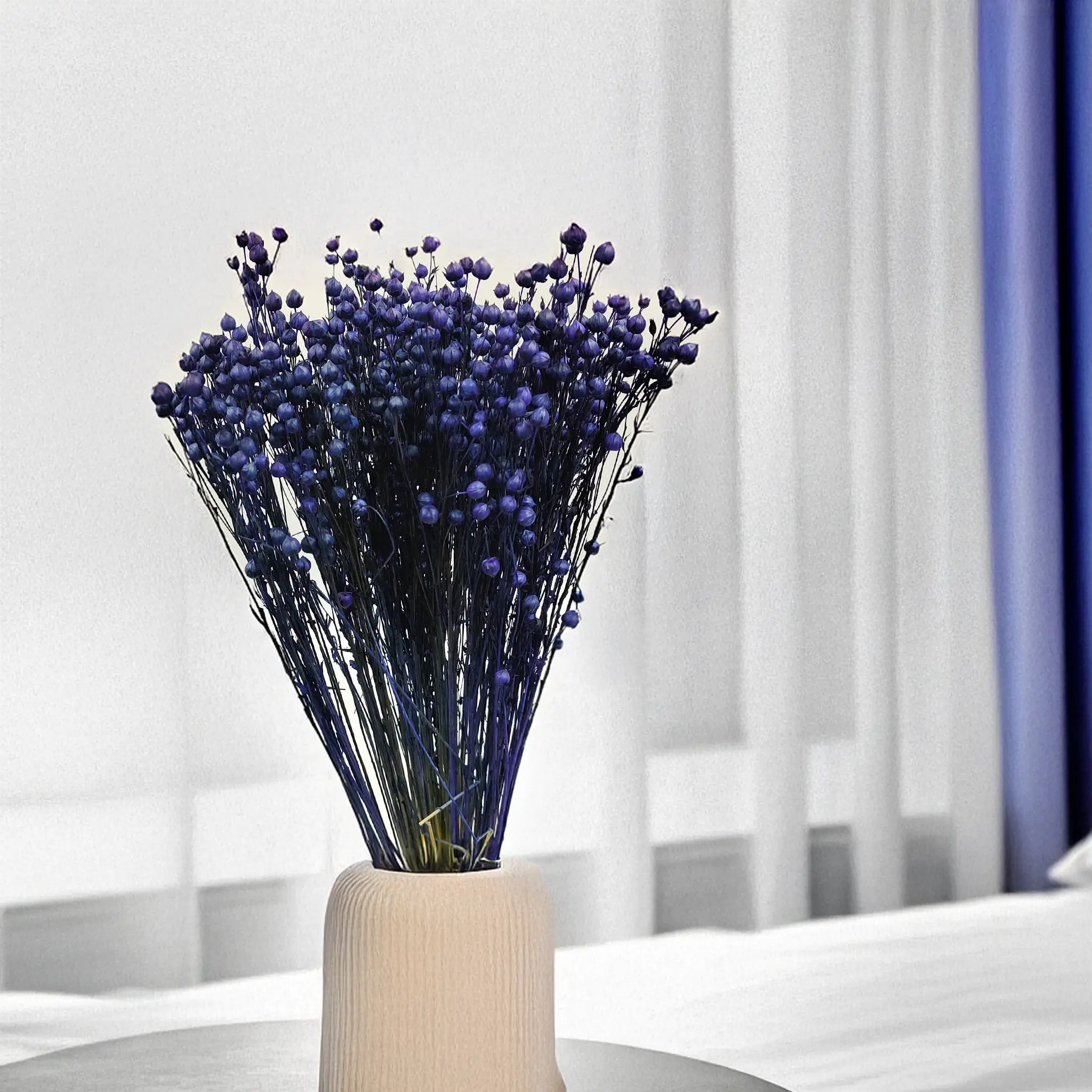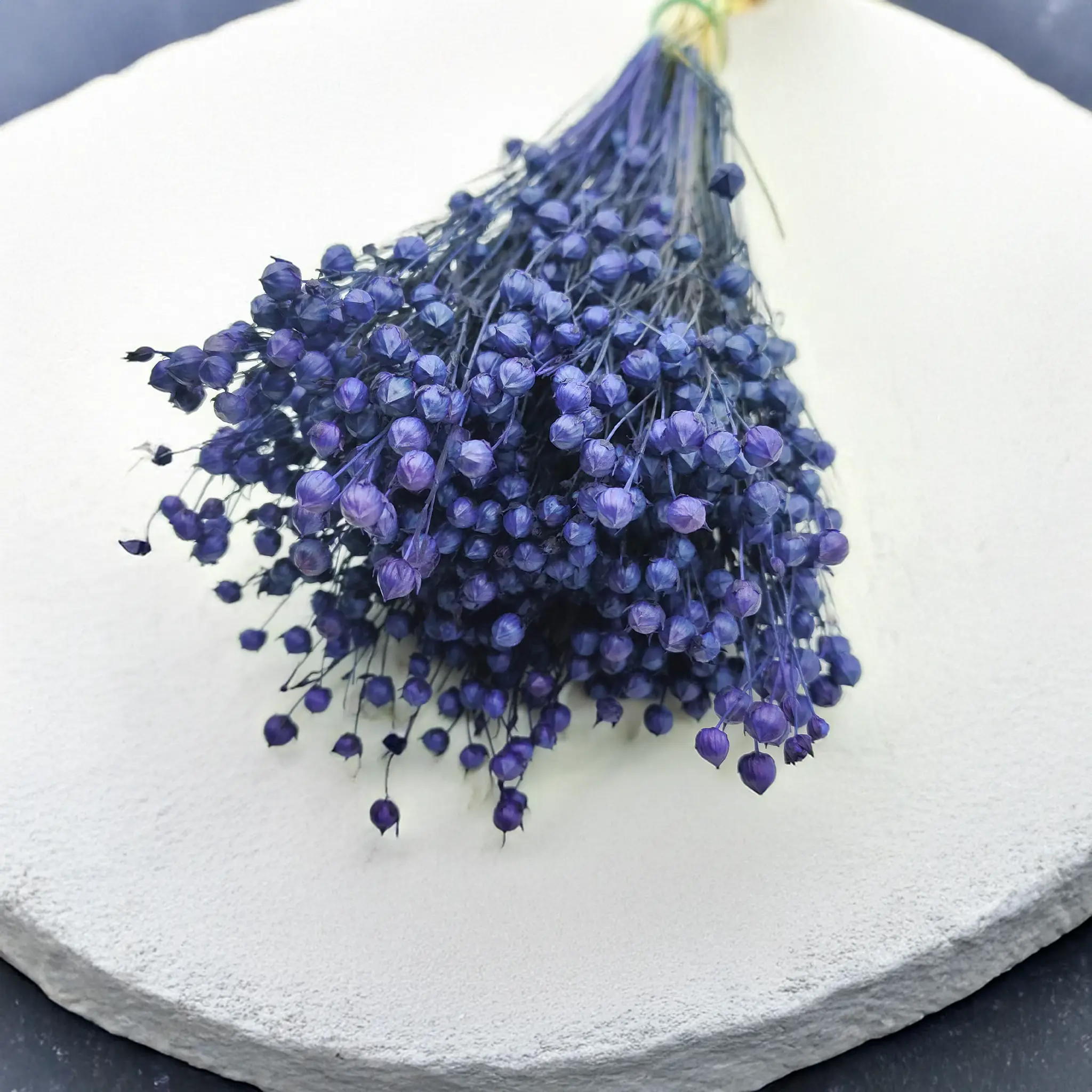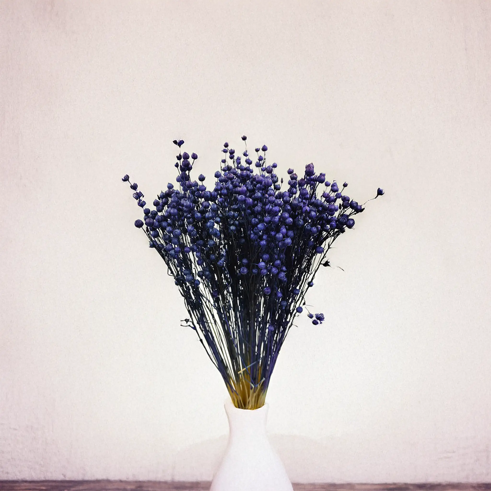 Każda gałązka ozdobiona jest drobnymi kulkami nasion, co dodaje strukturę i charakter. Dzięki swojej trwałości i formie, suszony len granatowy pozostaje piękny przez długi czas bez potrzeby pielęgnacji.