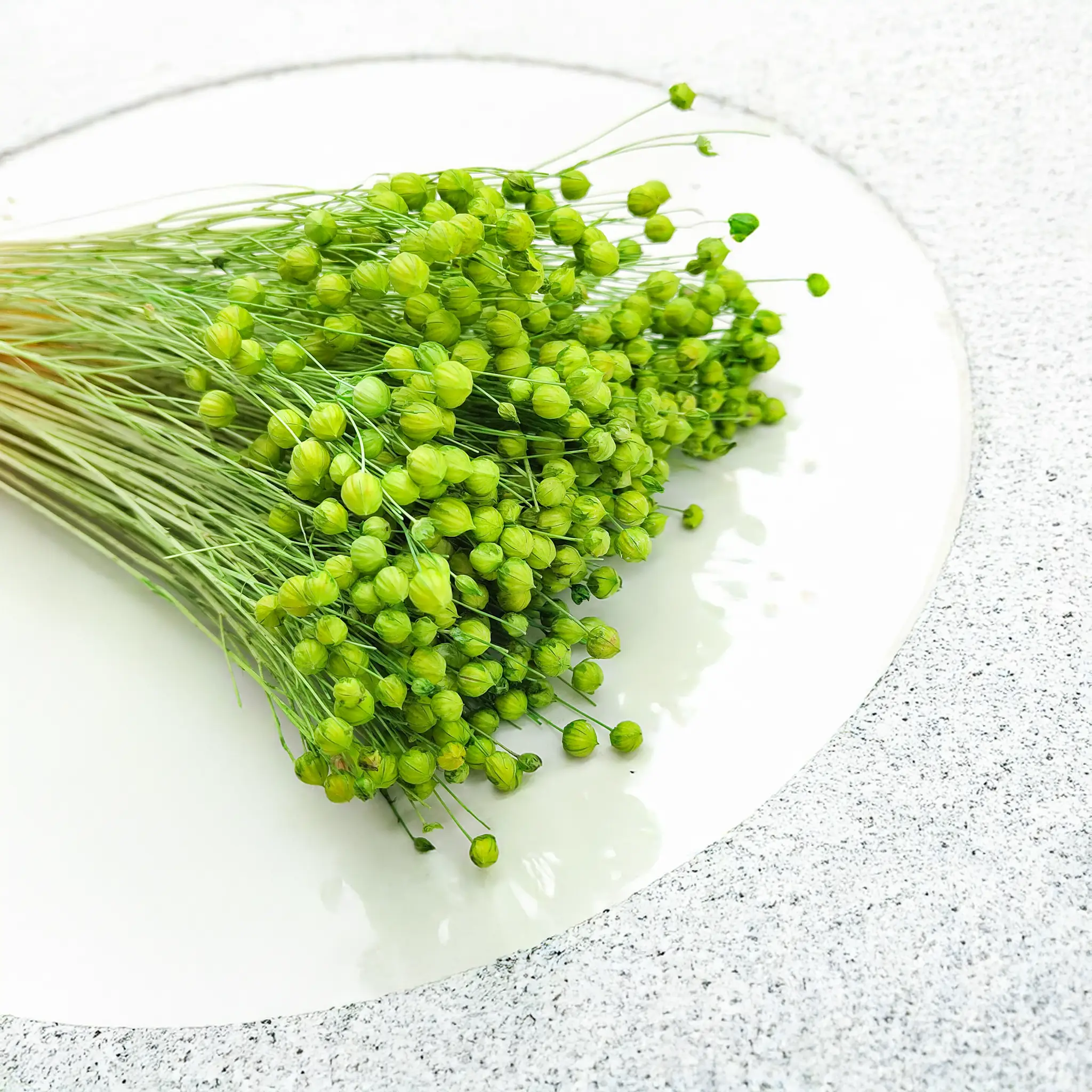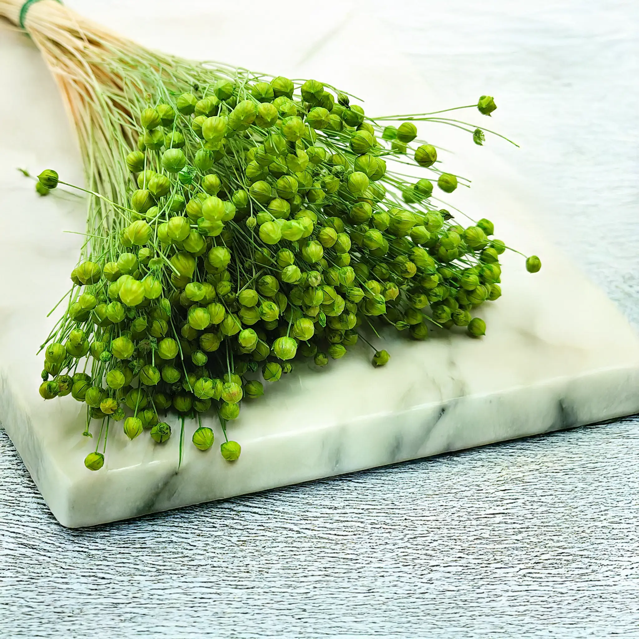 Suszony len w odcieniu zielonym to elegancki, naturalny dodatek, który doskonale wpisuje się w styl boho, eko i rustykalny. Zieleń symbolizuje równowagę, świeżość i bliskość natury – idealnie nadaje się do tworzenia kompozycji relaksujących i wyciszających.