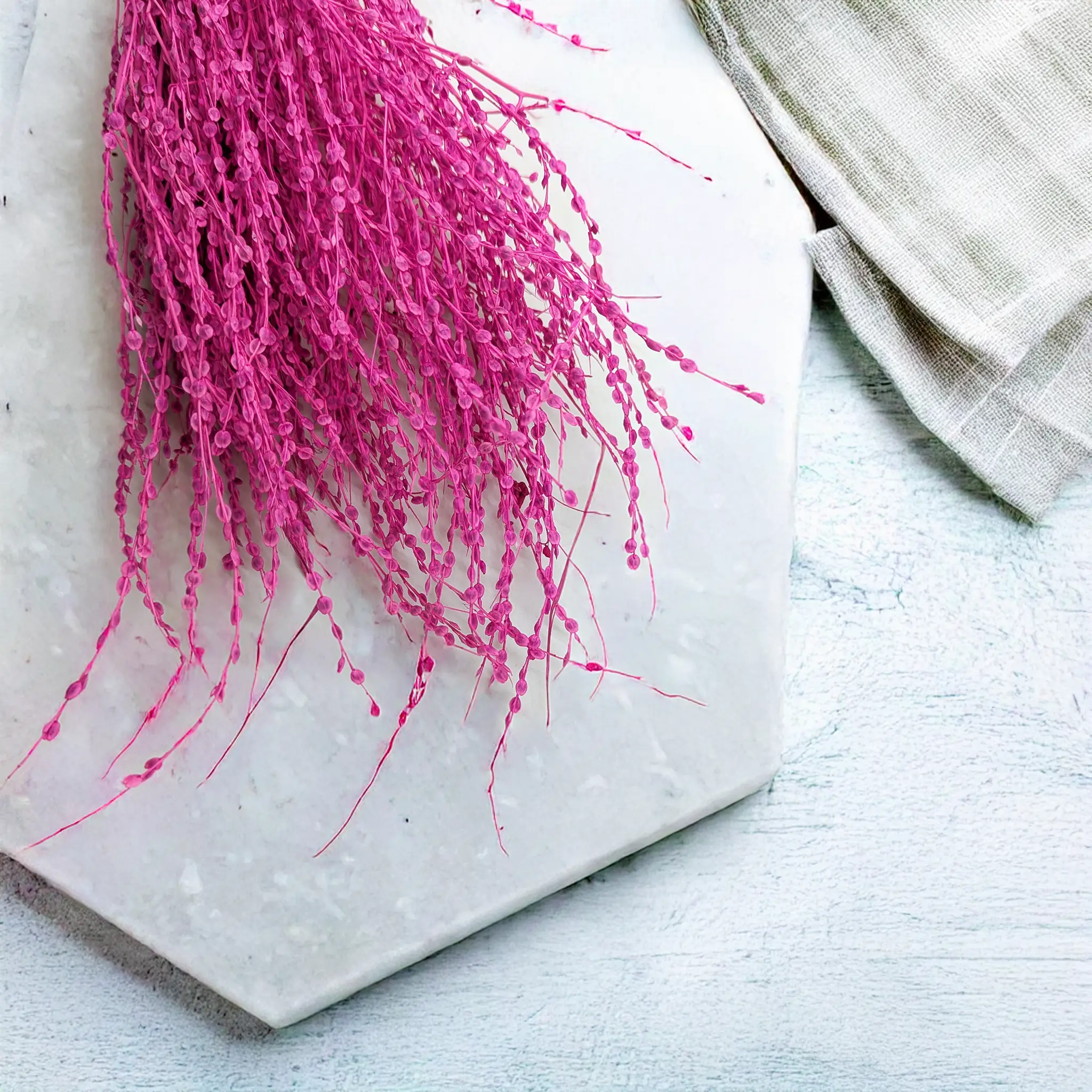 Lepidium w odcieniu fuksji to niezwykły produkt dekoracyjny. Jego delikatny odcień fuksji dodaje elegancji i charakteru każdej kompozycji. Te suszone nasiona świetnie sprawdzają się jako element dekoracyjny w różnorodnych aranżacjach, będąc doskonałym uzupełnieniem bukietów kwiatowych, dekoracji stołowych czy kompozycji prezentowych. Ich unikalny wygląd oraz wszechstronność pozwalają na kreatywne wykorzystanie, podkreślając główne elementy dekoracyjne bez przytłaczania ich, lecz subtelnie uzupełniając całość. Dodatkowo, ich trwałość i intensywność koloru przez długi czas czynią je cenionym dodatkiem w branży dekoratorskiej.