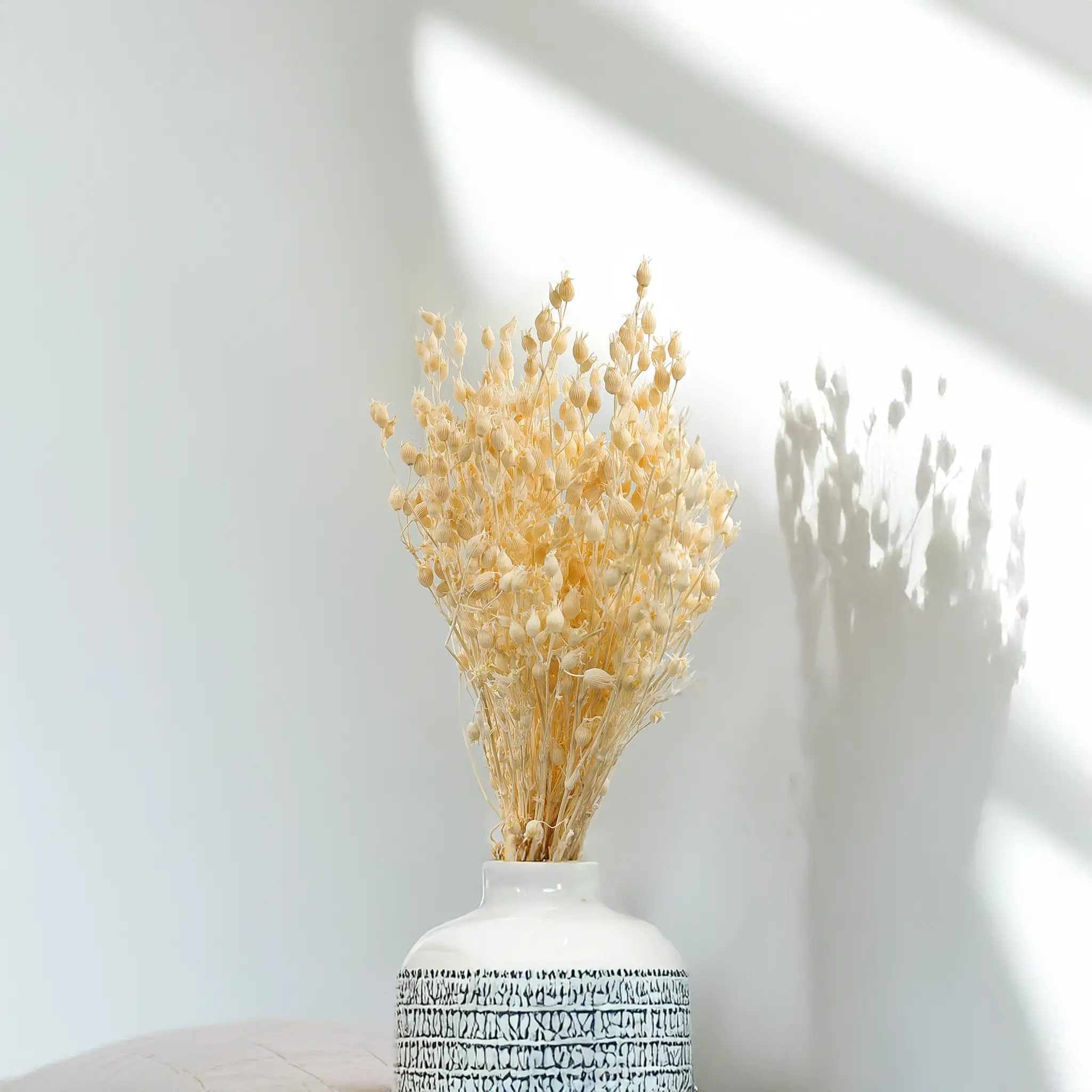 Roślina bielona i suszona – trwała, delikatna i gotowa do użycia bez pielęgnacji. Świetnie komponuje się z beżem, zielenią i pastelami.