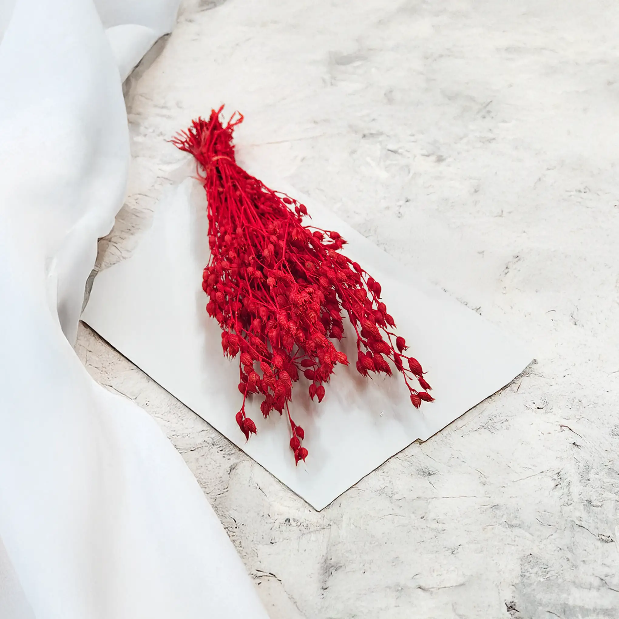 Suszona lepnica rozdęta (Silene) w głębokim, czerwonym odcieniu to idealny wybór dla osób poszukujących silnych akcentów kolorystycznych w naturalnych dekoracjach. Jej rozdęte kwiatostany wnoszą wyjątkową fakturę, a intensywna barwa dodaje kompozycjom dynamiki i emocji.