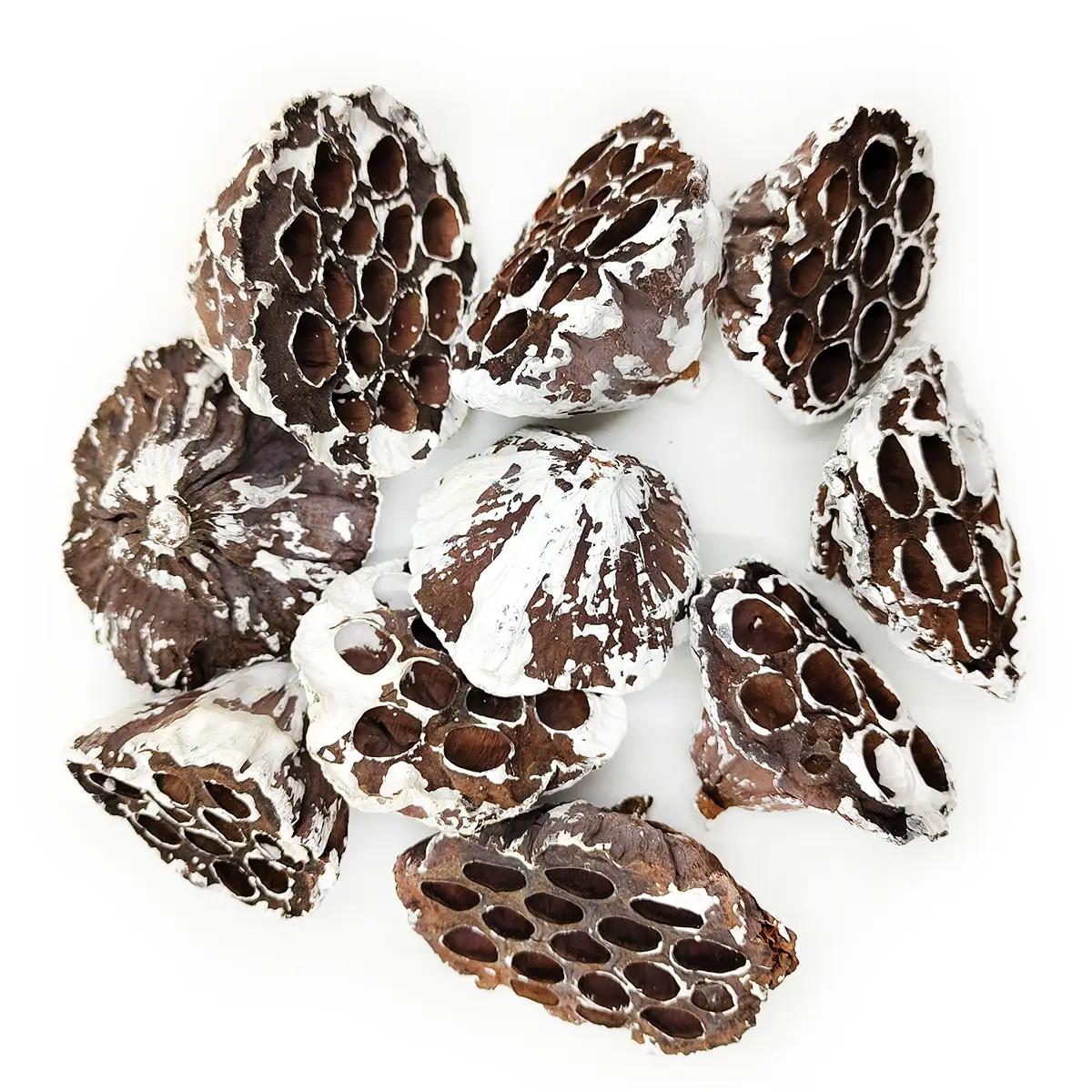 Lotos średni M (Snow Tip) to zestaw 10 sztuk egzotycznych suszonych lotosów, które wyróżniają się delikatnymi białymi końcówkami, przypominającymi śnieg. Te suszone kwiaty zachowują swój naturalny urok, ale dodatkowo posiadają subtelny biały efekt, który nadaje im wyjątkowy, zimowy charakter.